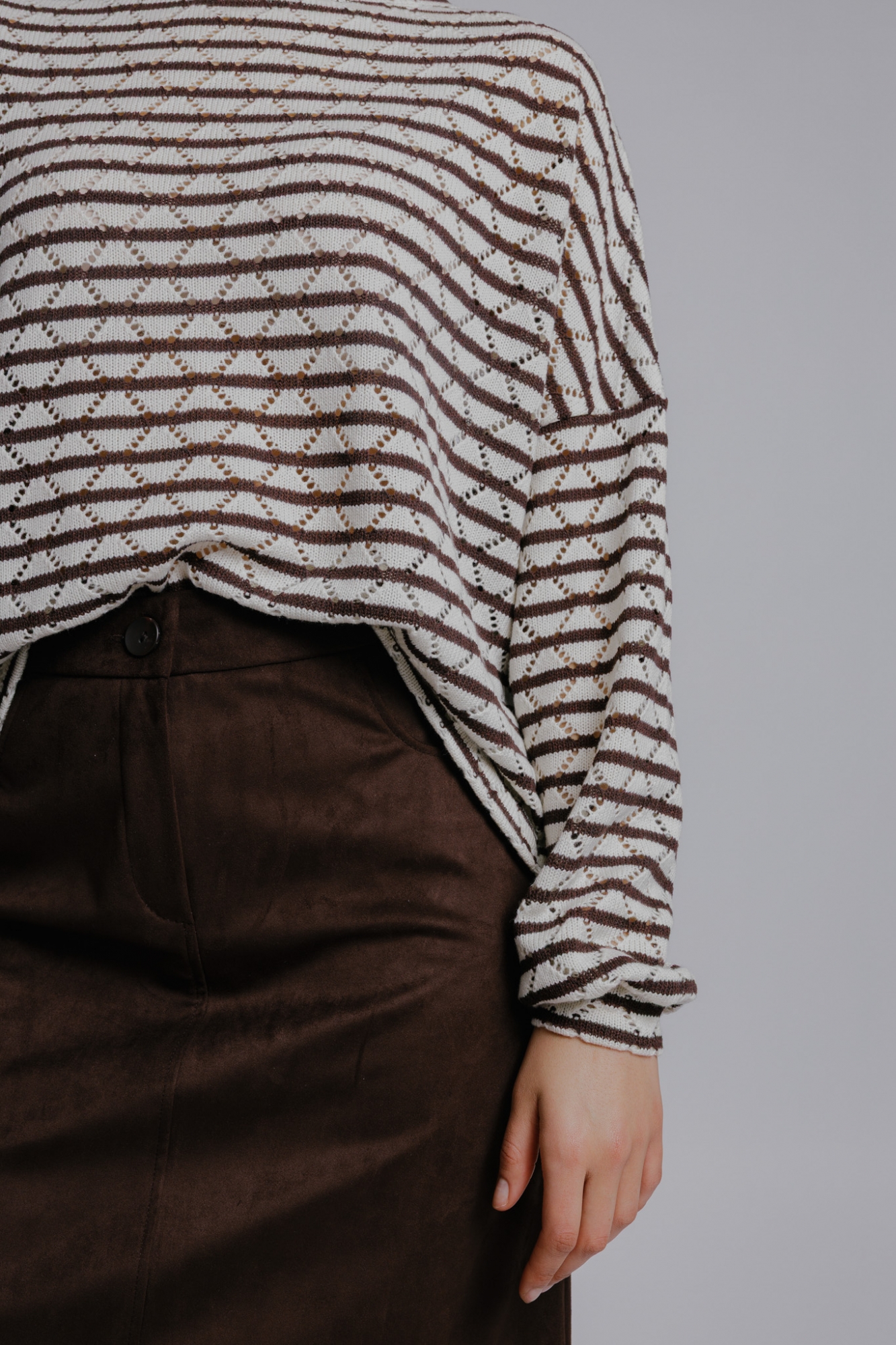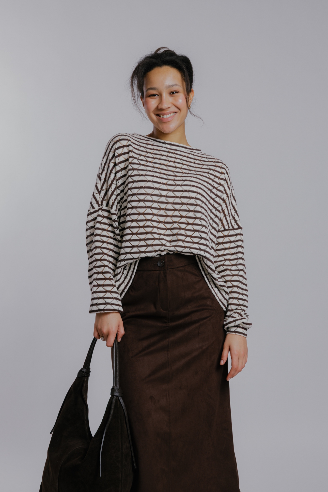 Míry modelky: prsa 85 cm; pas 65 cm; boky 95 cm; výška 173 cm. Modelka má na sobě velikost S