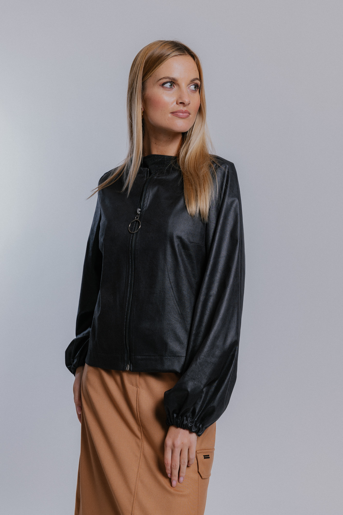 Černá dámská bunda imitace kůže