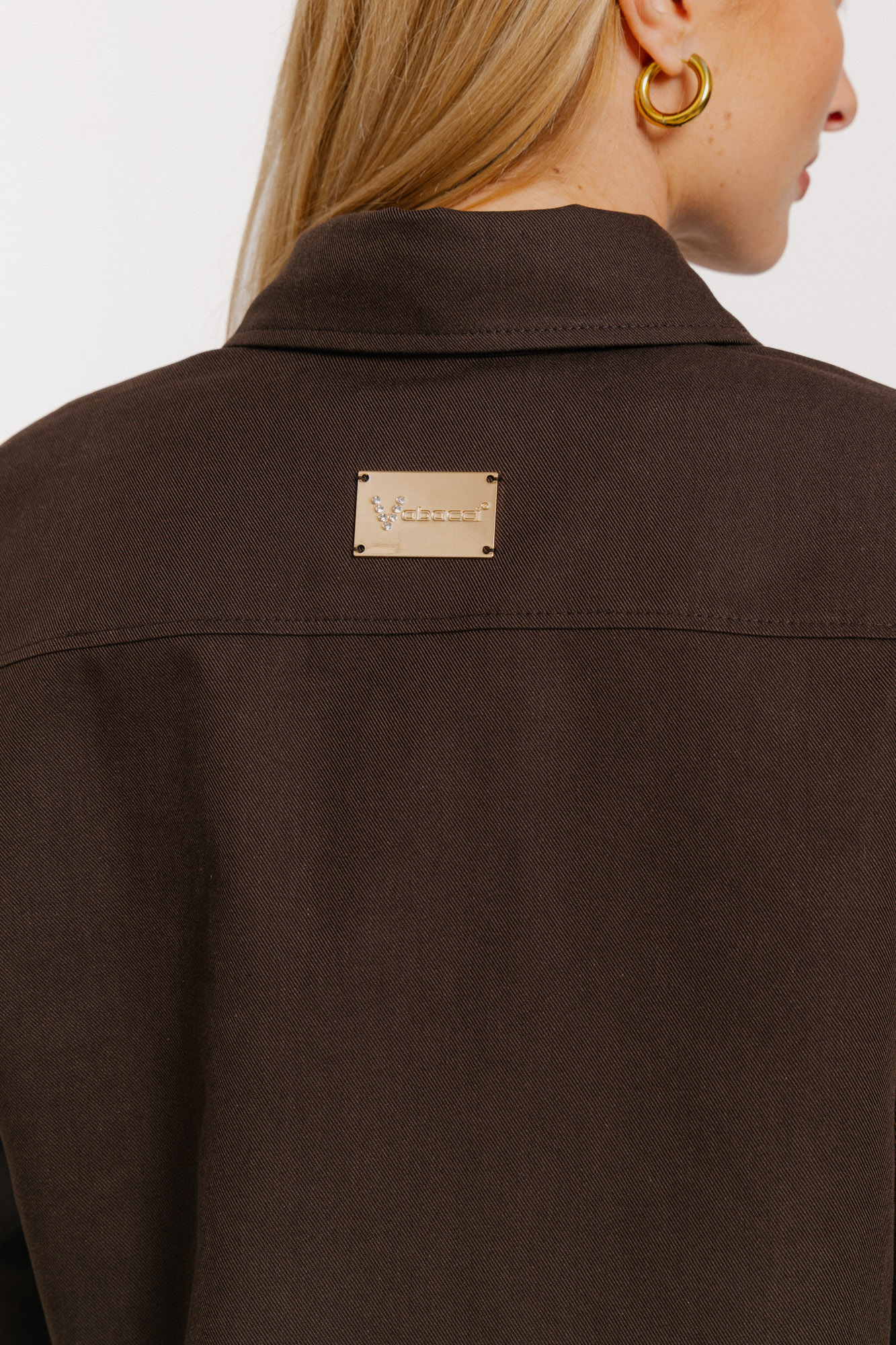 Míry modelky: prsa 89 cm; pas 60 cm; boky 85 cm; výška 175 cm. Modelka má na sobě velikost XS.