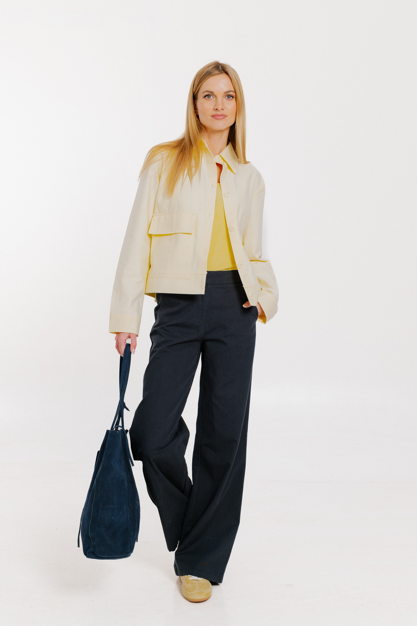 Míry modelky: prsa 89 cm; pas 60 cm; boky 85 cm; výška 175 cm. Modelka má na sobě velikost XS.