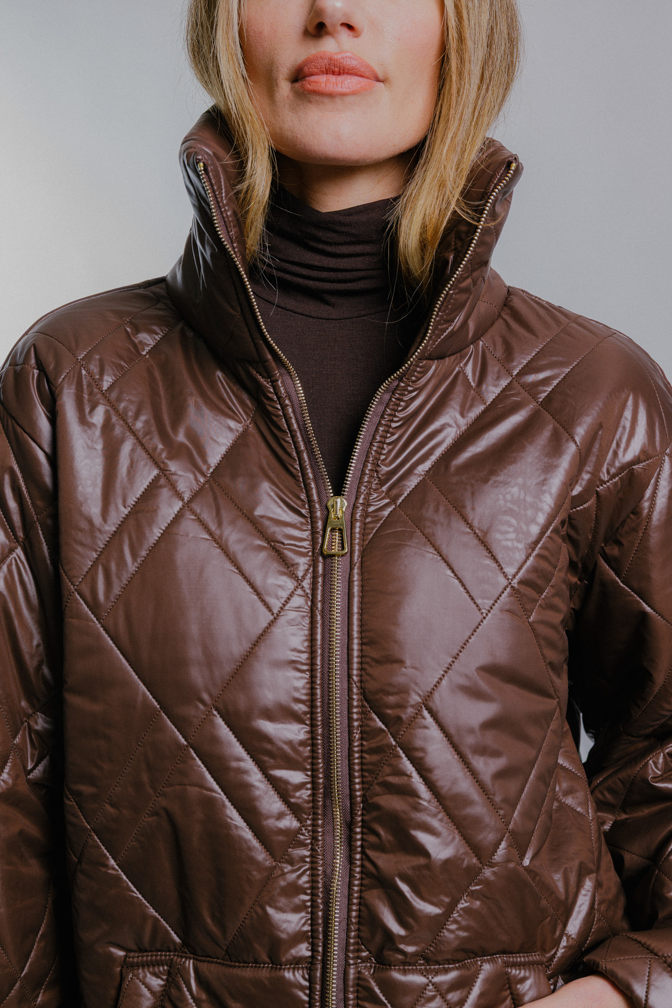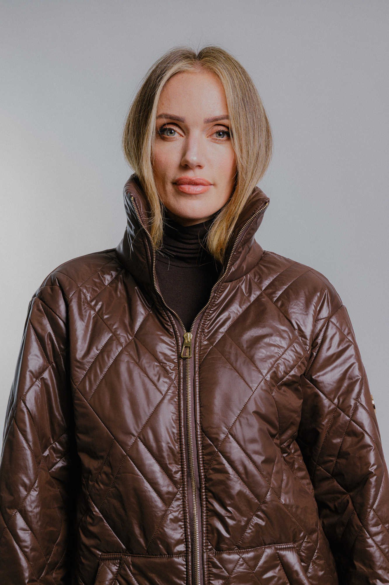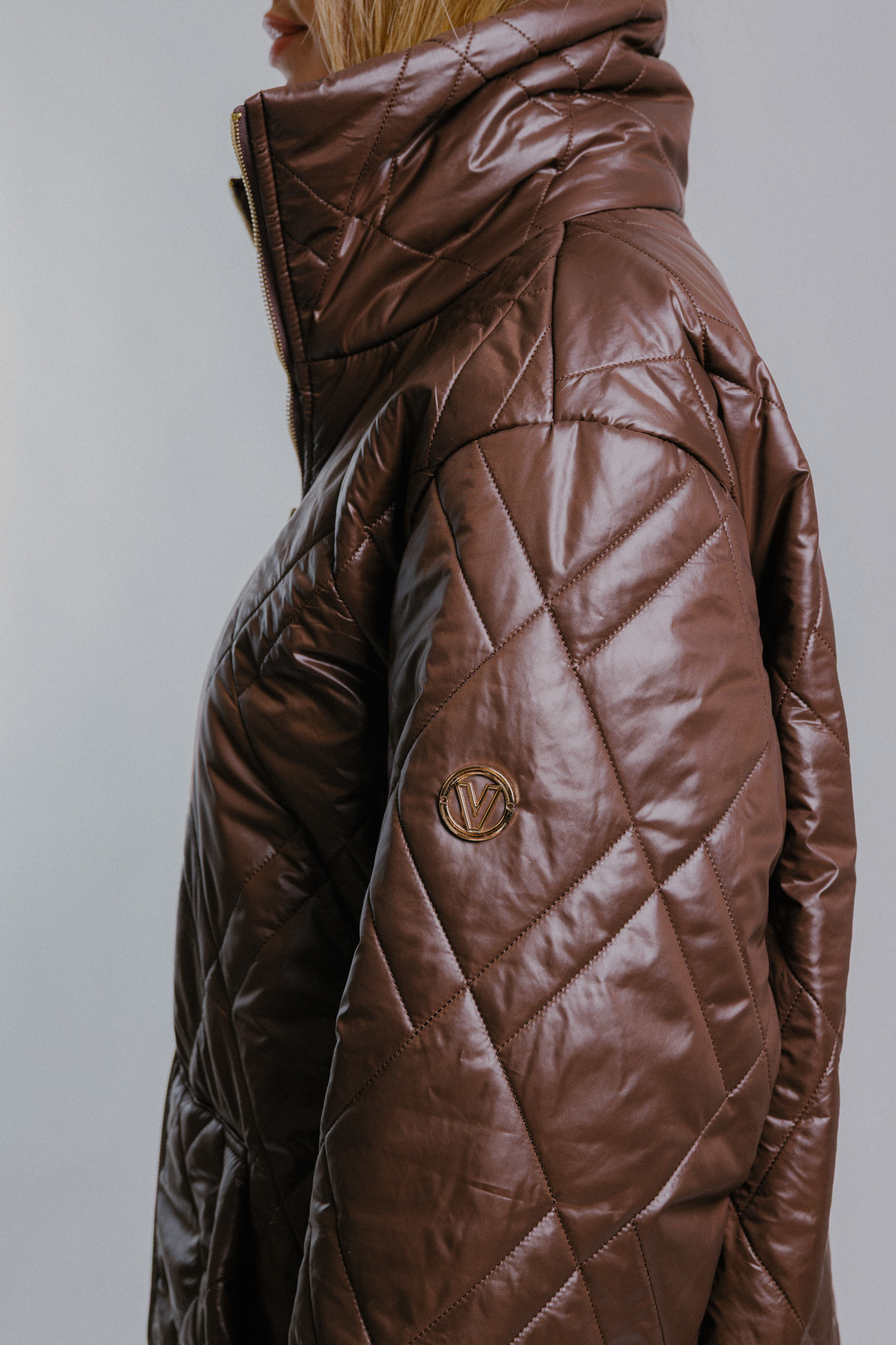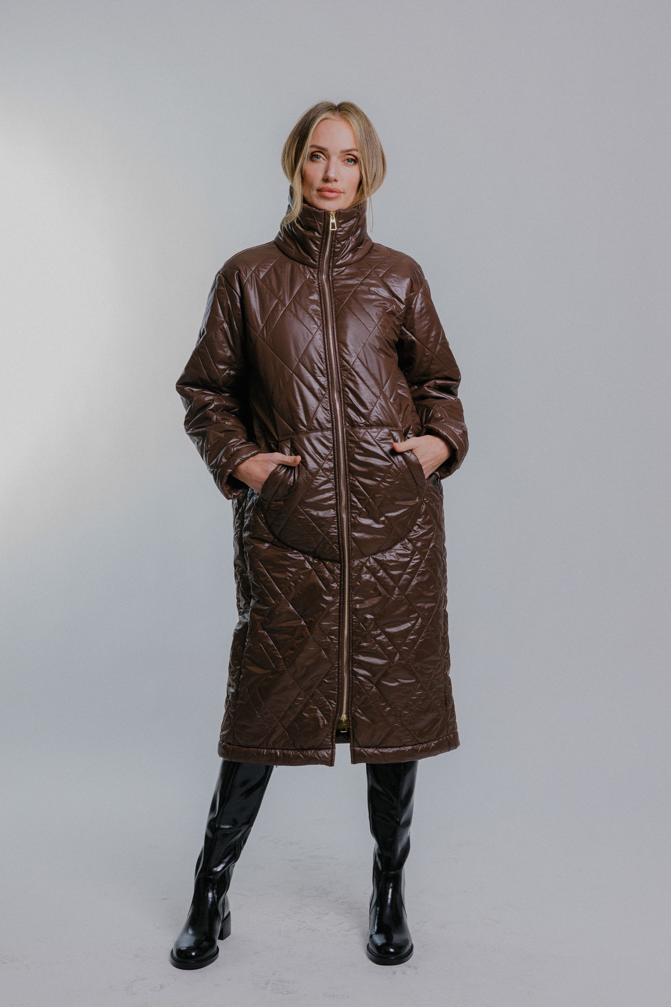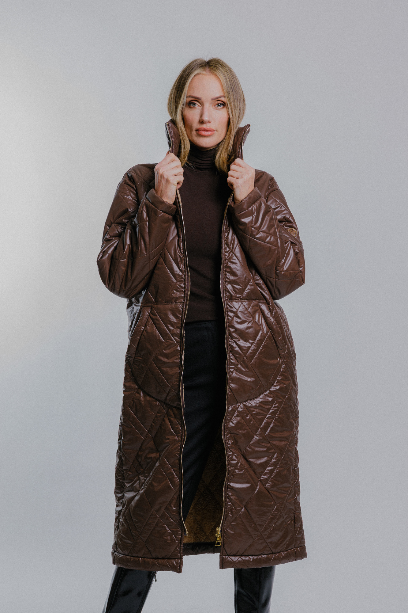 Dámská prošívaný oversize kabát tmavě hnědý