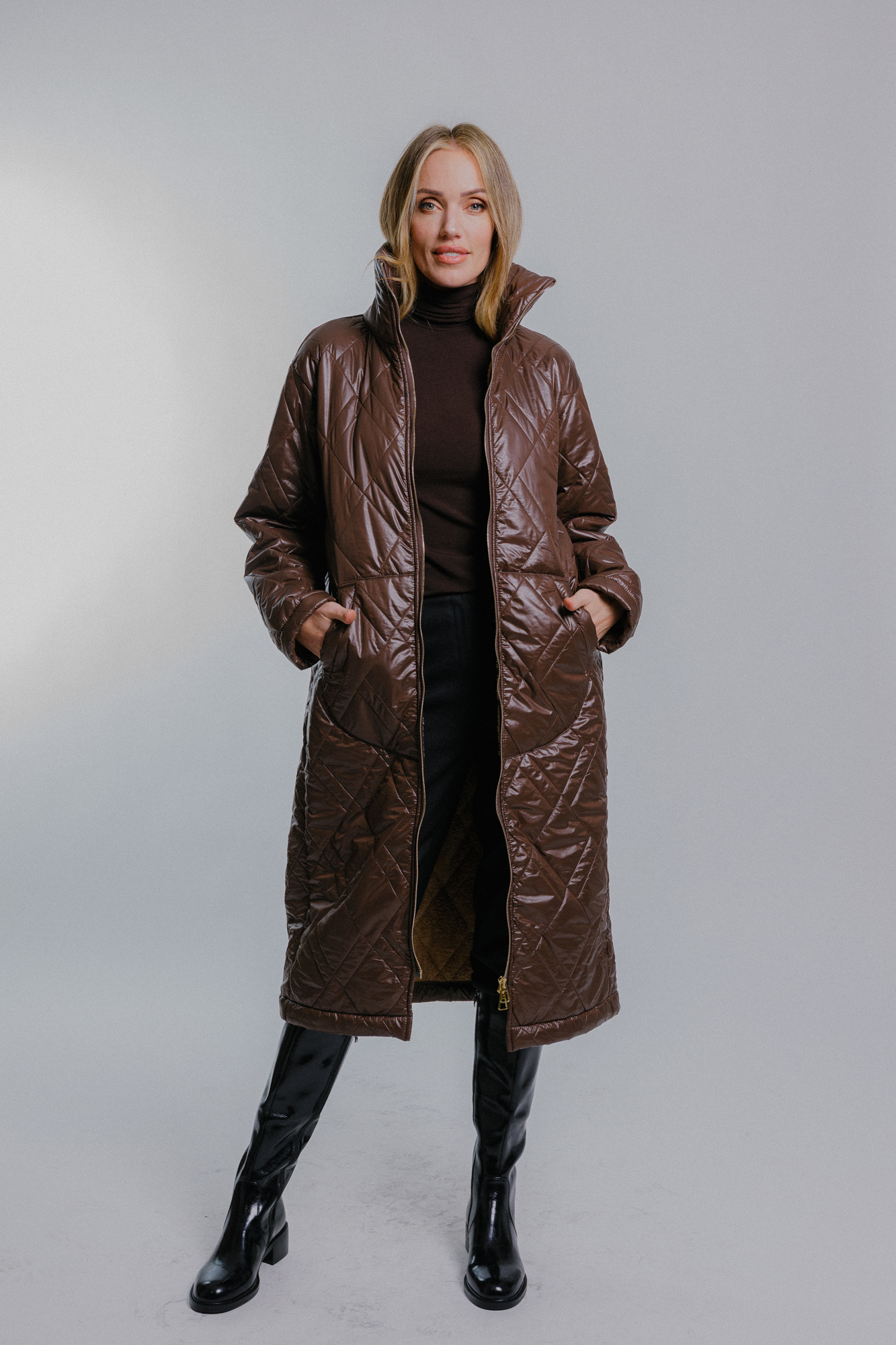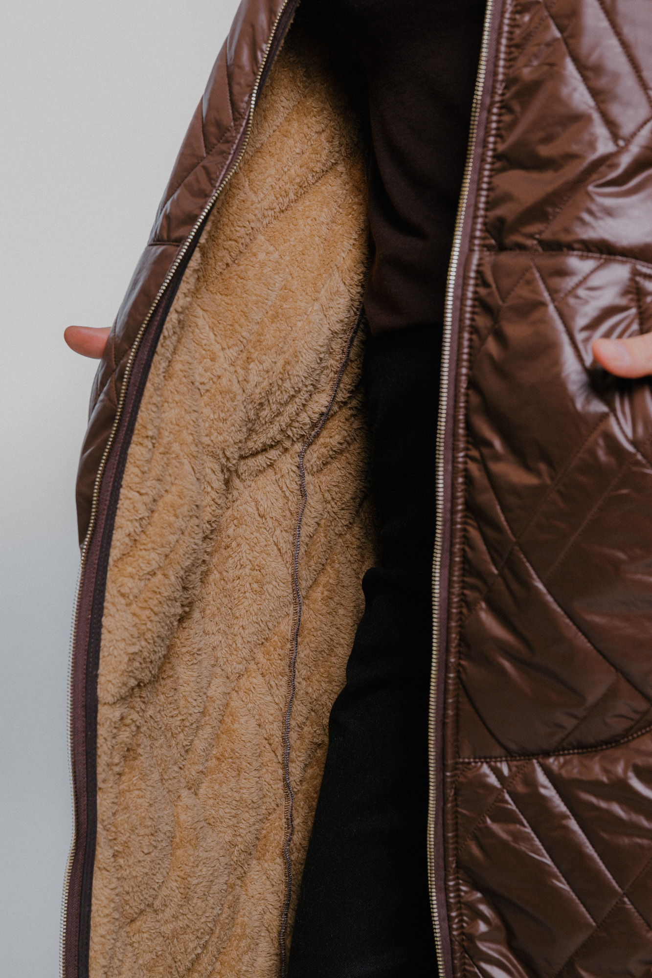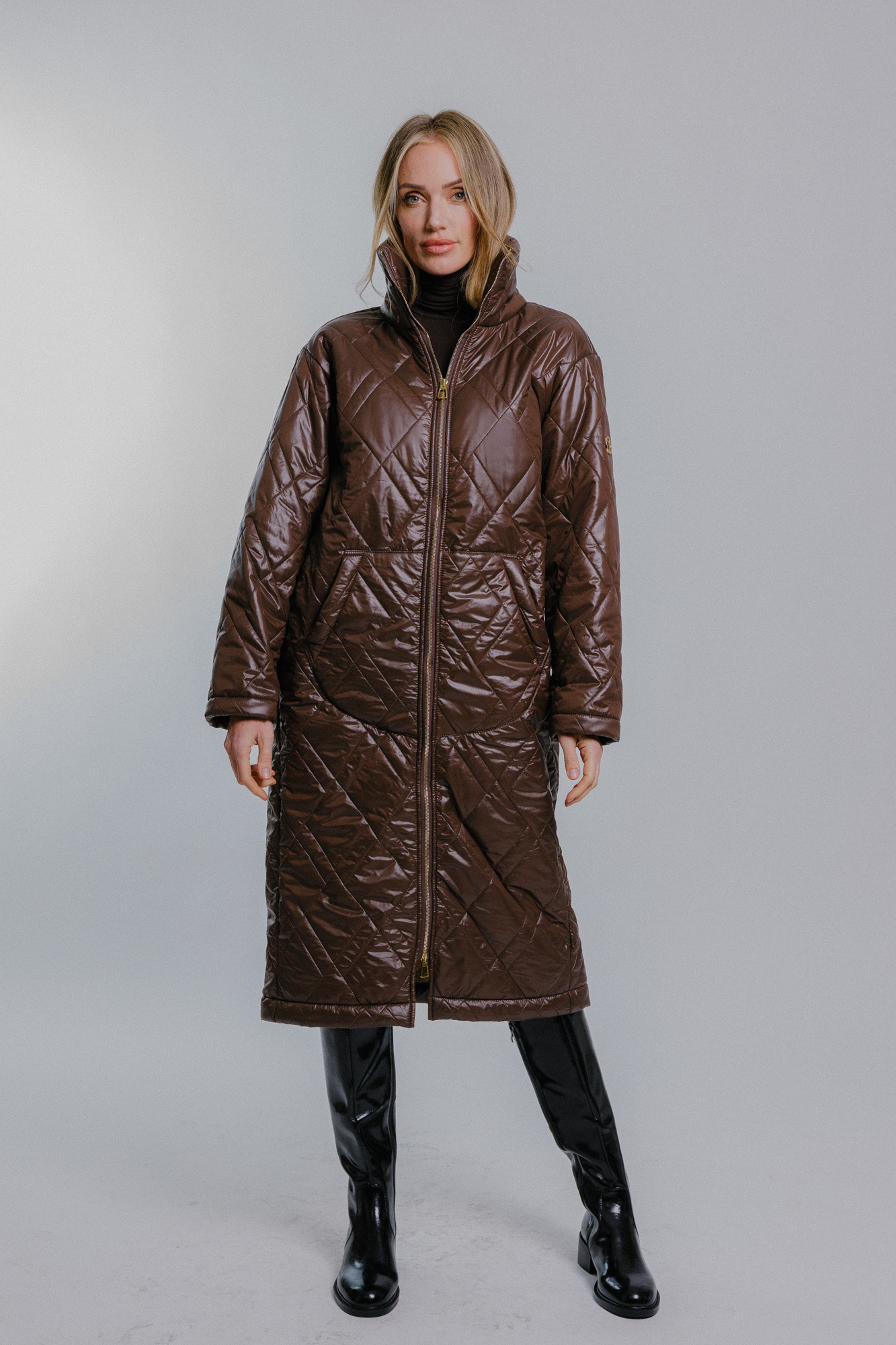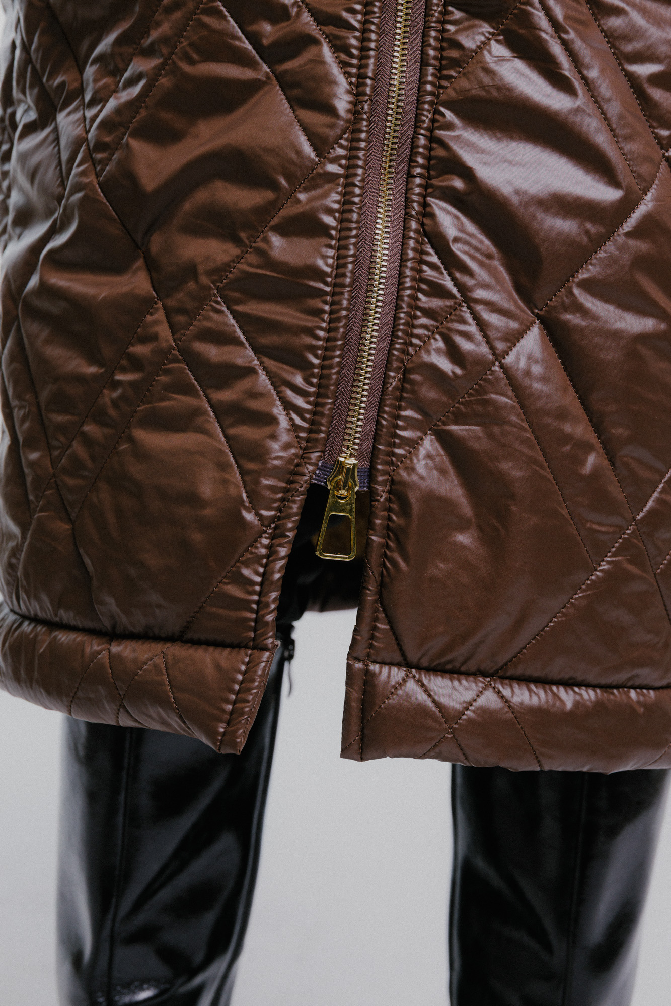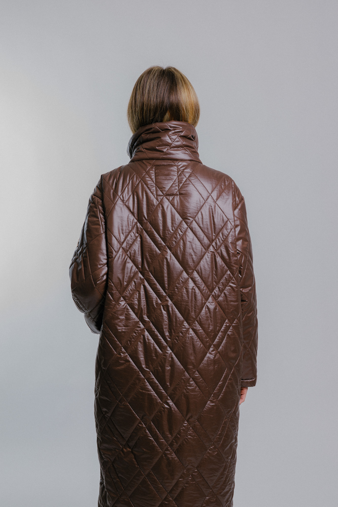Prošívaný oversize kabát tmavě hnědý