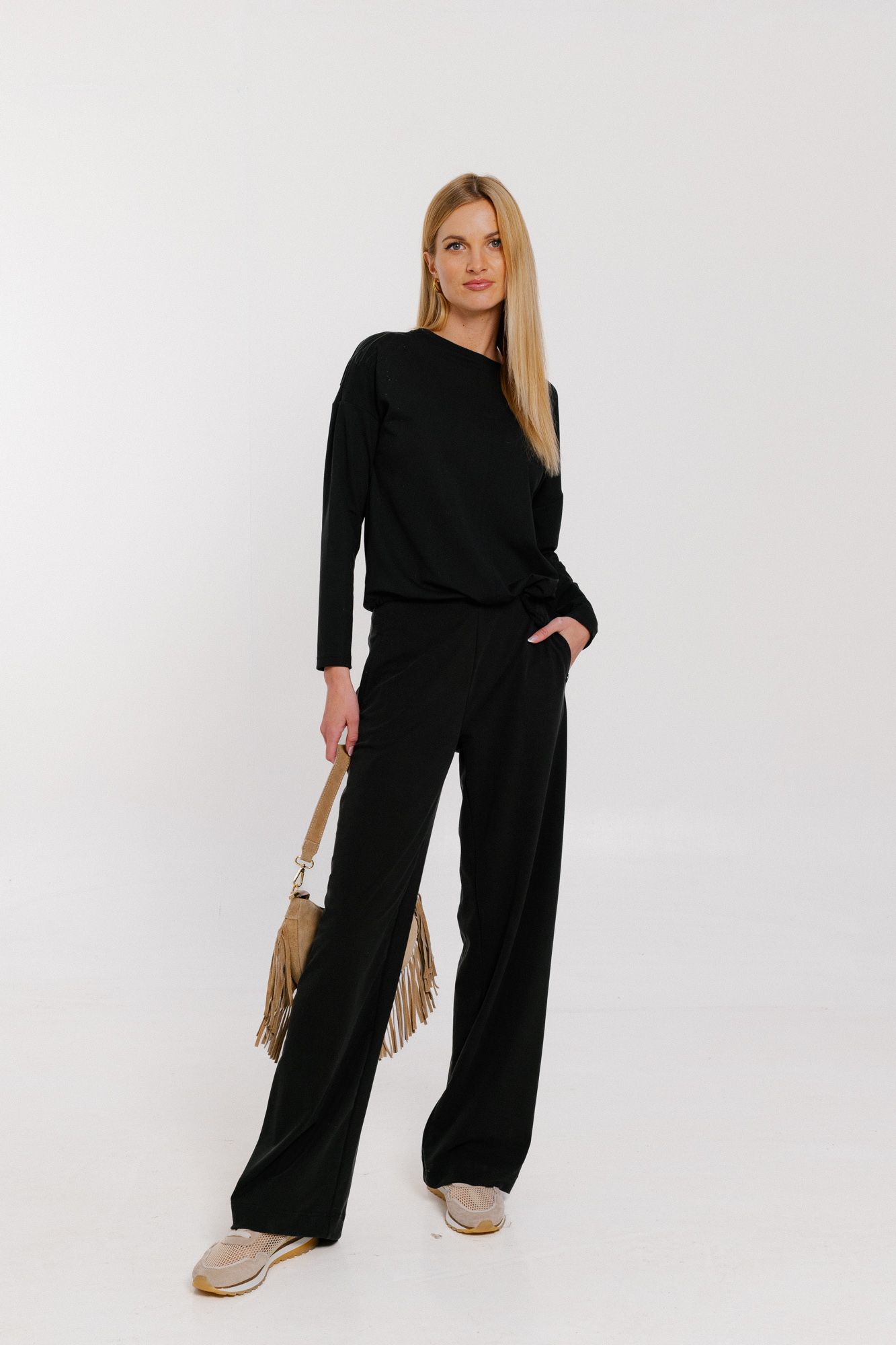 Černé kalhoty wide leg