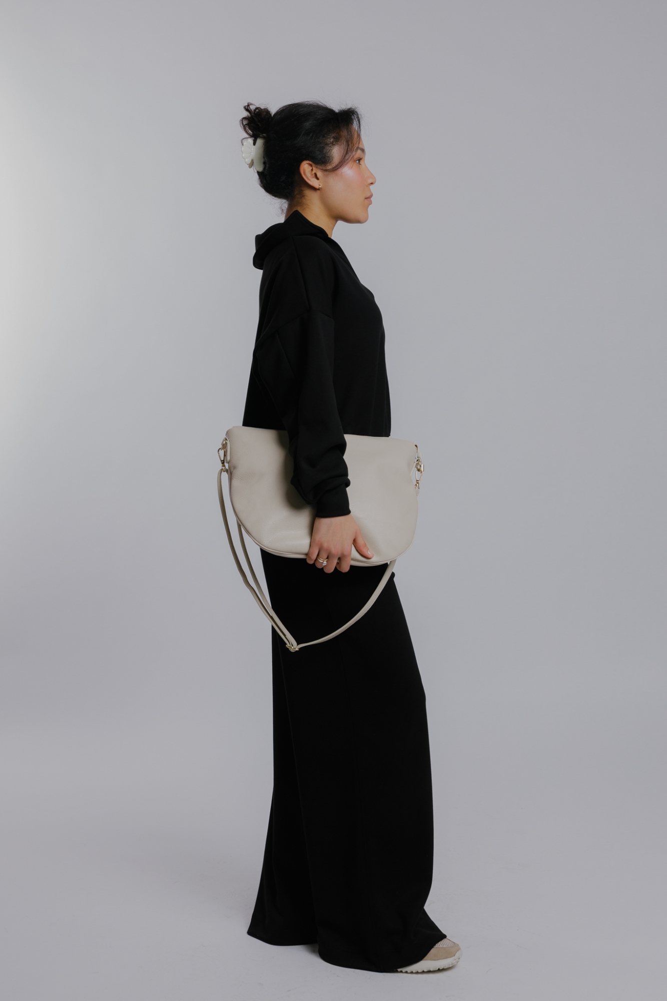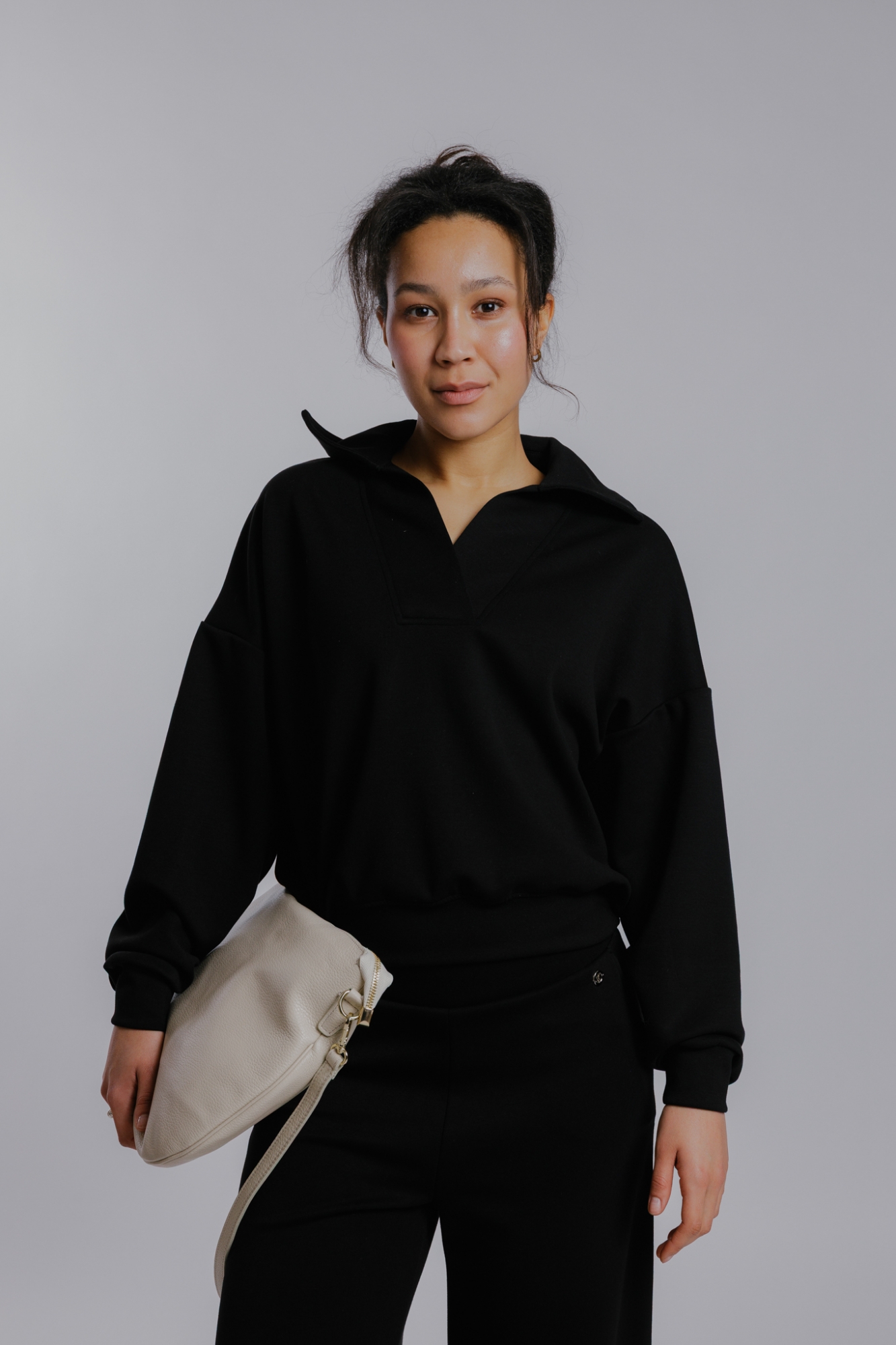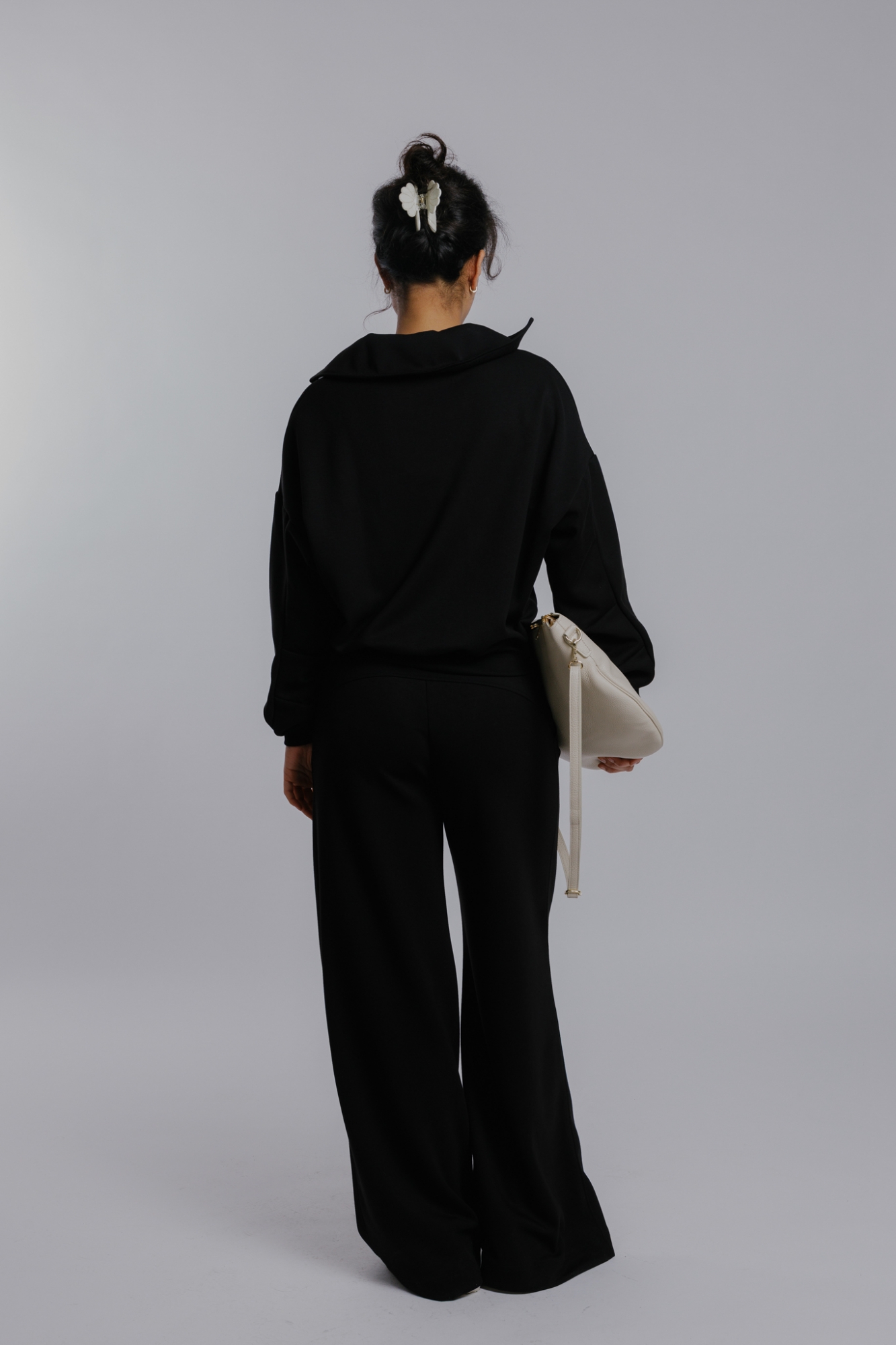 Míry modelky: prsa 85 cm; pas 65 cm; boky 92 cm; výška 174 cm. Modelka má na sobě velikost XS.