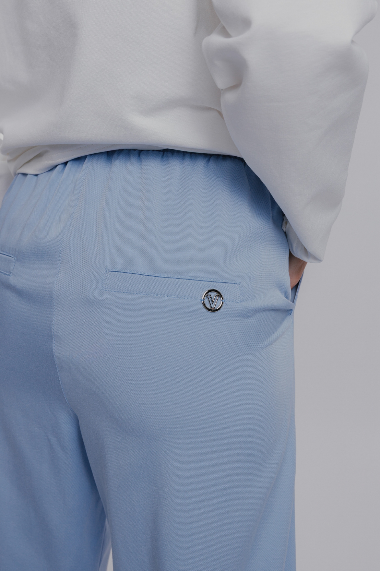 Výpustkové kapsy na zadním díle s kovovým plíškem.
