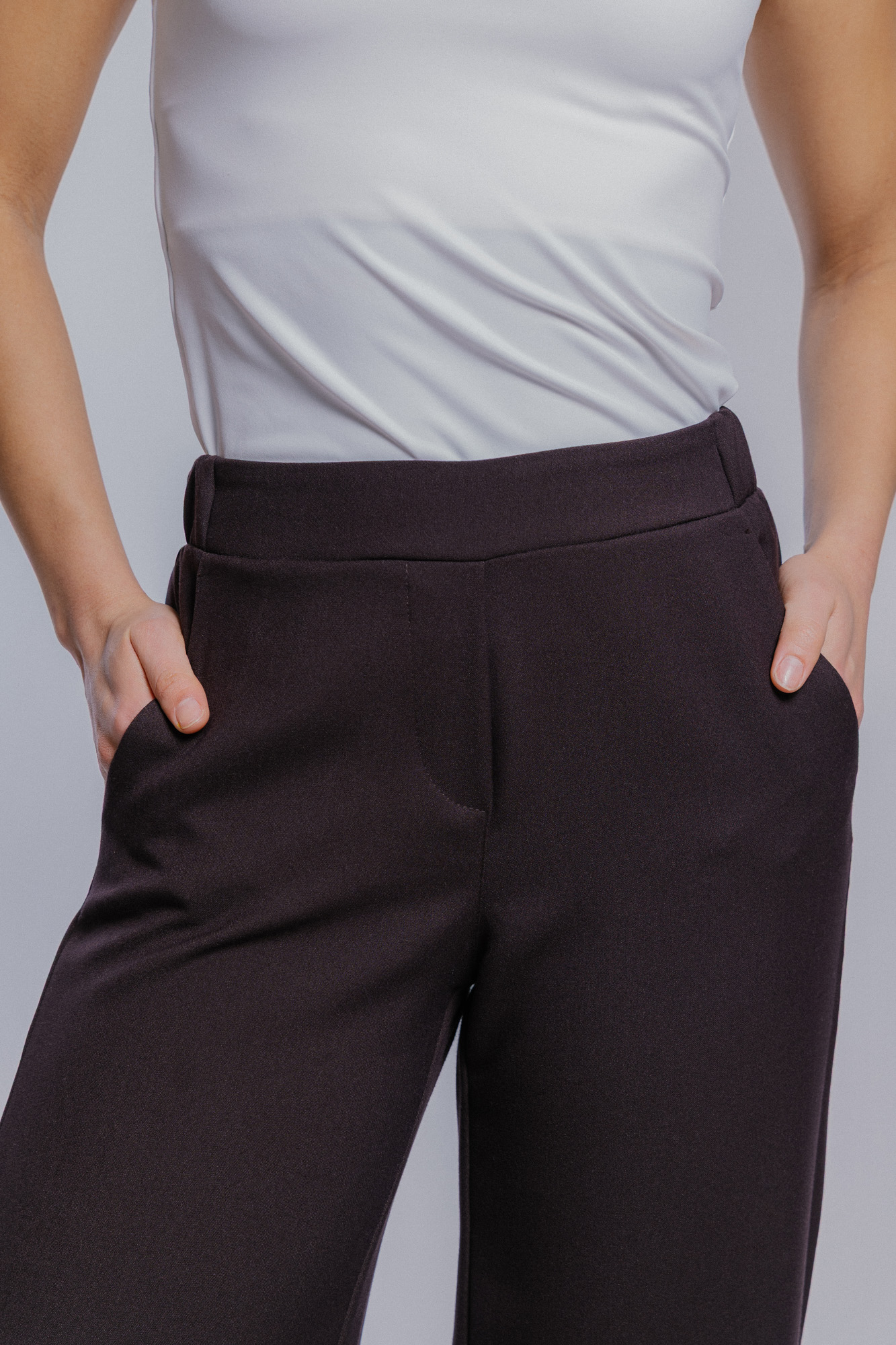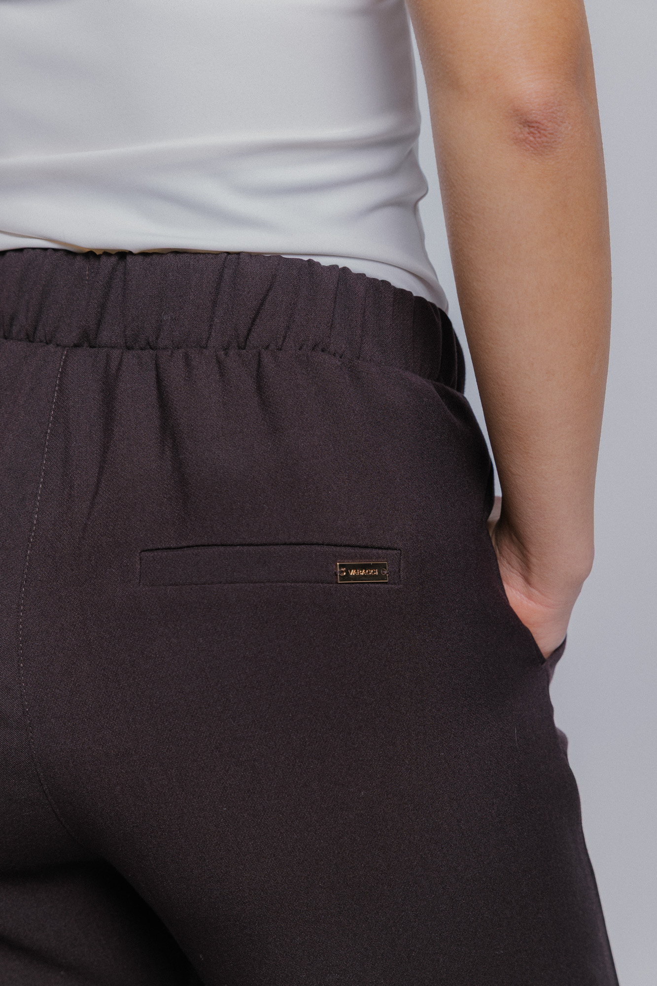 Model se zvýšeným pasem do gumy, díky které sedí na ruzné typy postav.
