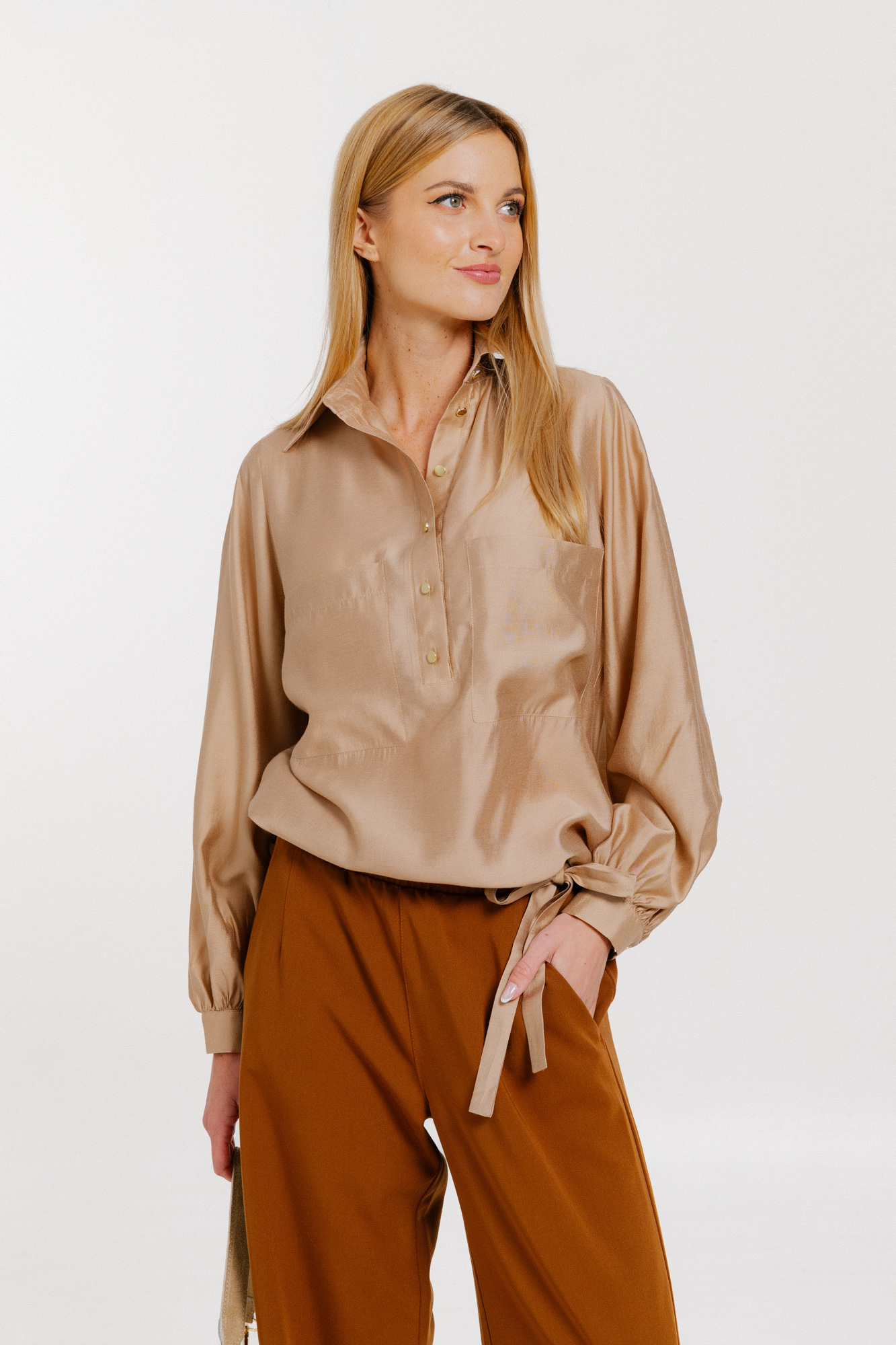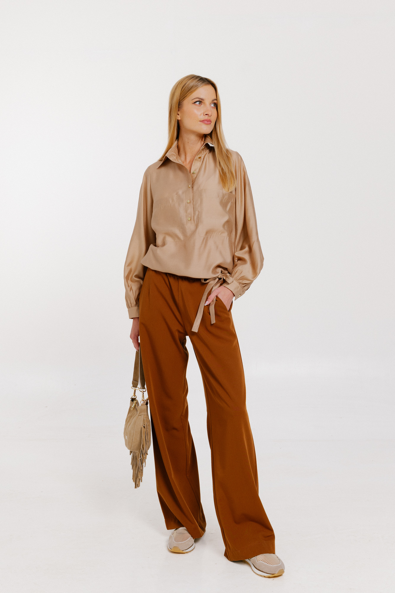 Míry modelky: prsa 89 cm; pas 60 cm; boky 85 cm; výška 175 cm. Modelka má na sobě velikost XS.