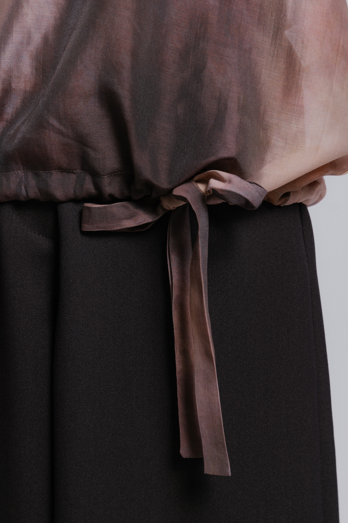 Míry modelky: prsa 89 cm; pas 60 cm; boky 85 cm; výška 175 cm. Modelka má na sobě velikost S.