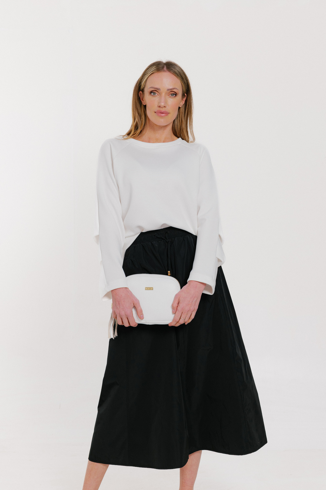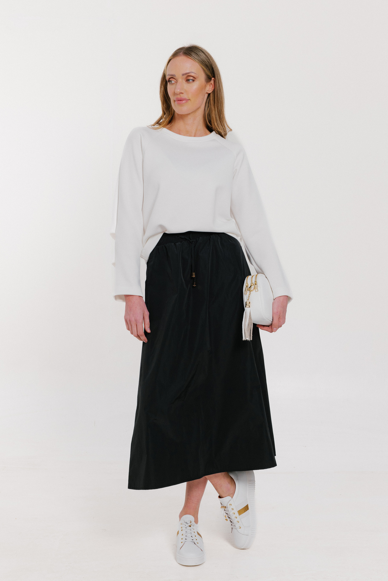 Míry modelky: prsa 89 cm; pas 60 cm; boky 85 cm; výška 175 cm. Modelka má na sobě velikost XS.