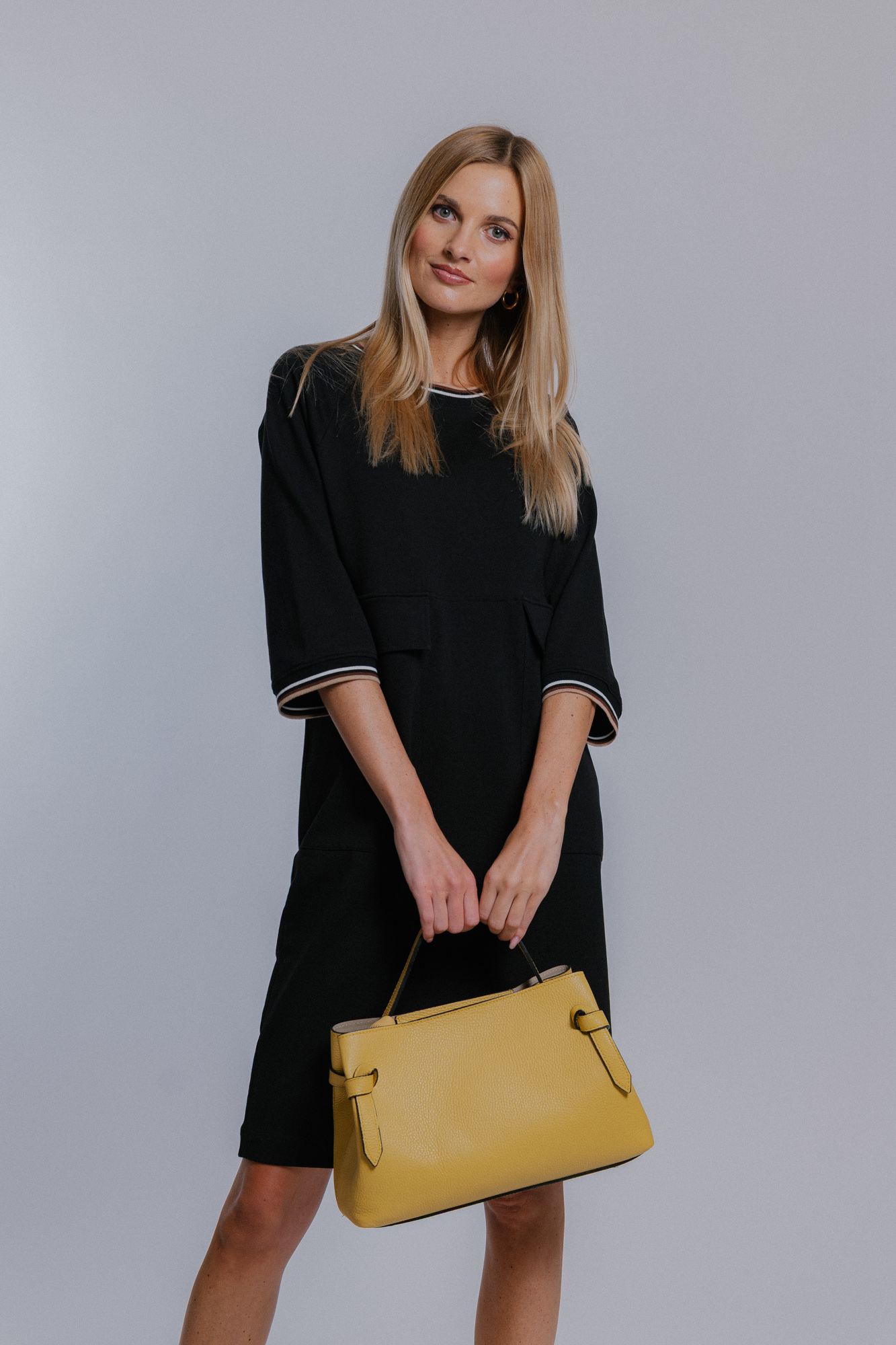 Míry modelky: prsa 89 cm; pas 60 cm; boky 85 cm; výška 175 cm. Modelka má na sobě velikost S.
