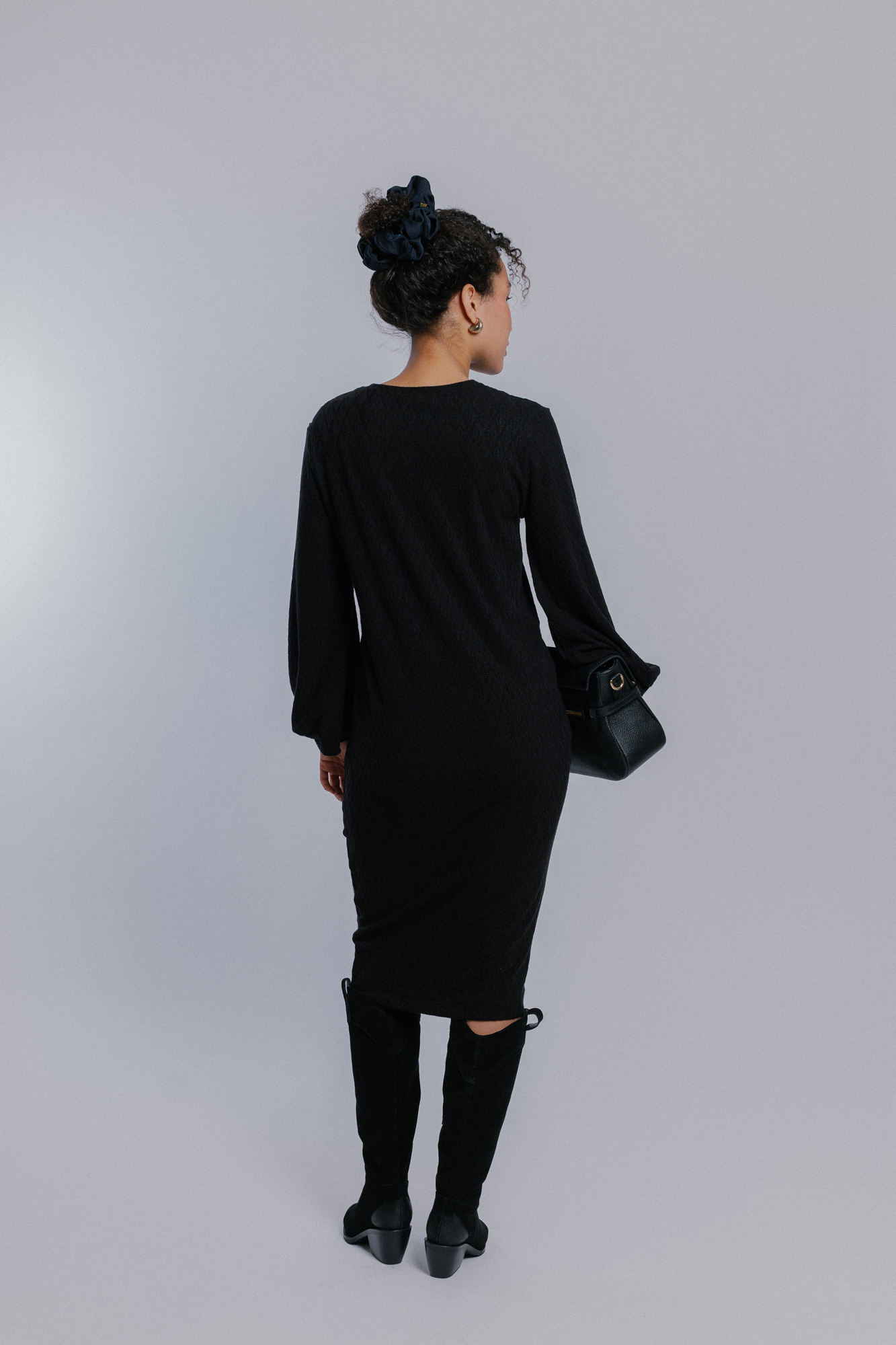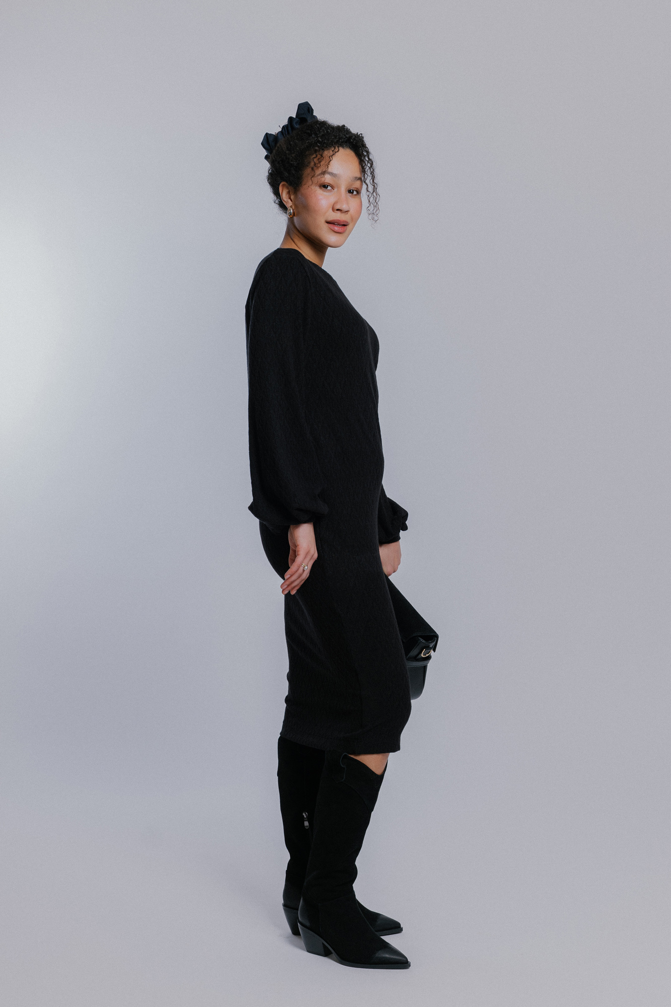 Míry modelky: prsa 85 cm; pas 65 cm; boky 95 cm; výška 173 cm. Modelka má na sobě velikost S