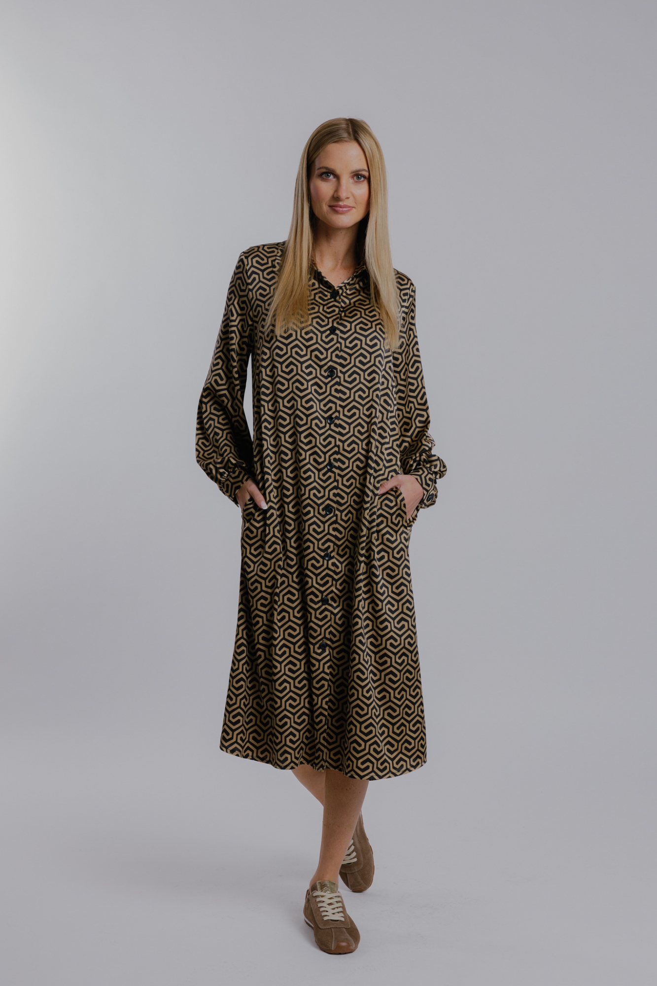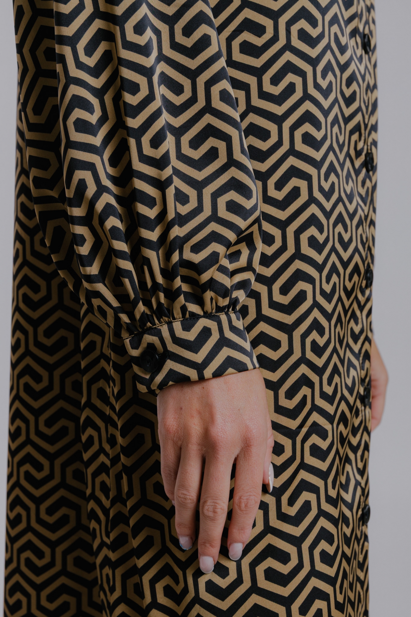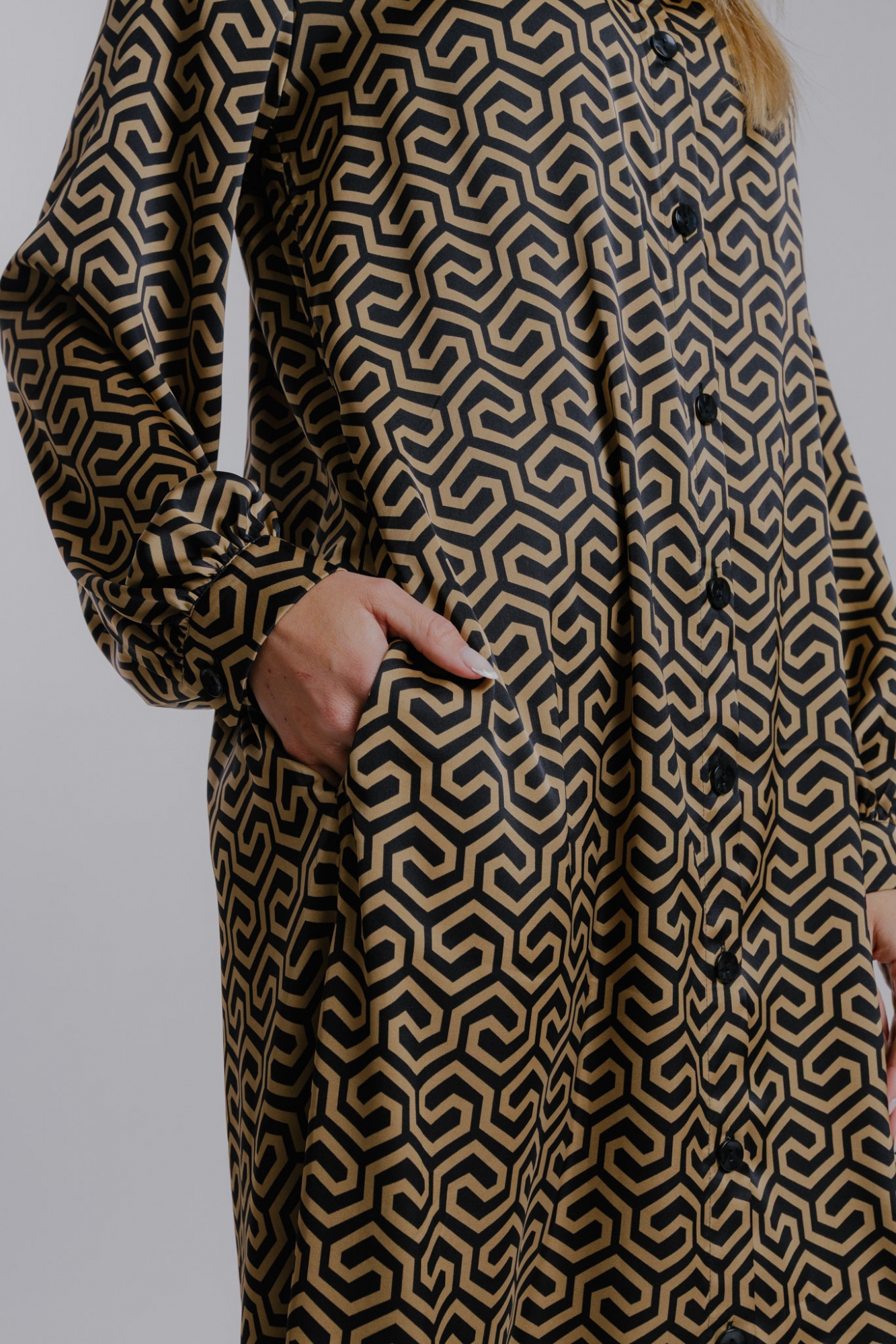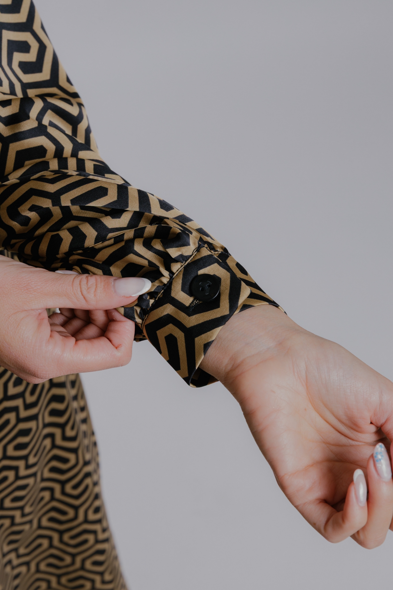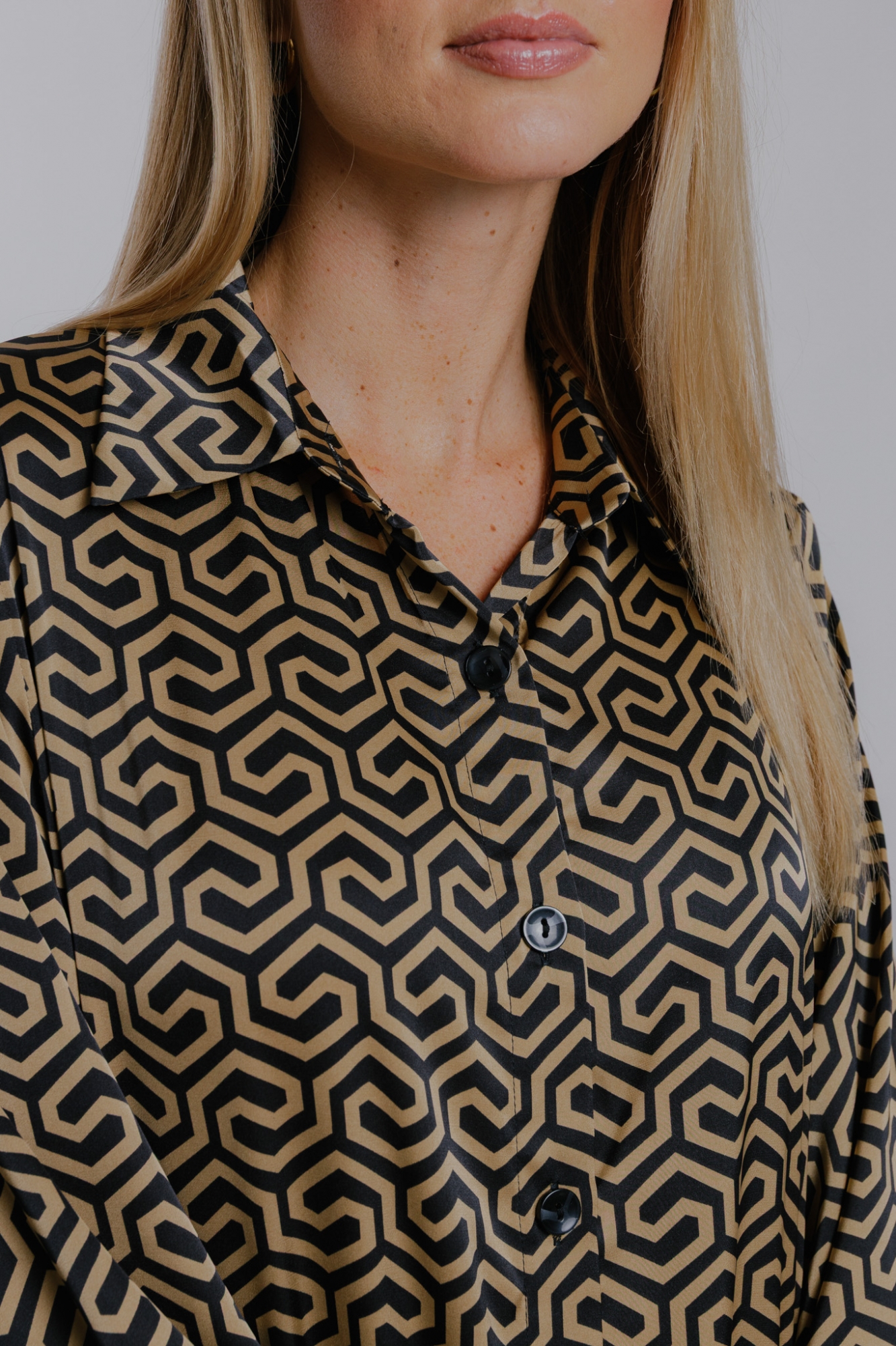 Košilový střih, propínání na knoflíky.
