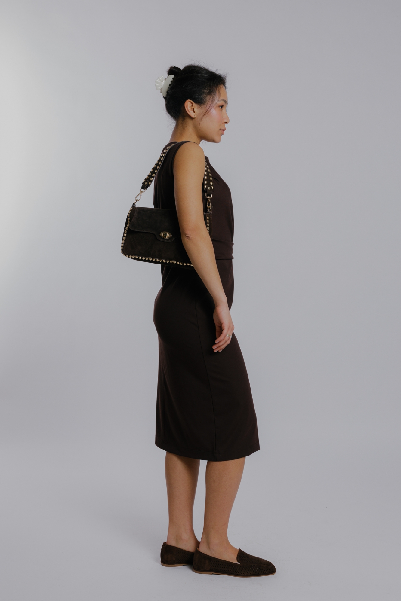 Míry modelky: prsa 85 cm; pas 65 cm; boky 95 cm; výška 173 cm. Modelka má na sobě velikost S