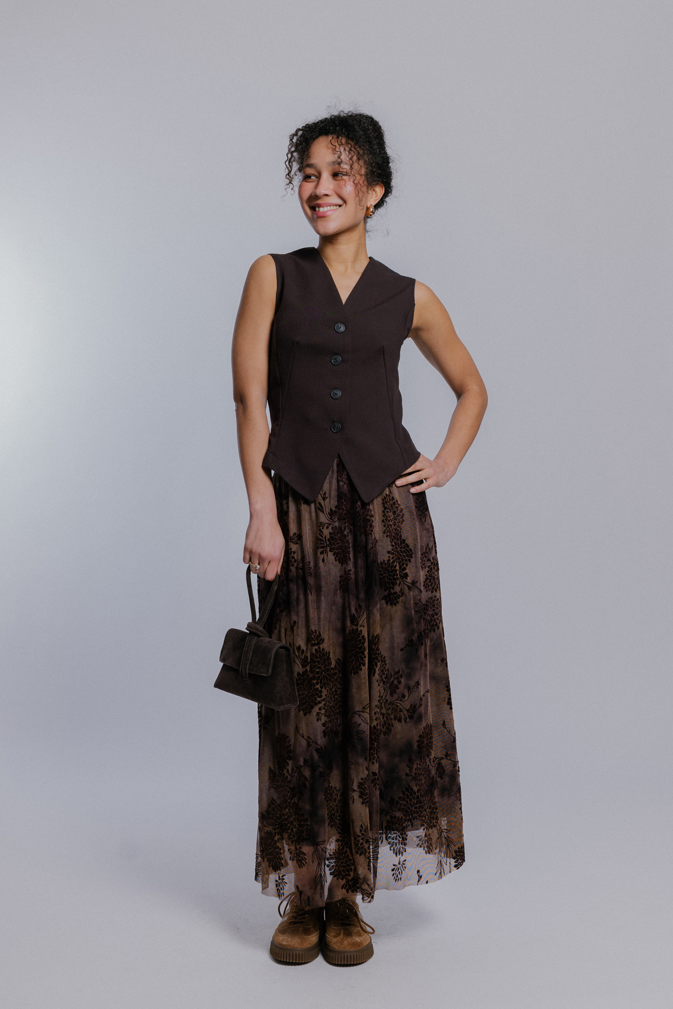 Hnědá tylová sukně