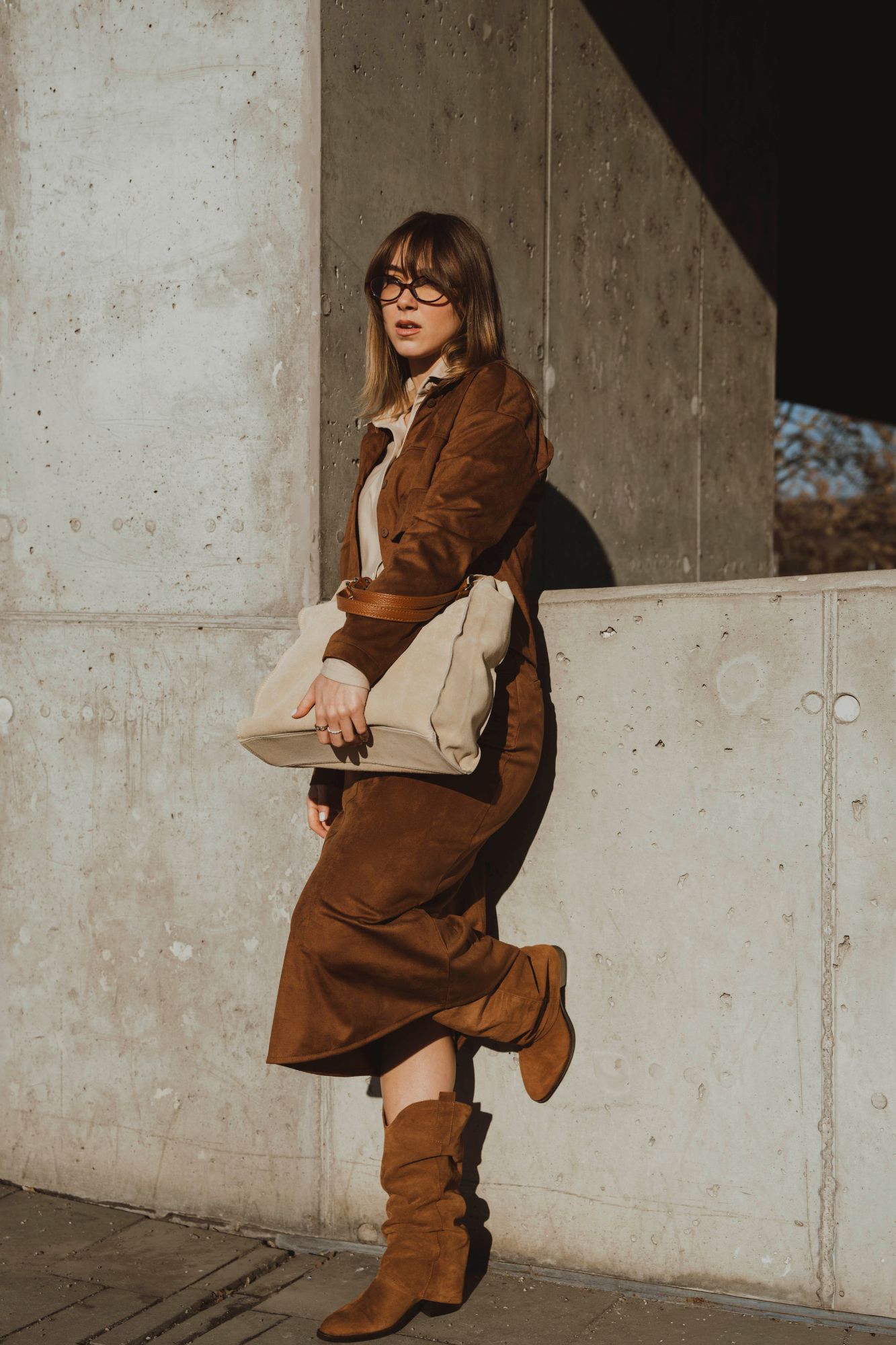 Semišová midi sukně