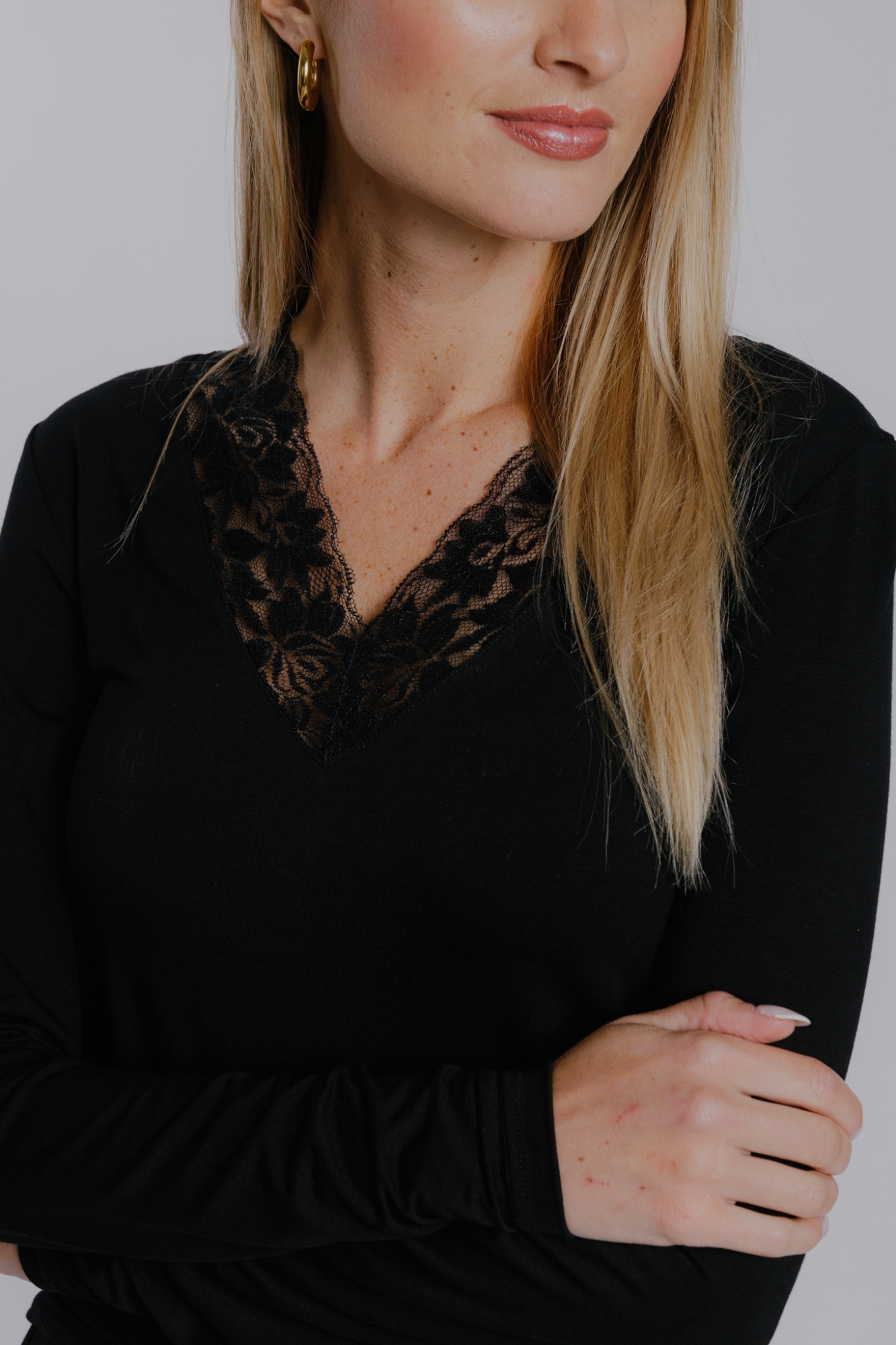 Černé triko s krajkou do V - XS