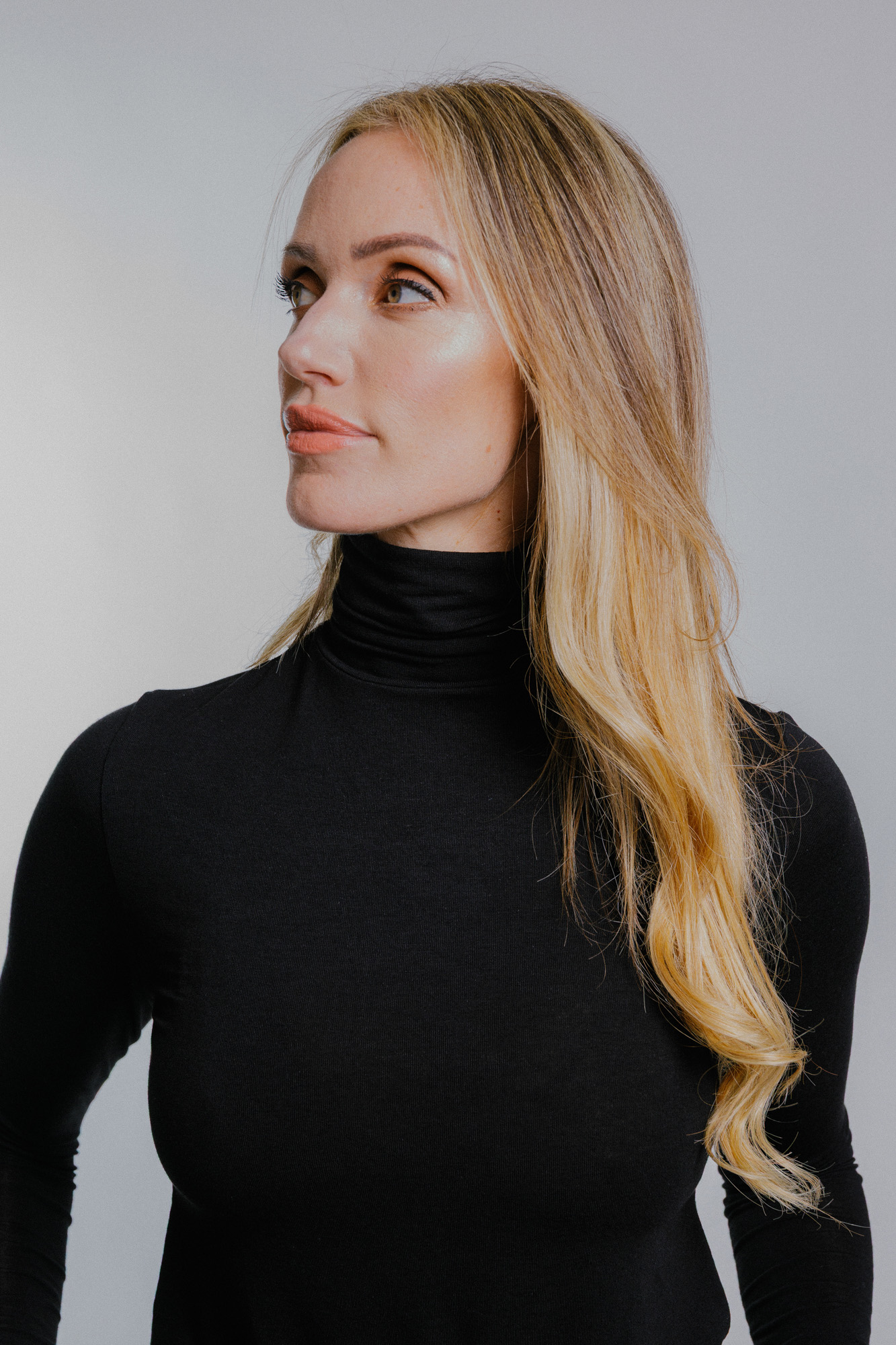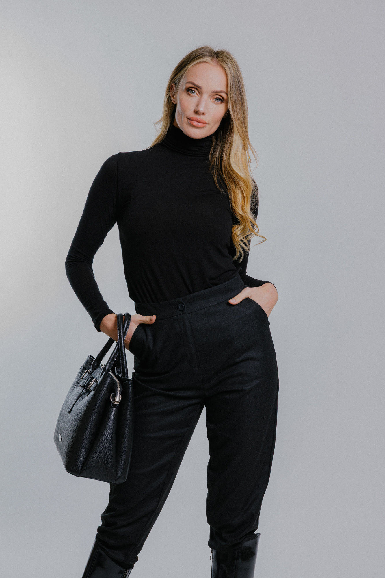 Míry modelky: prsa 92 cm; pas 63 cm; boky 92 cm; výška 177 cm. Modelka má na sobě velikost S.