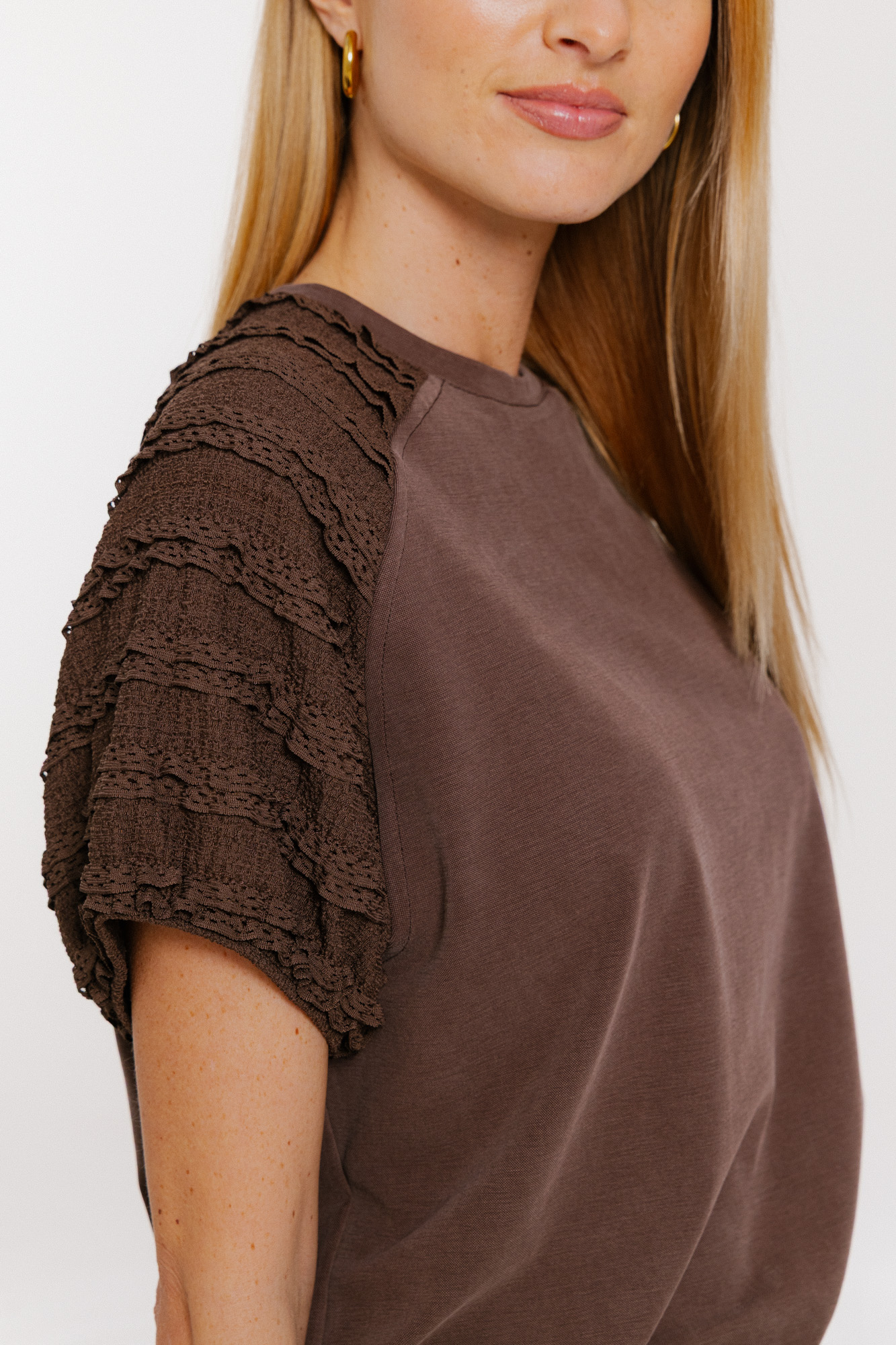 Hnědé triko s krajkou