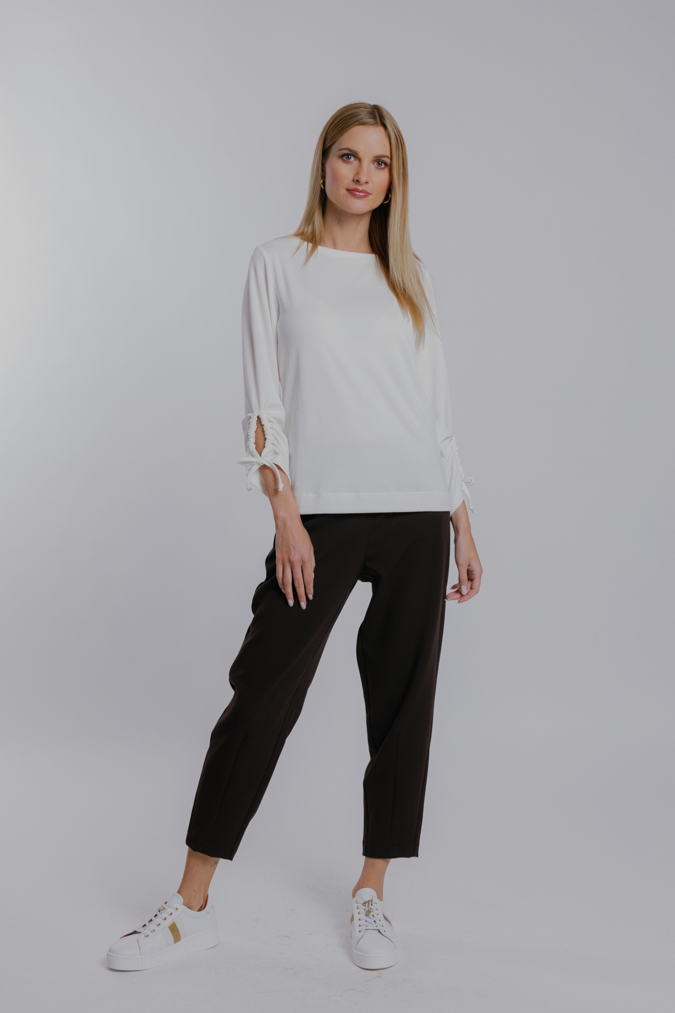Míry modelky: prsa 89 cm; pas 60 cm; boky 85 cm; výška 175 cm. Modelka má na sobě velikost S.