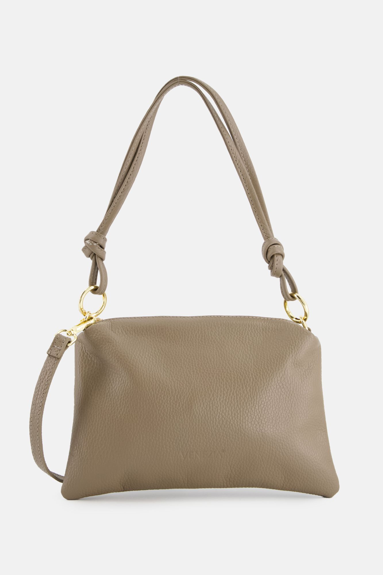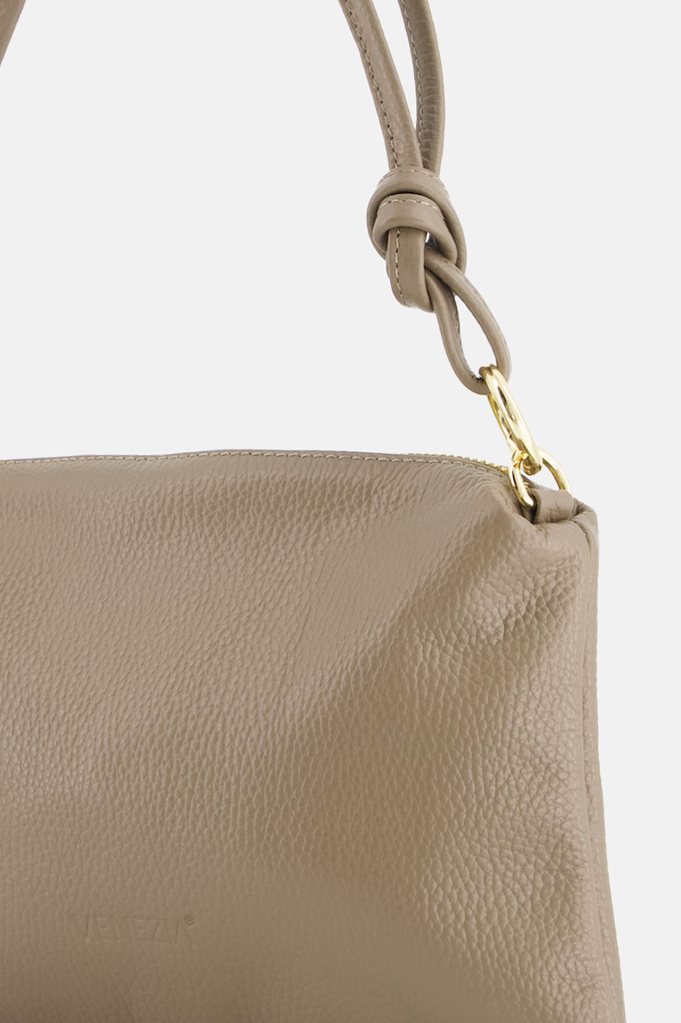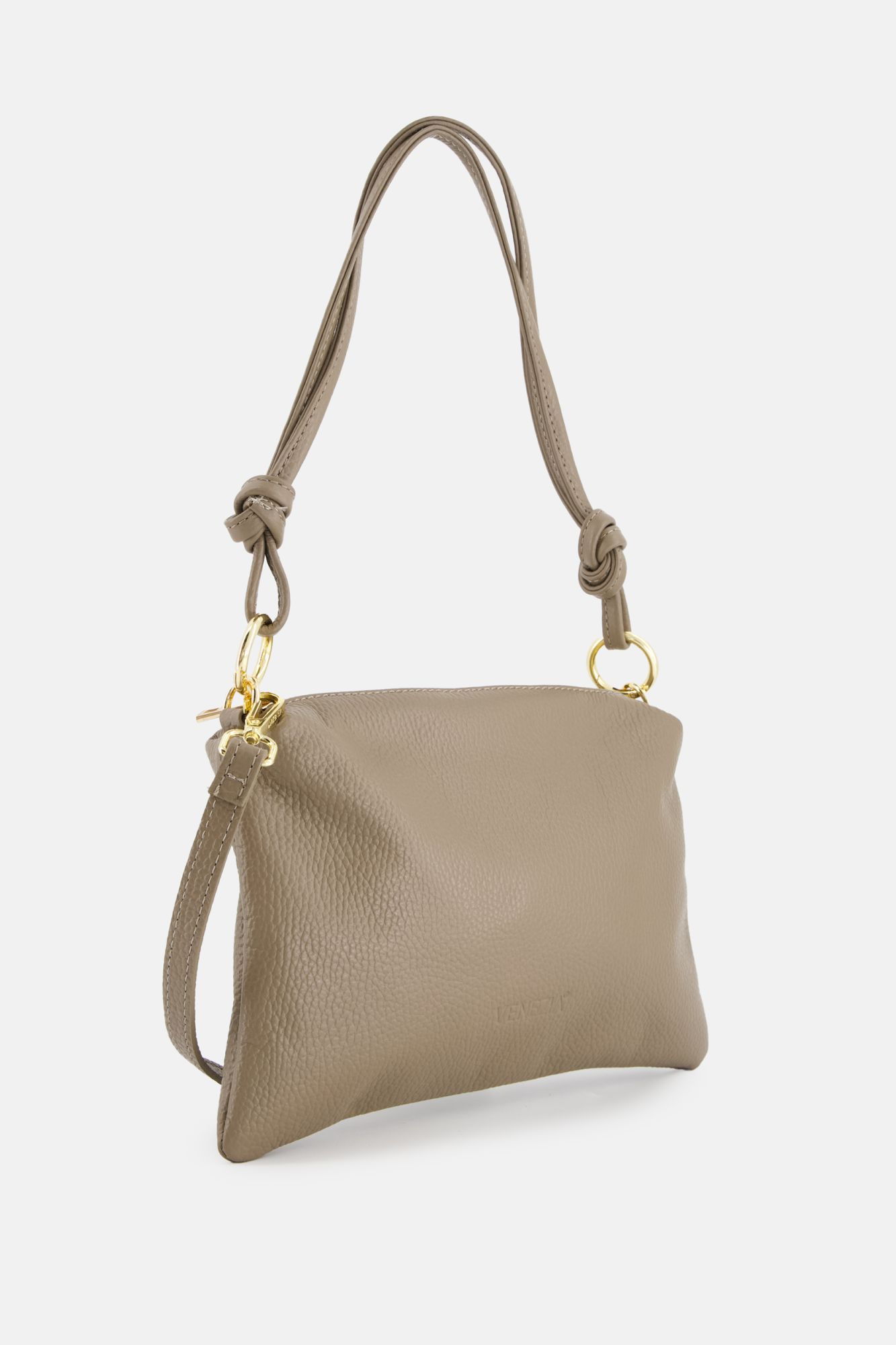 Hnědá kožená dámská kabelka přes rameno s ozdobným uchem
