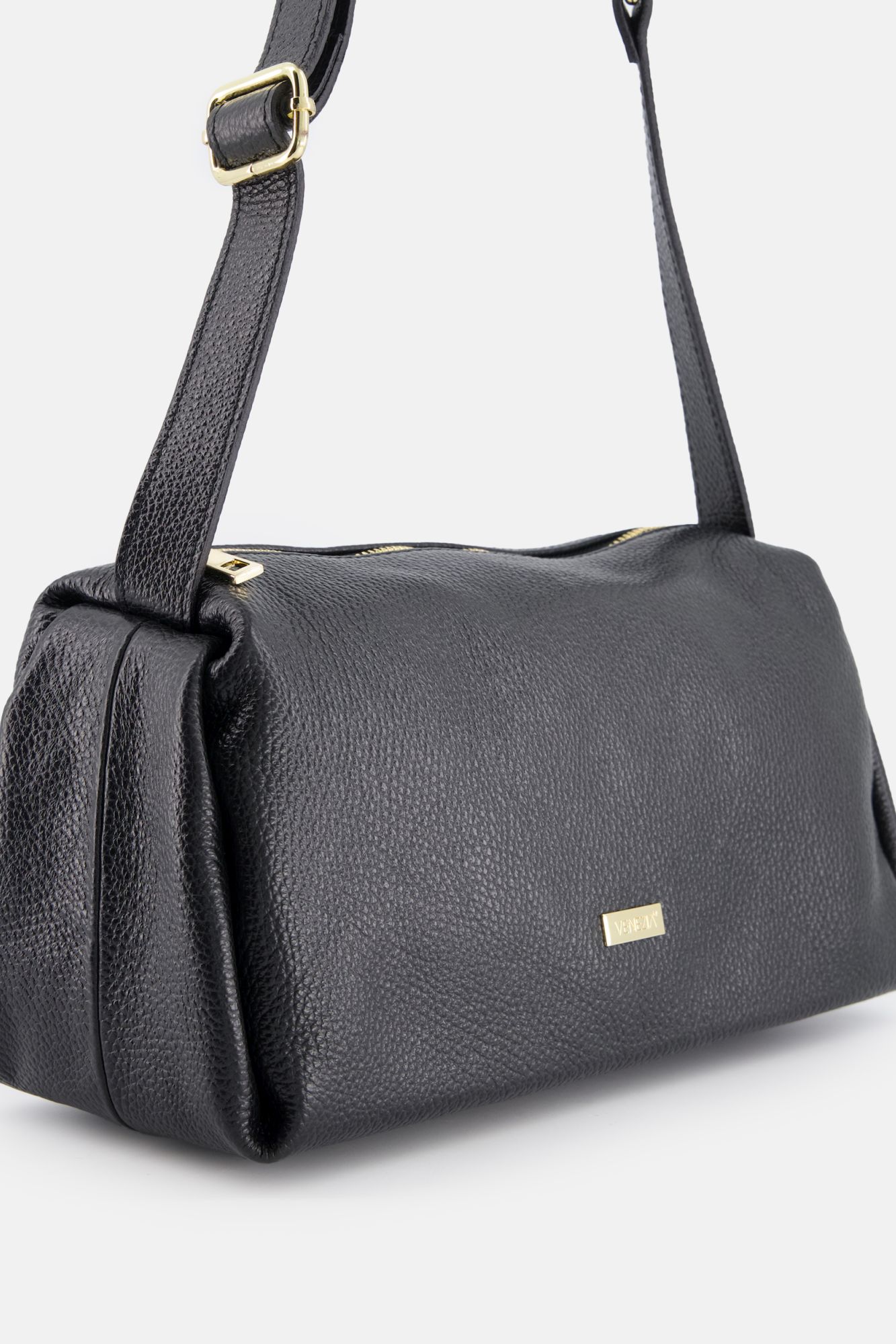 Černá kožená kabelka s popruhem