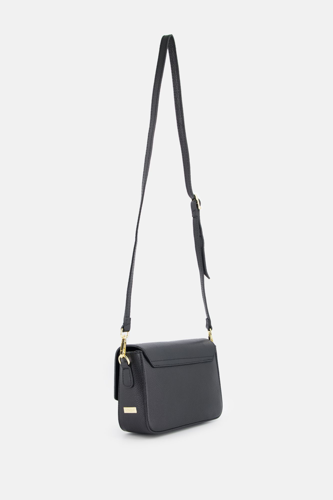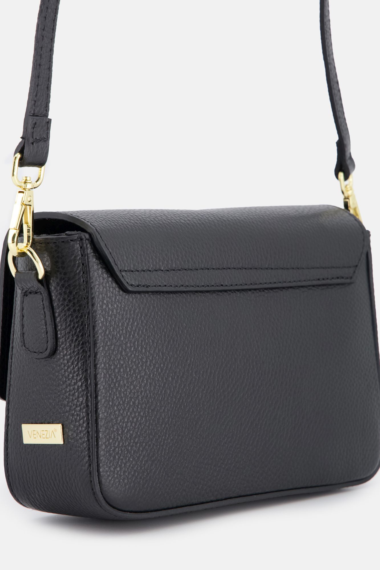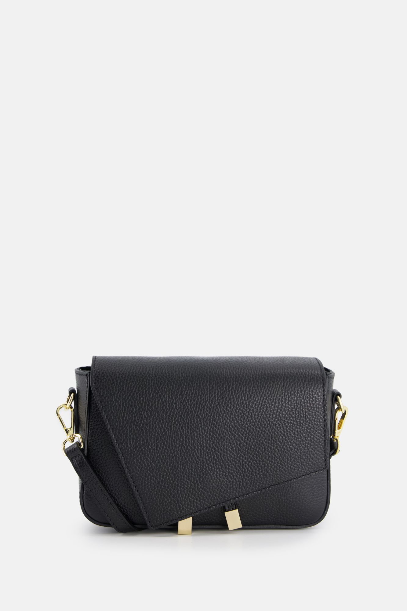 Černá kožená kabelka přes rameno s asymetrickou klopou -