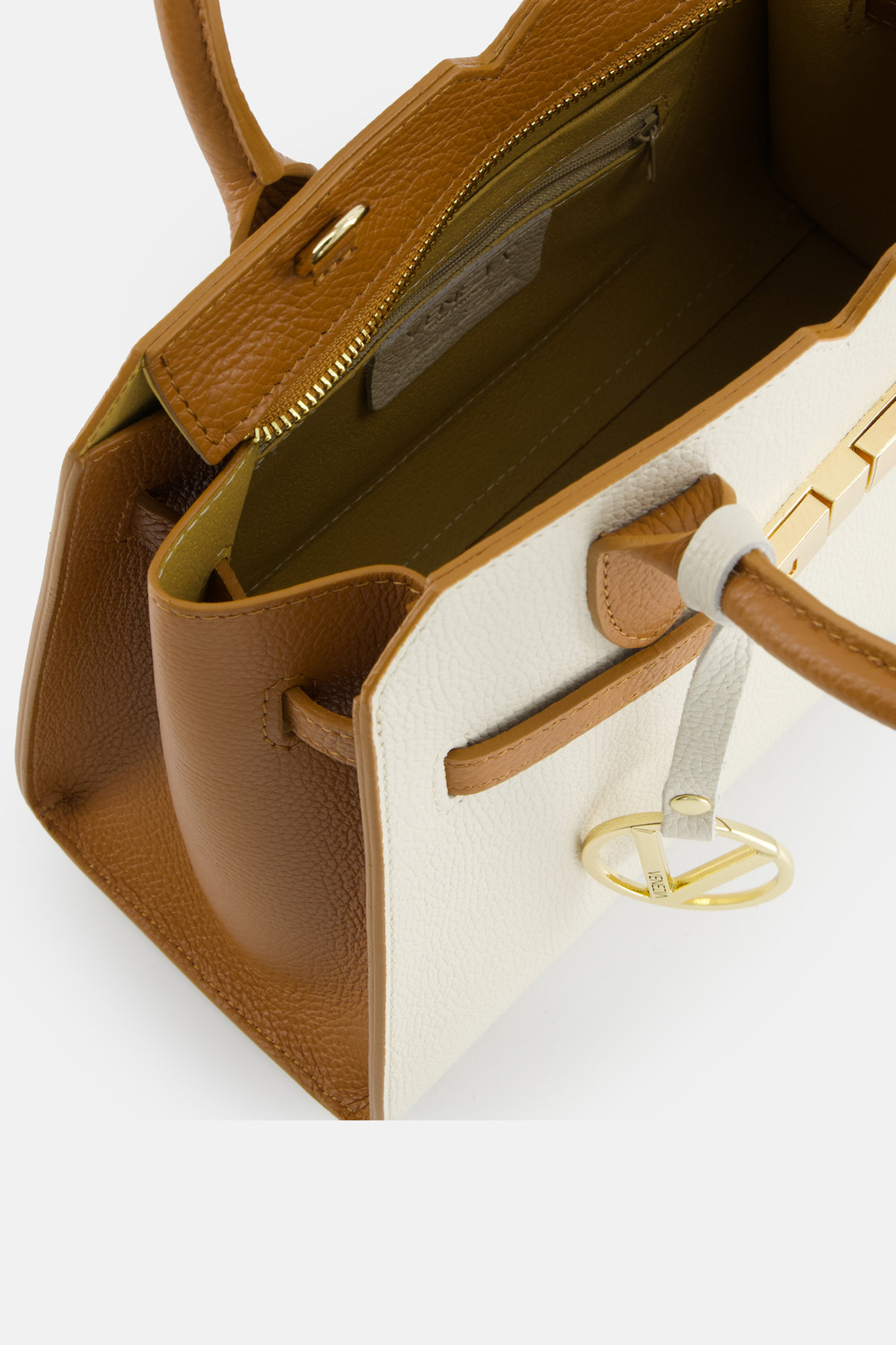 Dámská kožená kabelka s hnědým lemováním