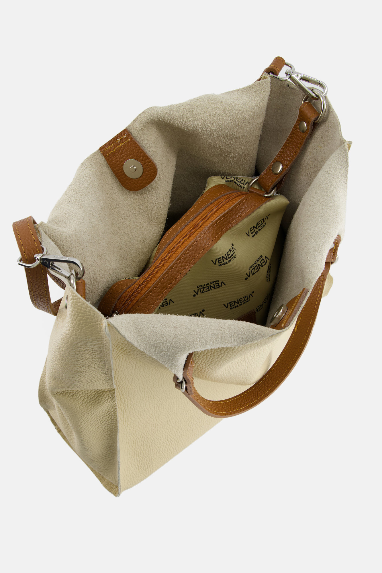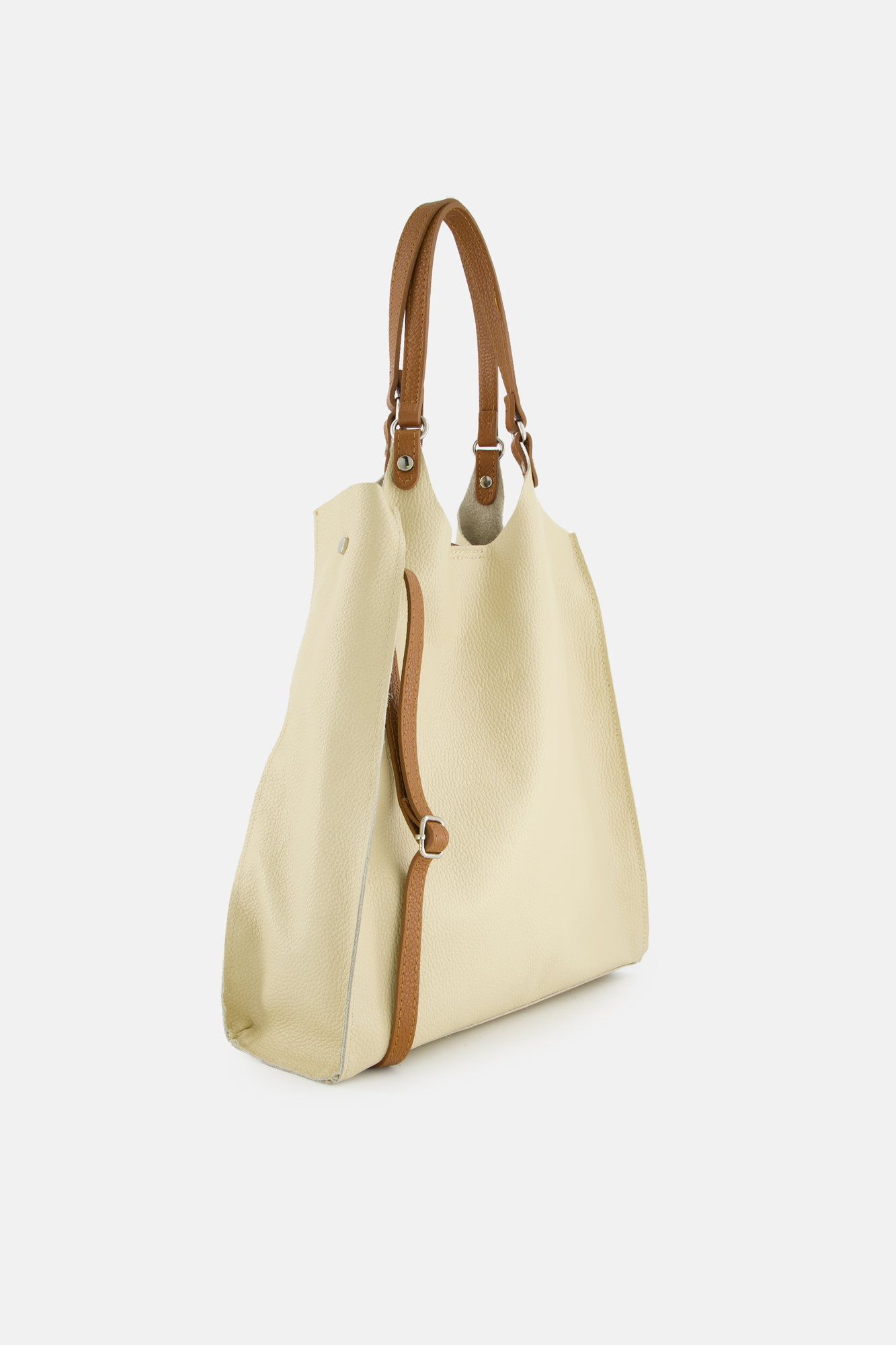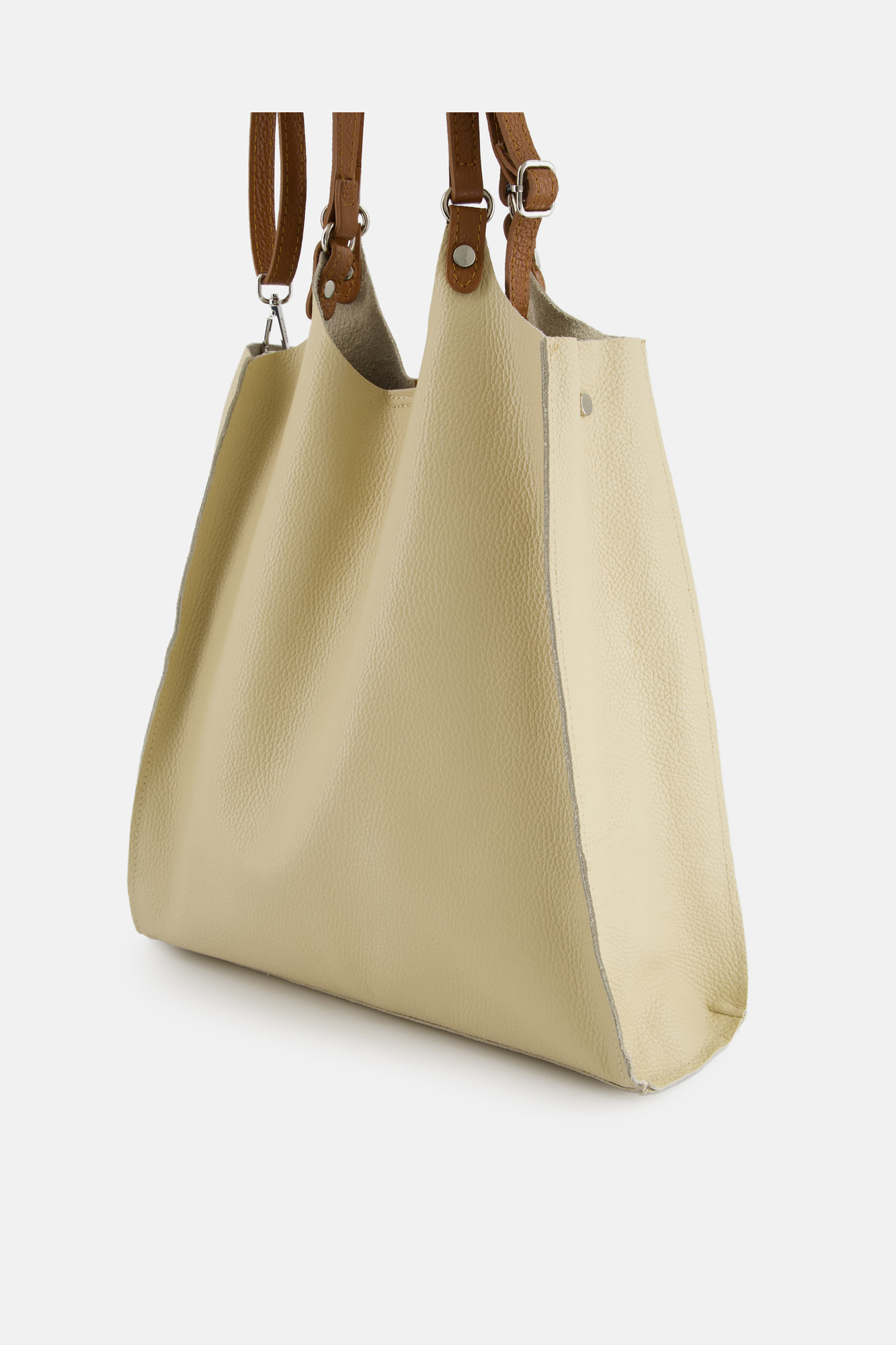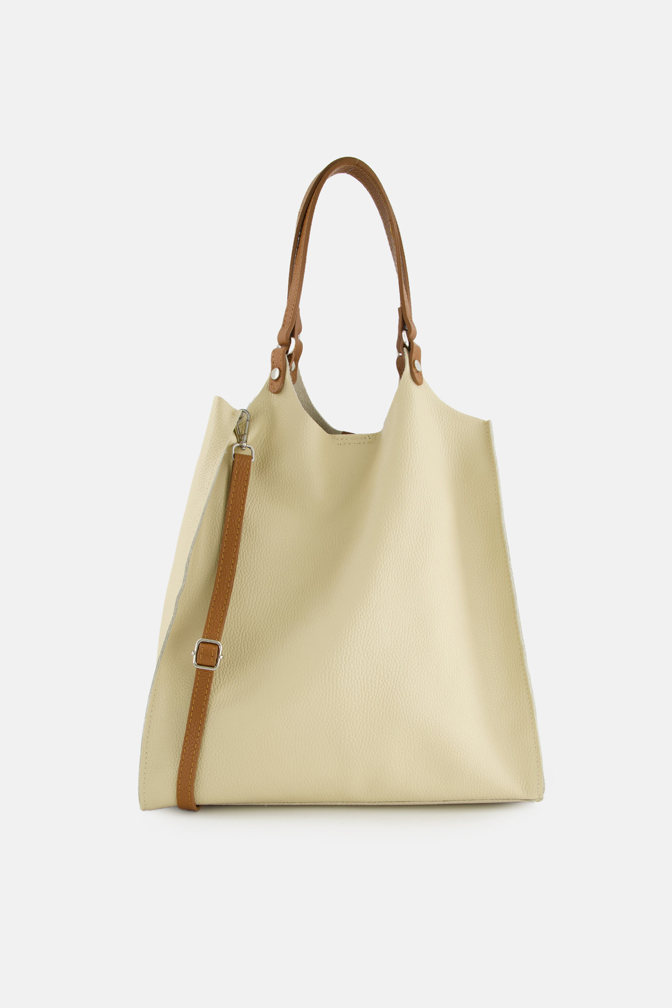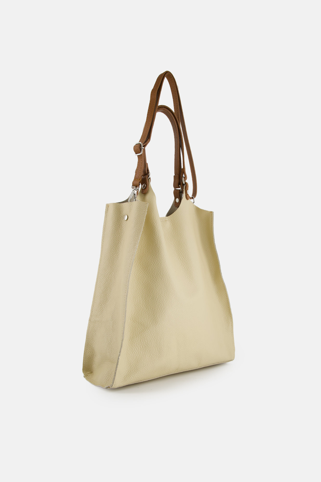 Dámská shopperka z béžové kůže s hrubou texturou -