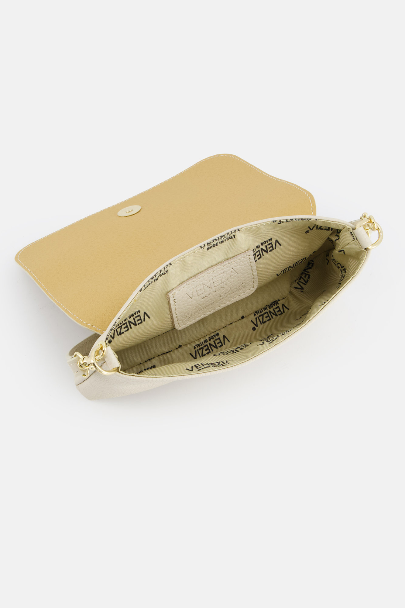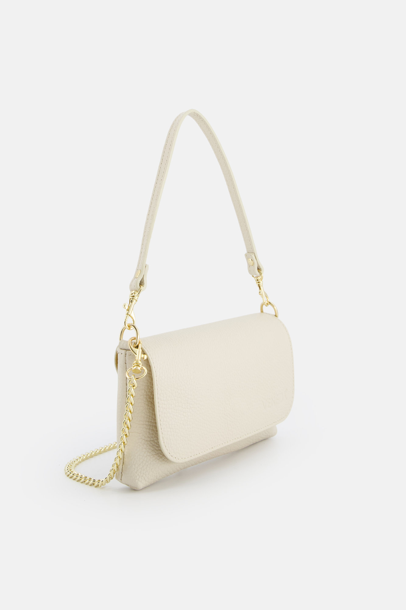 Elegantní béžová kožená kabelka přes rameno s hrubou texturou
