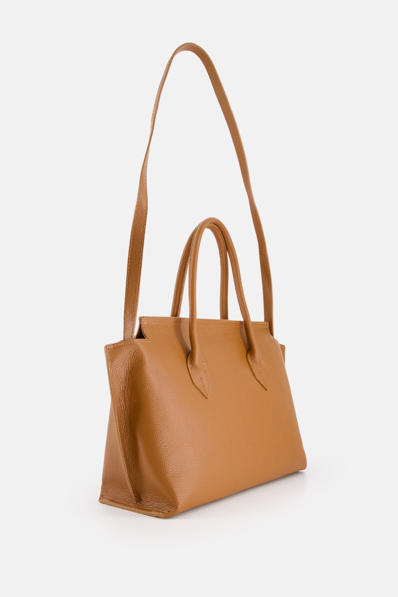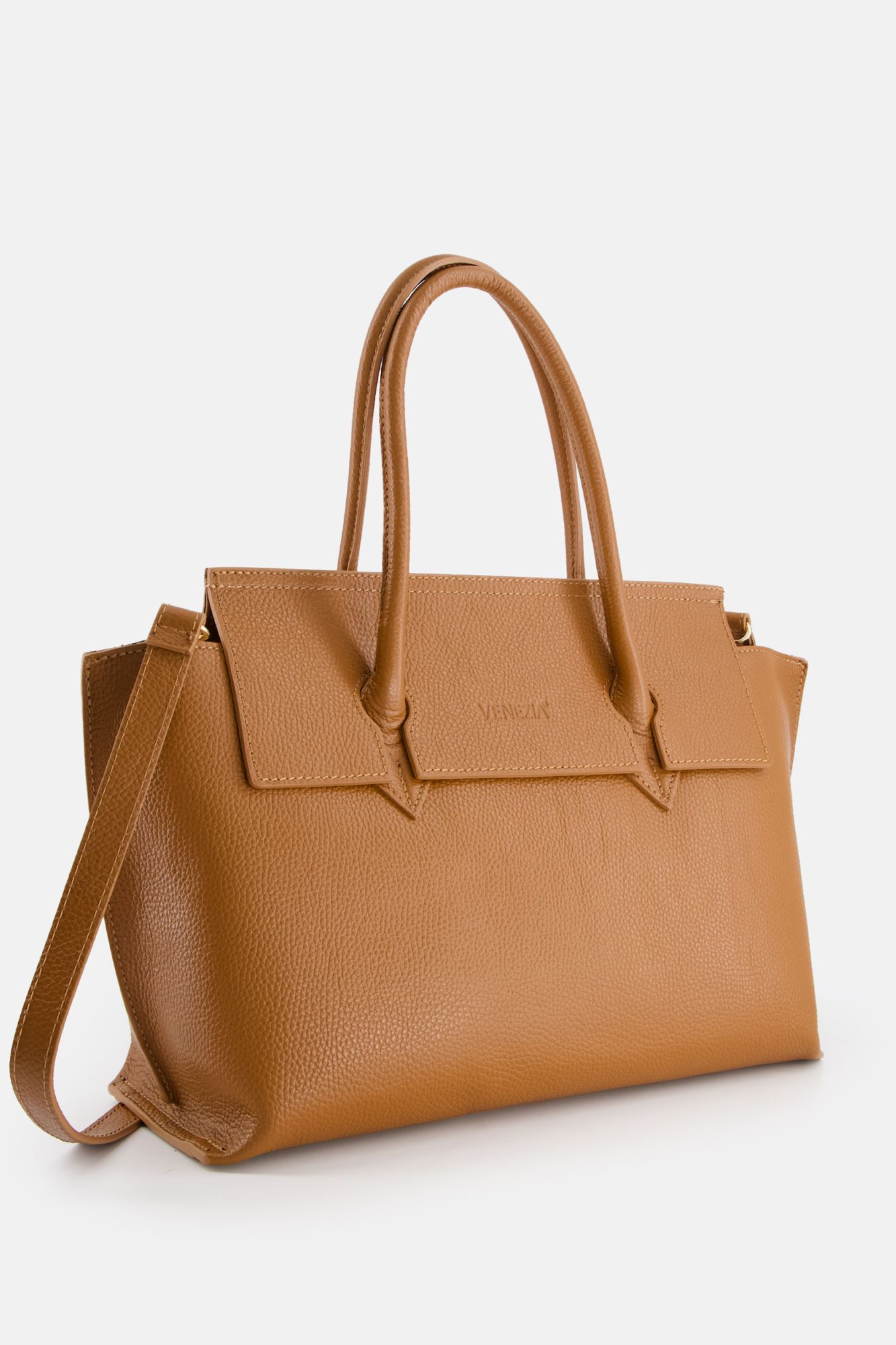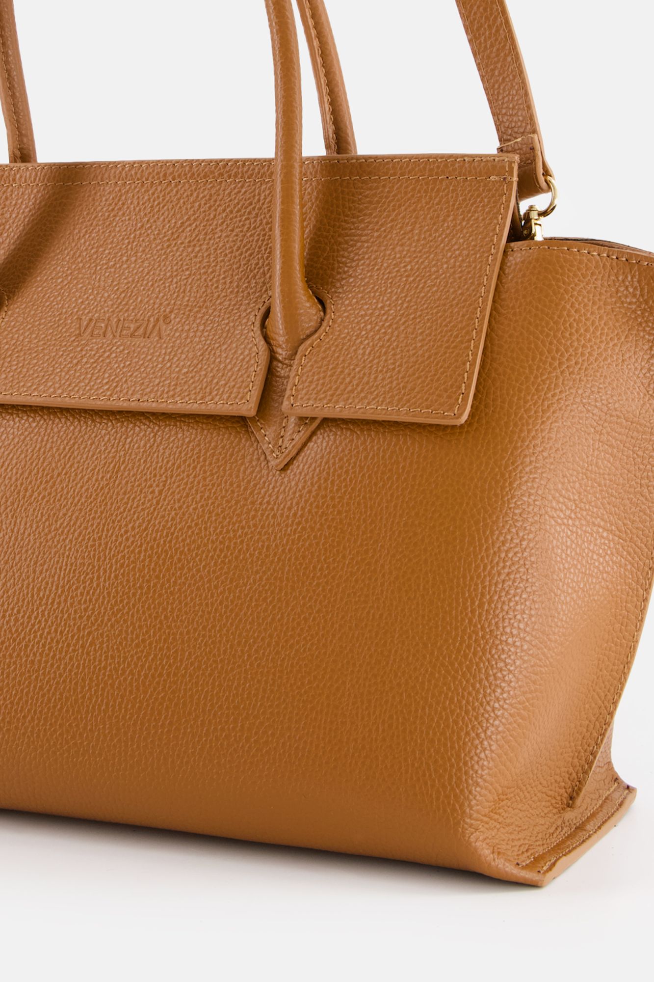 Hnědá kožená nákupní taška s klopou