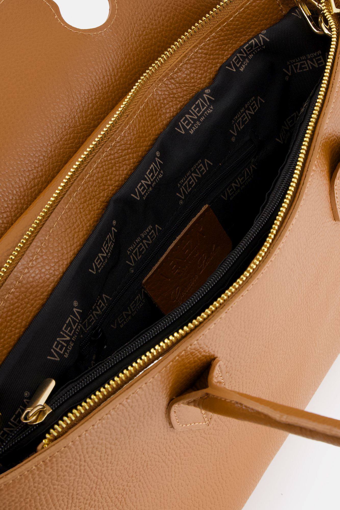 Hnědá kožená shopper kabelka s klopou -