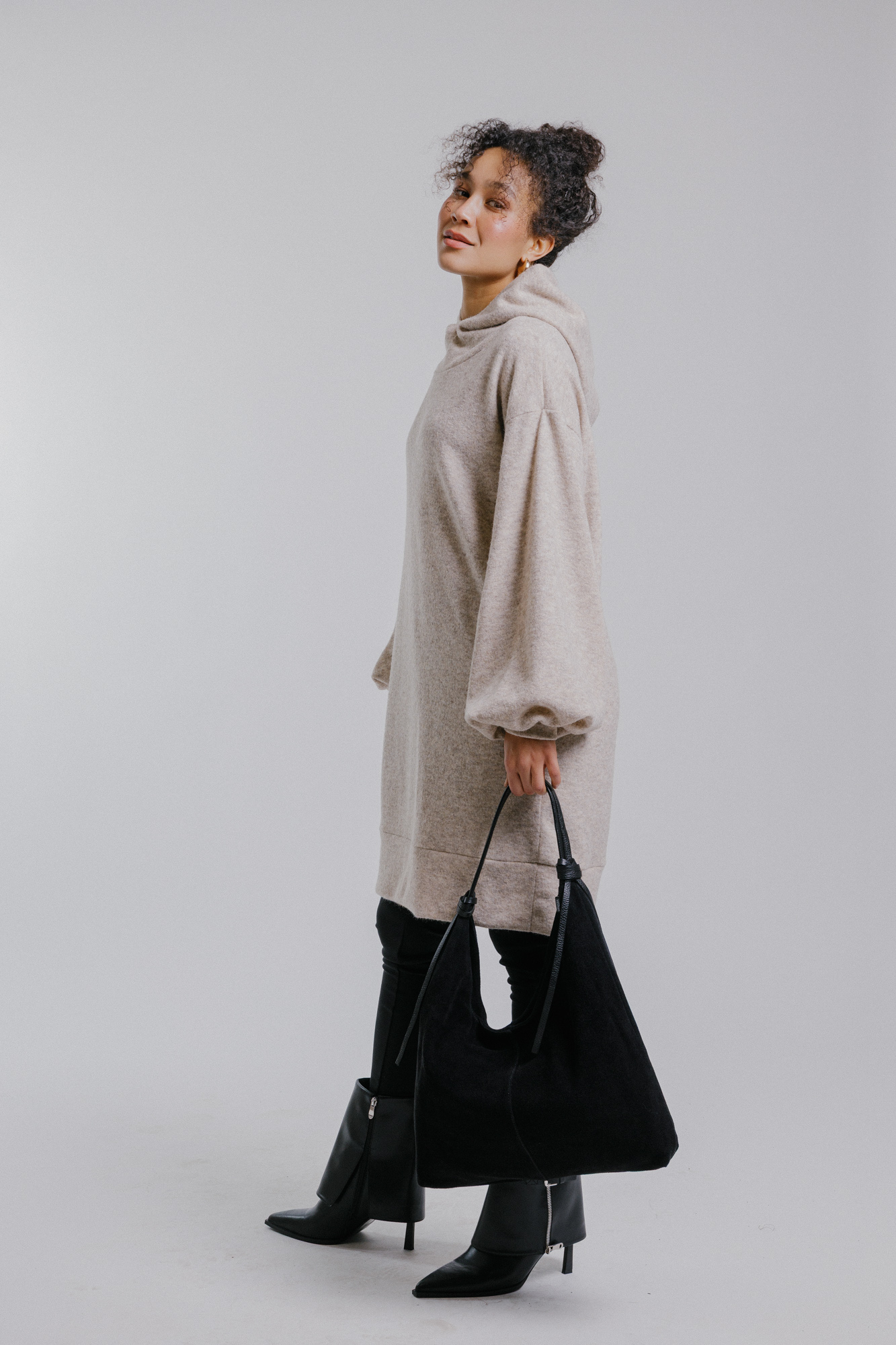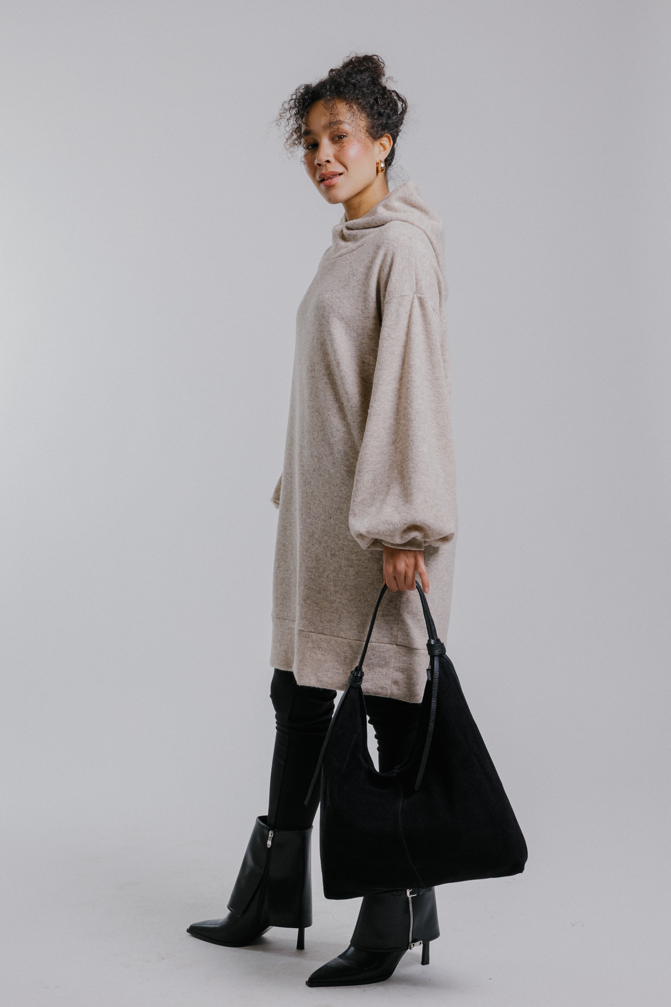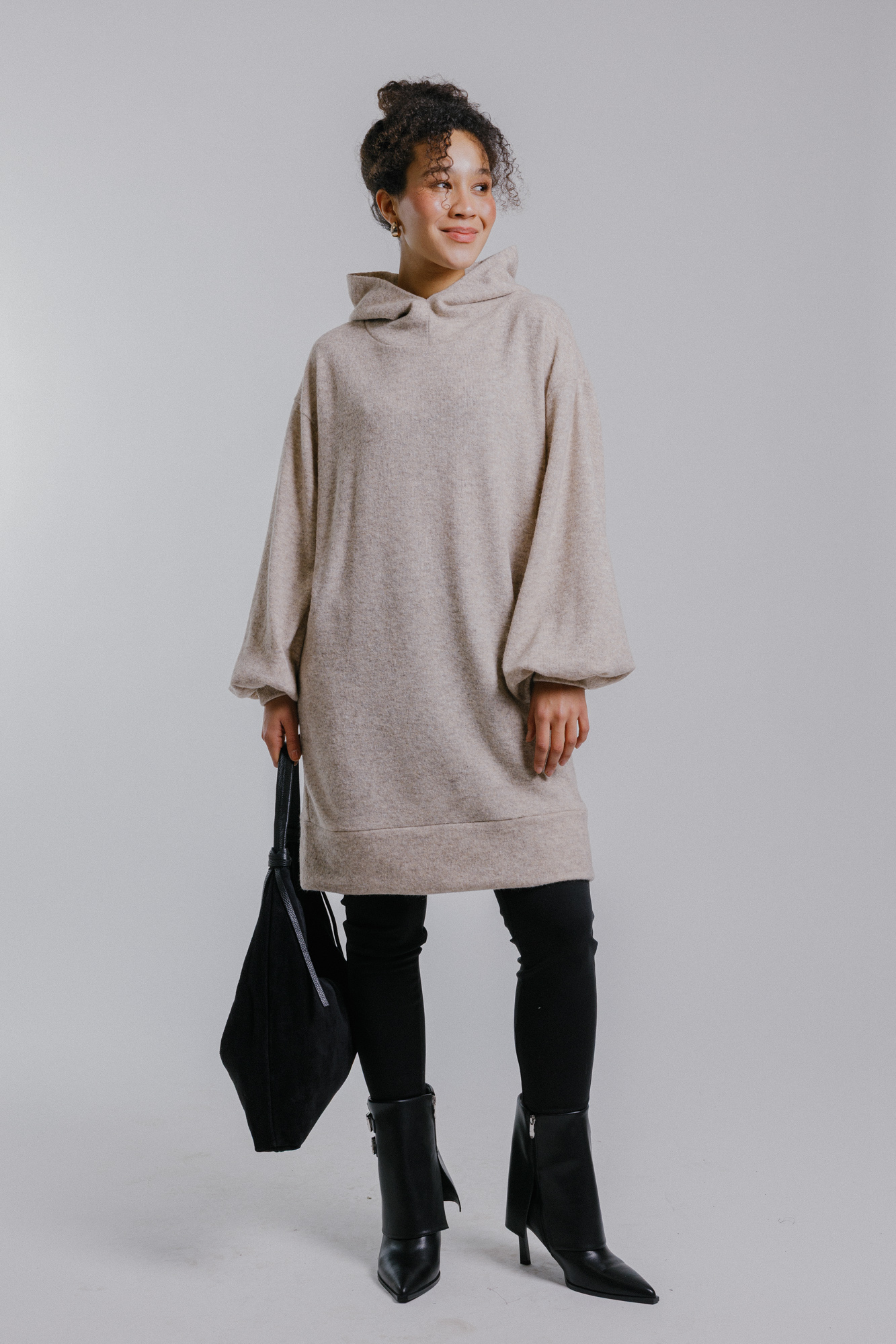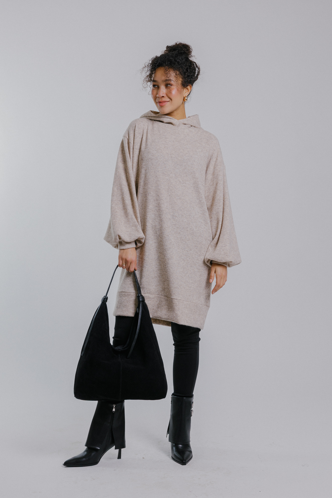 Svetrové šaty s kapucí