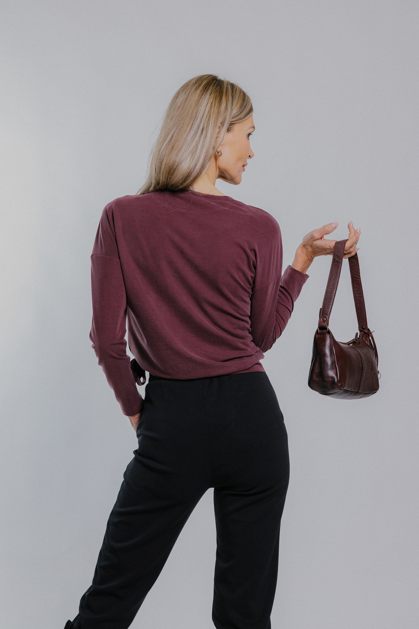 Míry modelky: prsa 92 cm; pas 60 cm; boky 86 cm; výška 183 cm. Modelka má na sobě velikost S.