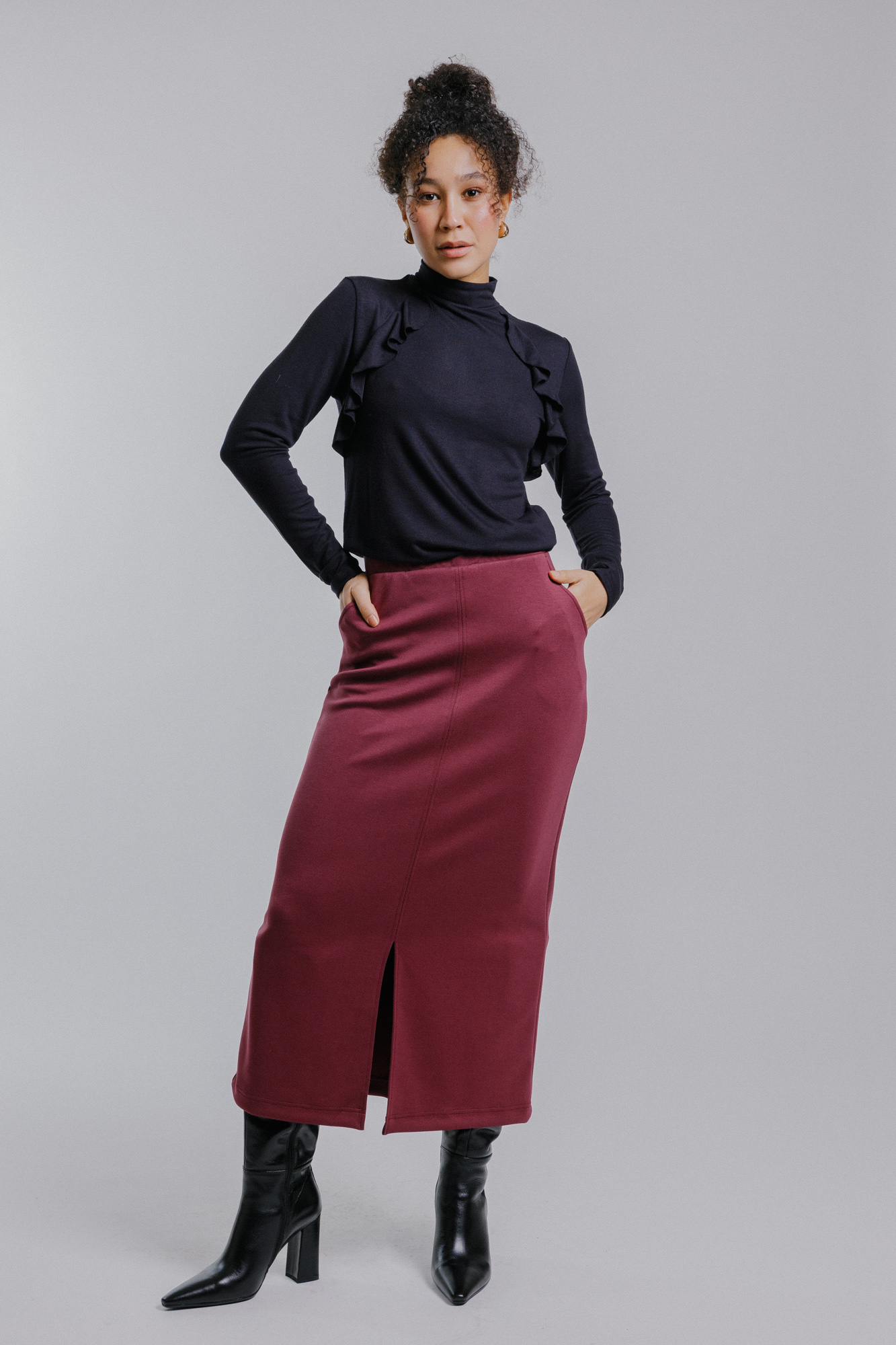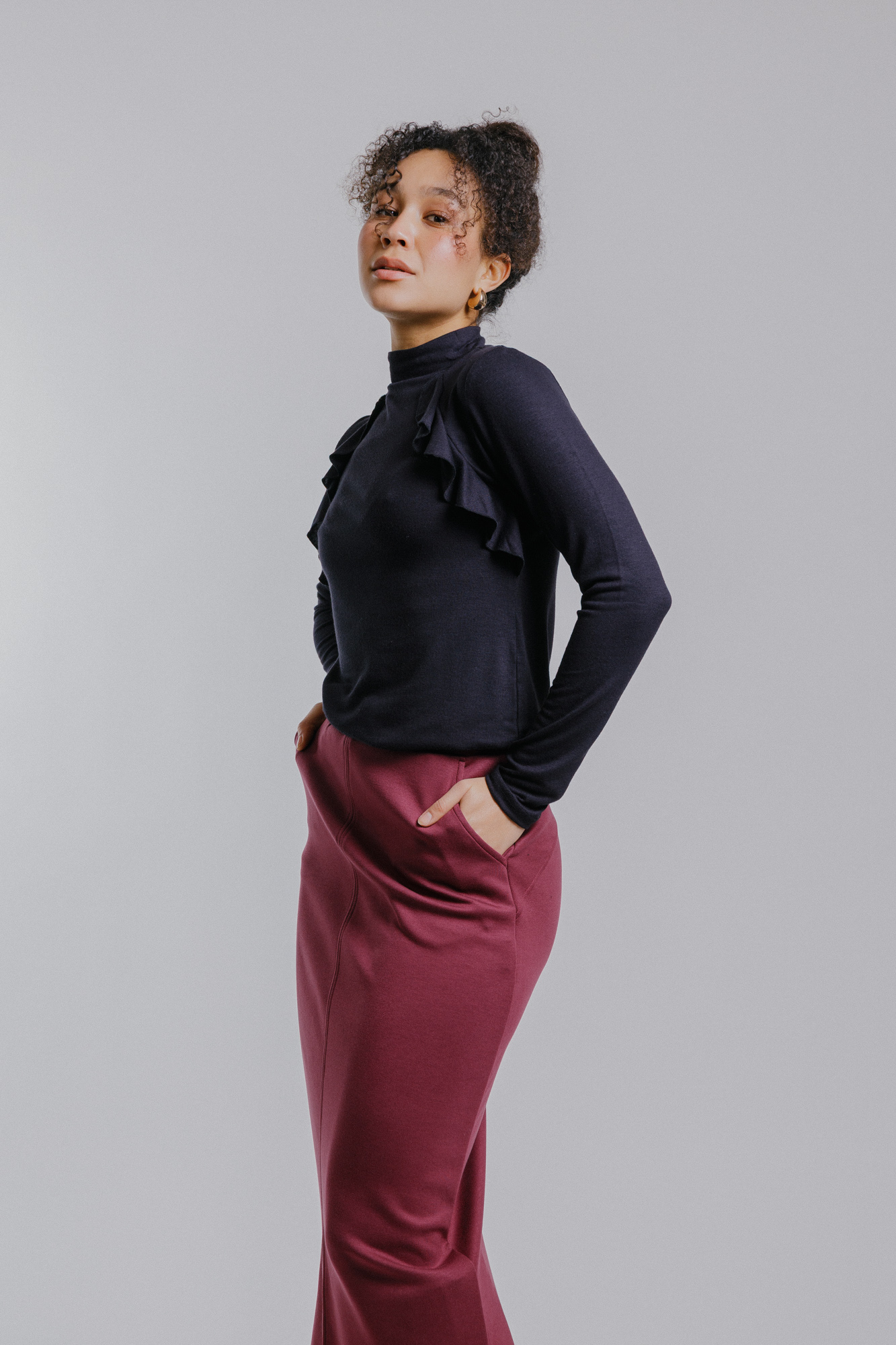 Míry modelky: prsa 85 cm; pas 65 cm; boky 95 cm; výška 173 cm. Modelka má na sobě velikost S