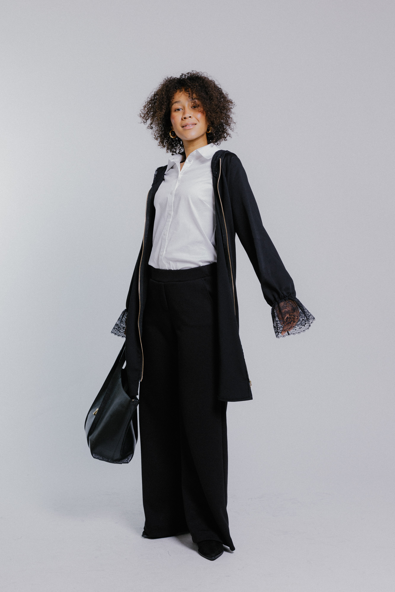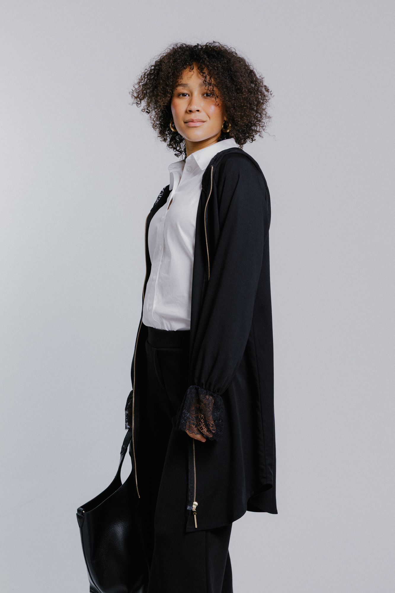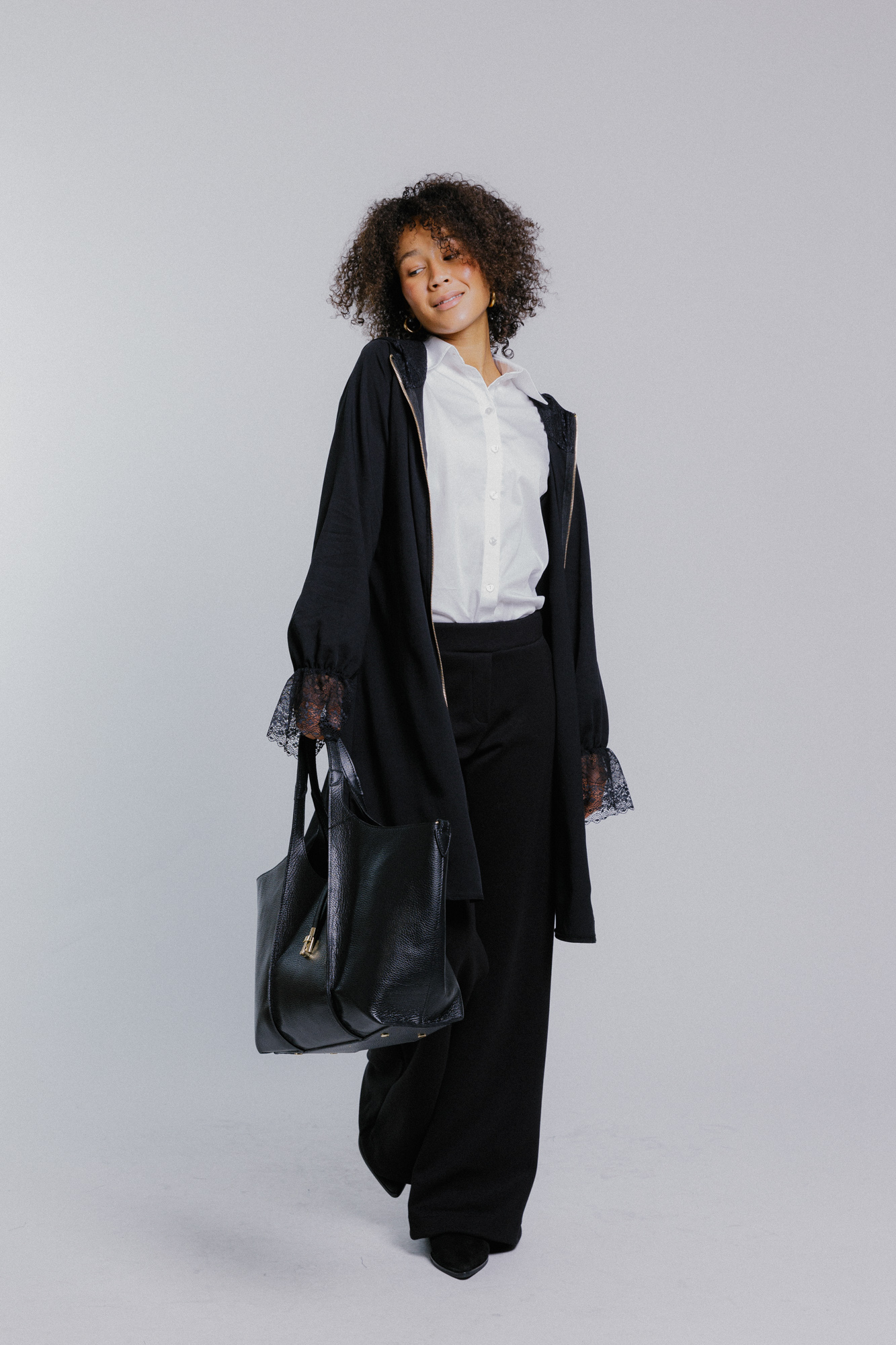 Černá dámská dlouhá košile s krajkou