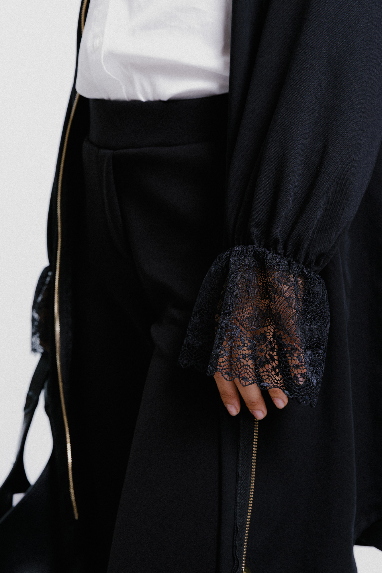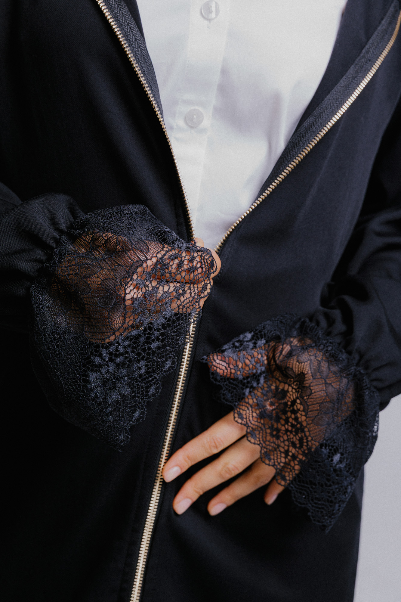 Model s rukávem s krajkou.