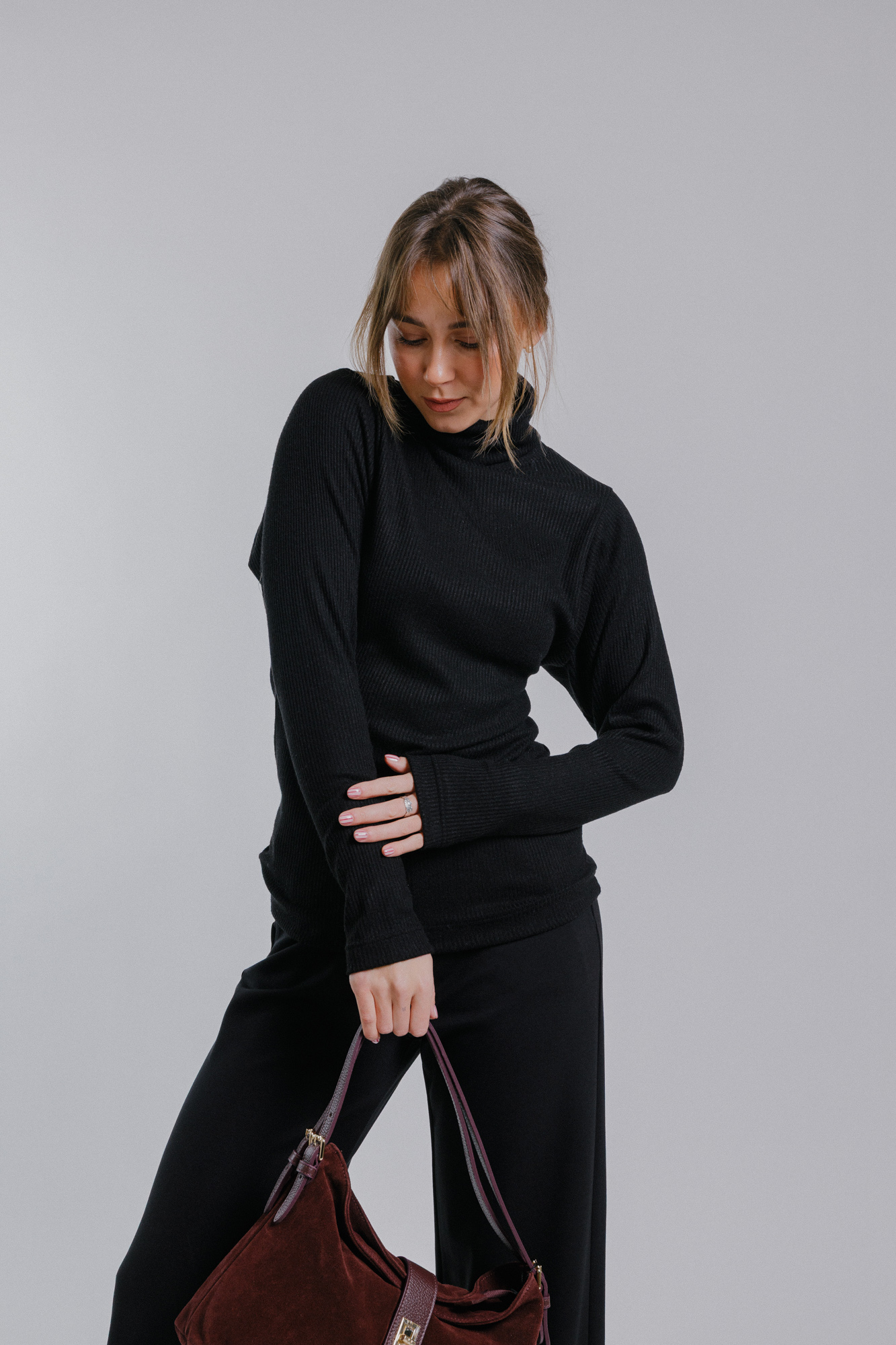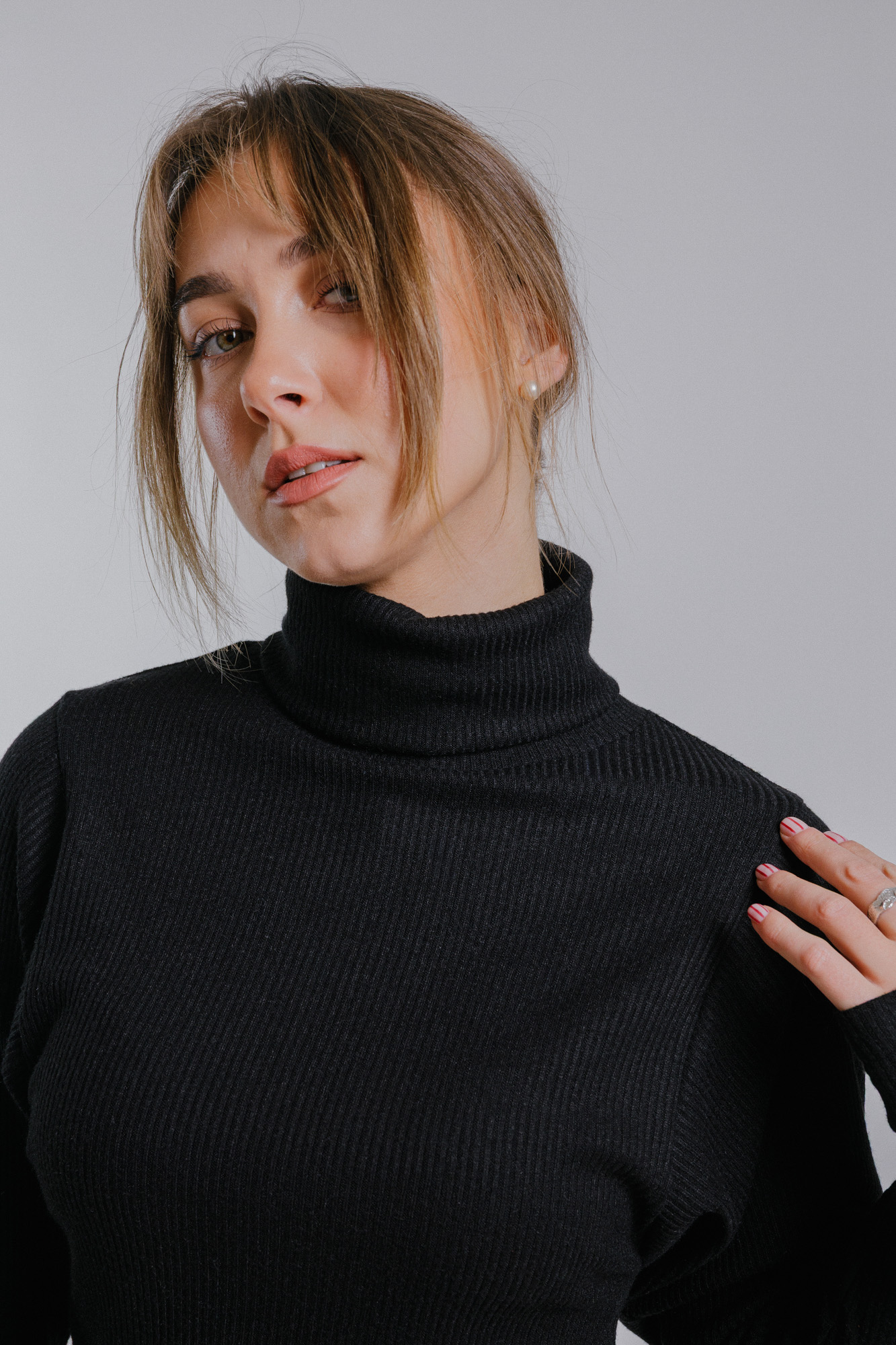 Míry modelky: prsa 85 cm; pas 65 cm; boky 92 cm; výška 174 cm. Modelka má na sobě velikost XS.