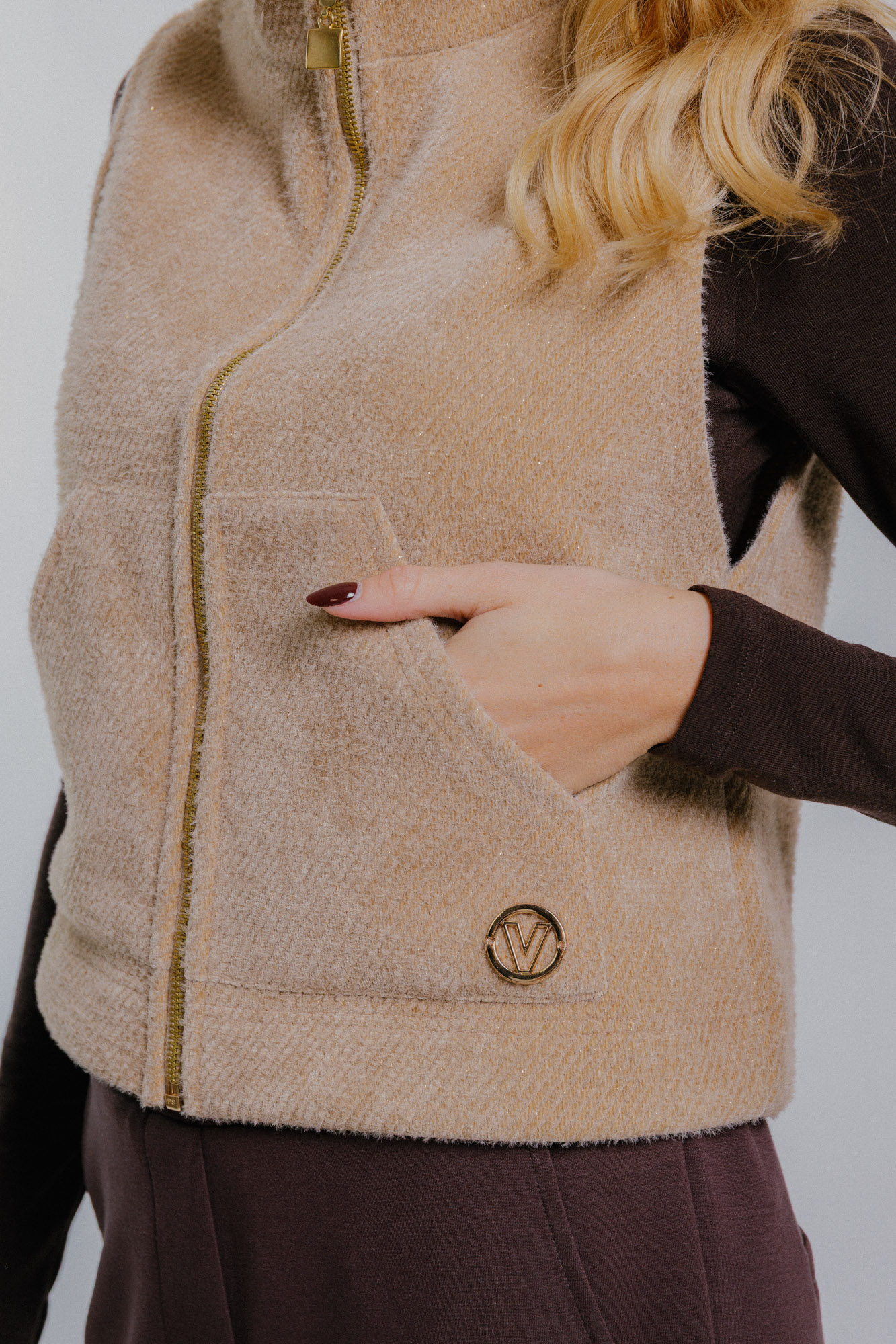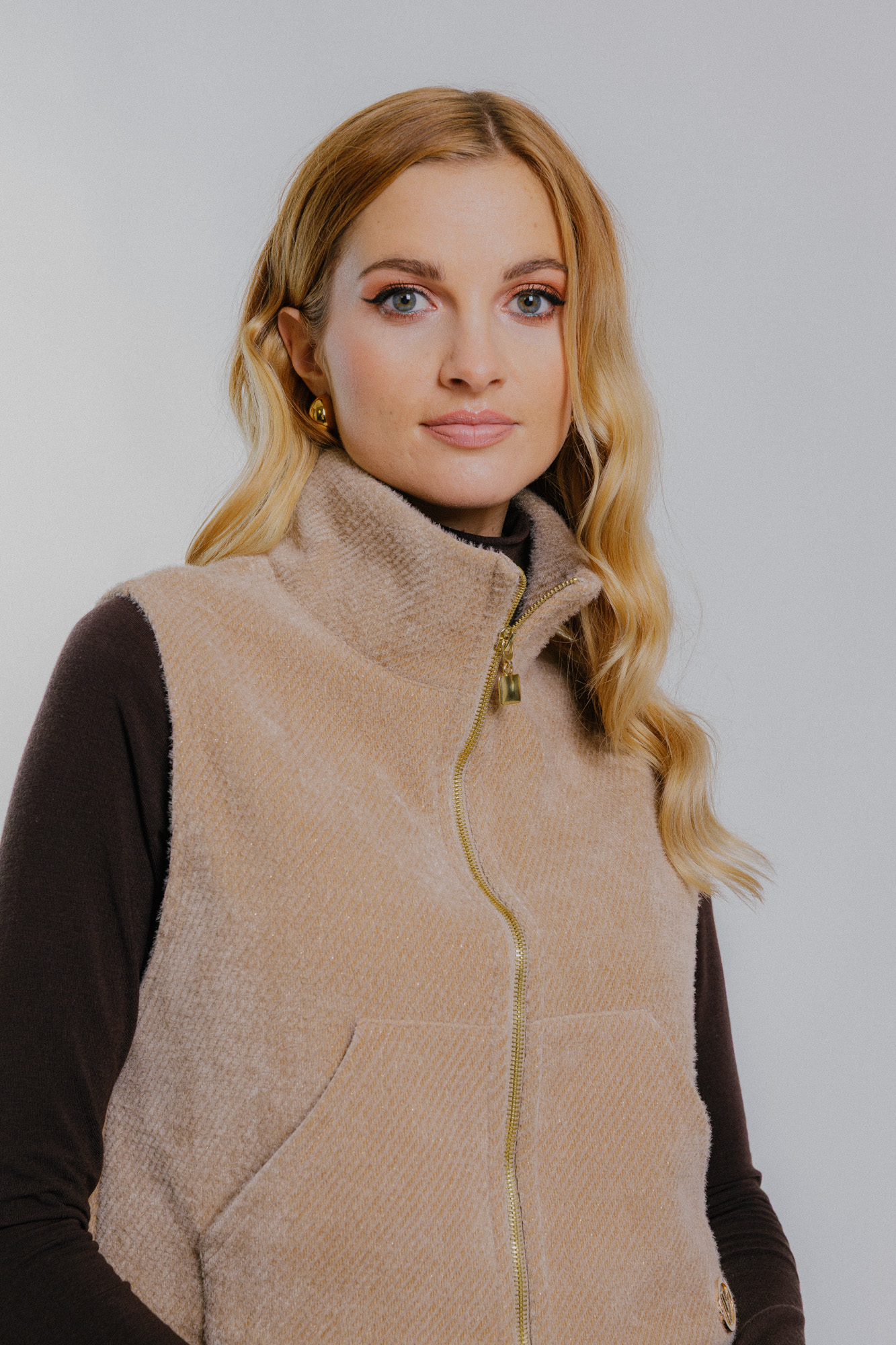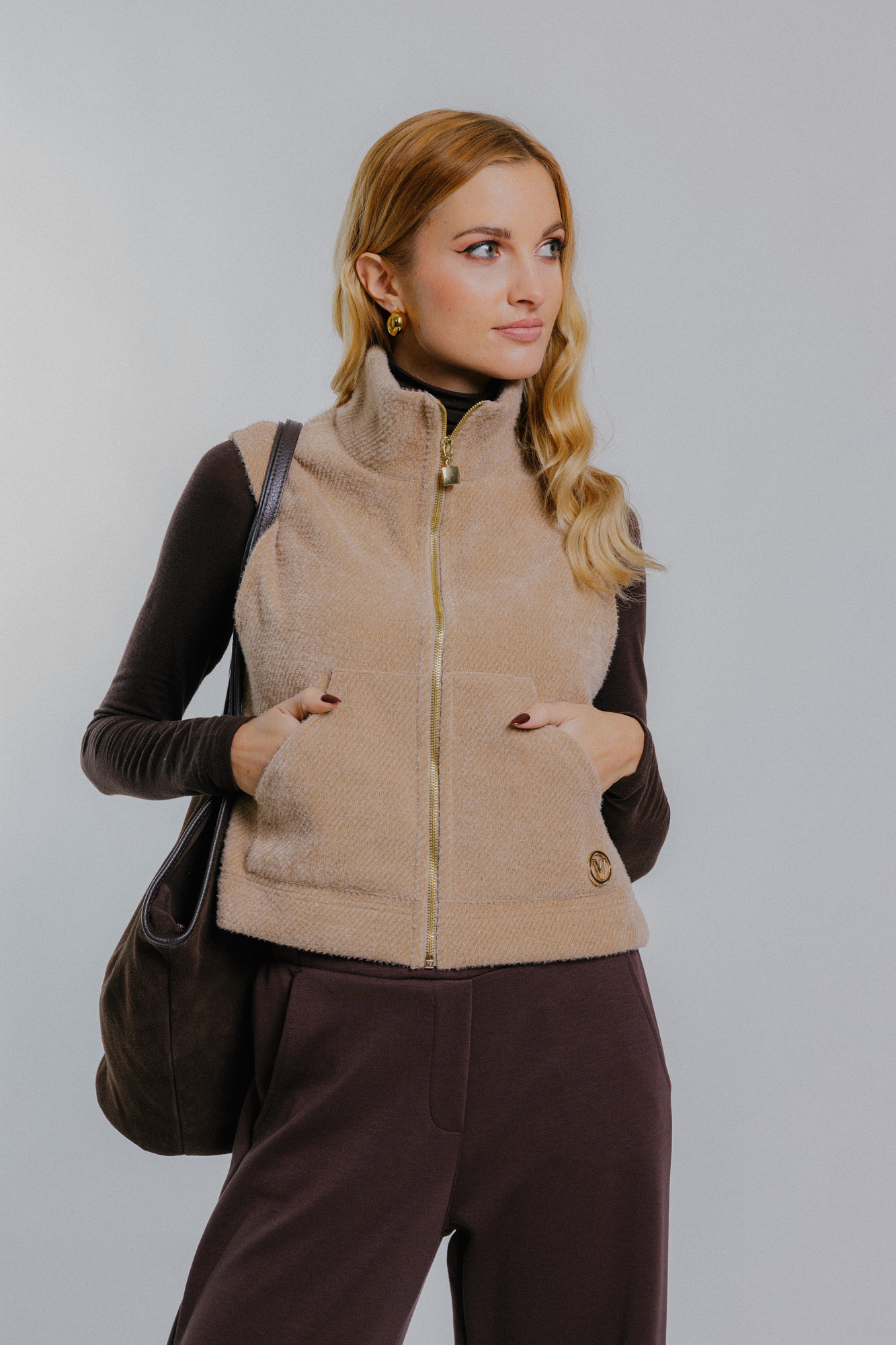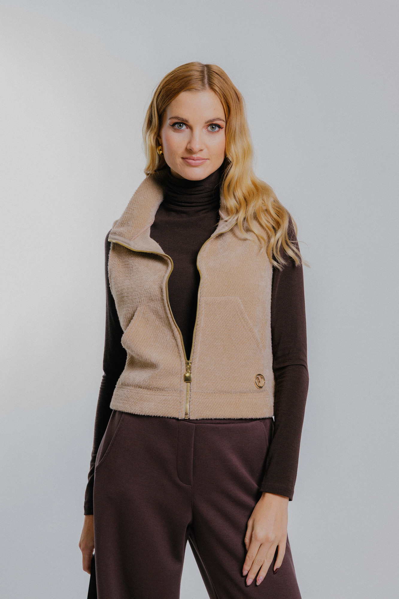 Míry modelky: prsa 89 cm; pas 60 cm; boky 85 cm; výška 175 cm. Modelka má na sobě velikost S.