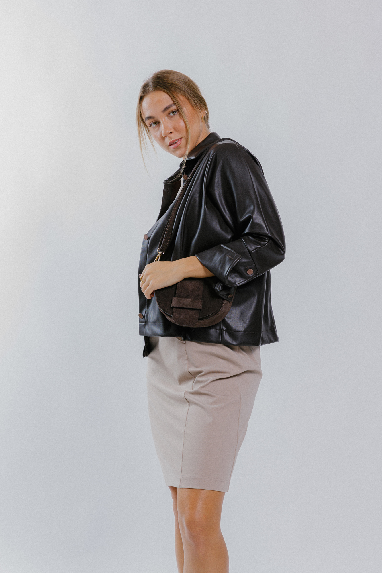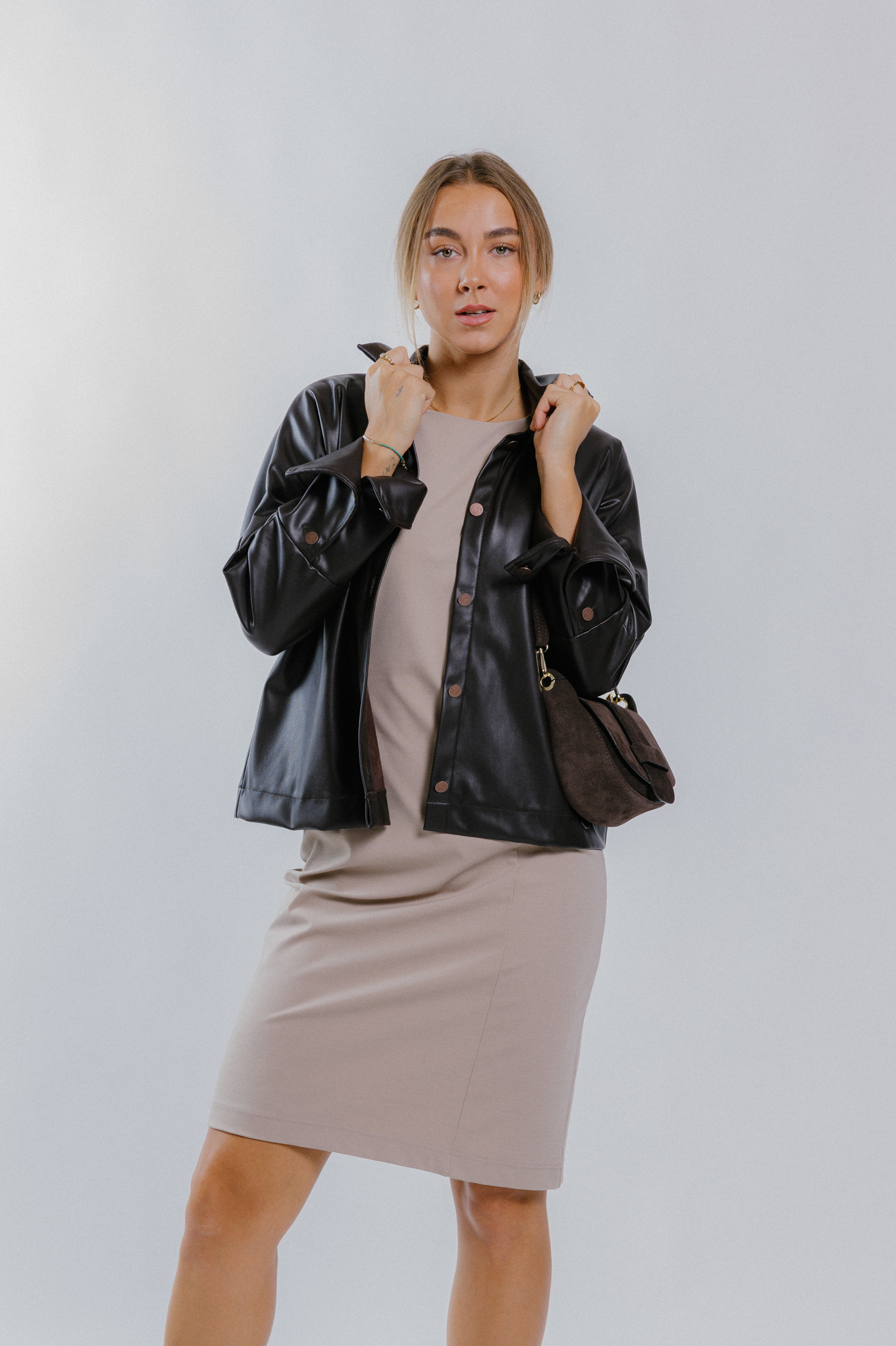 Míry modelky: prsa 85 cm; pas 65 cm; boky 95 cm; výška 177 cm. Modelka má na sobě velikost S.