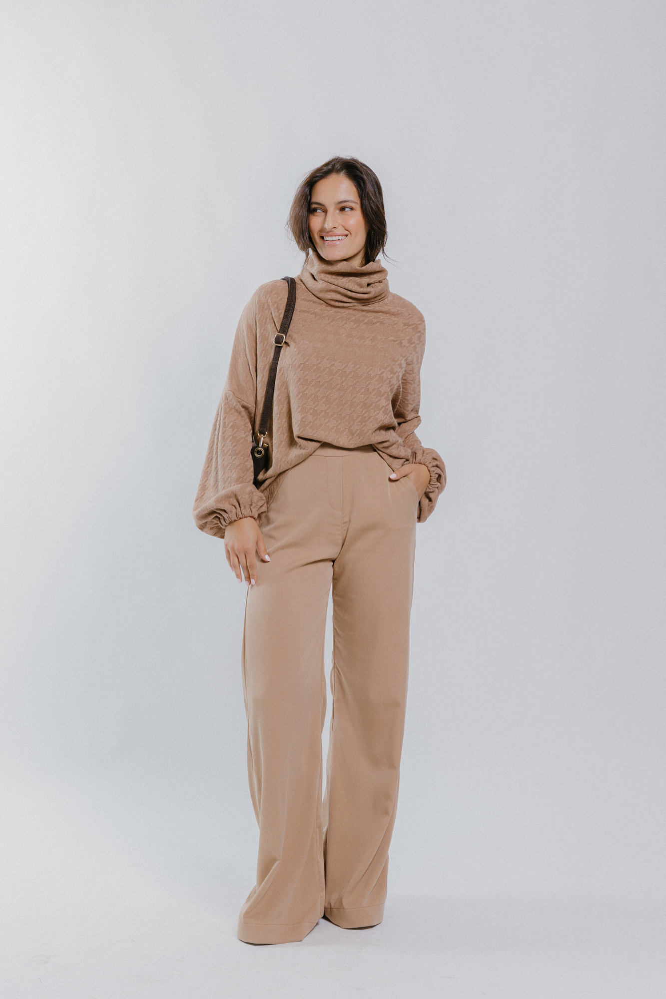 Míry modelky: prsa 85 cm; pas 65 cm; boky 95 cm; výška 177 cm. Modelka má na sobě velikost S.