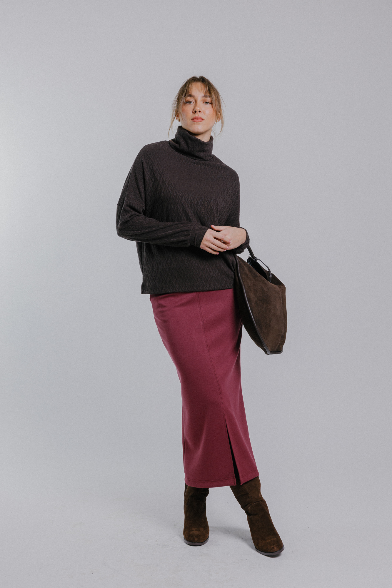 Míry modelky: prsa 85 cm; pas 65 cm; boky 92 cm; výška 174 cm. Modelka má na sobě velikost XS.