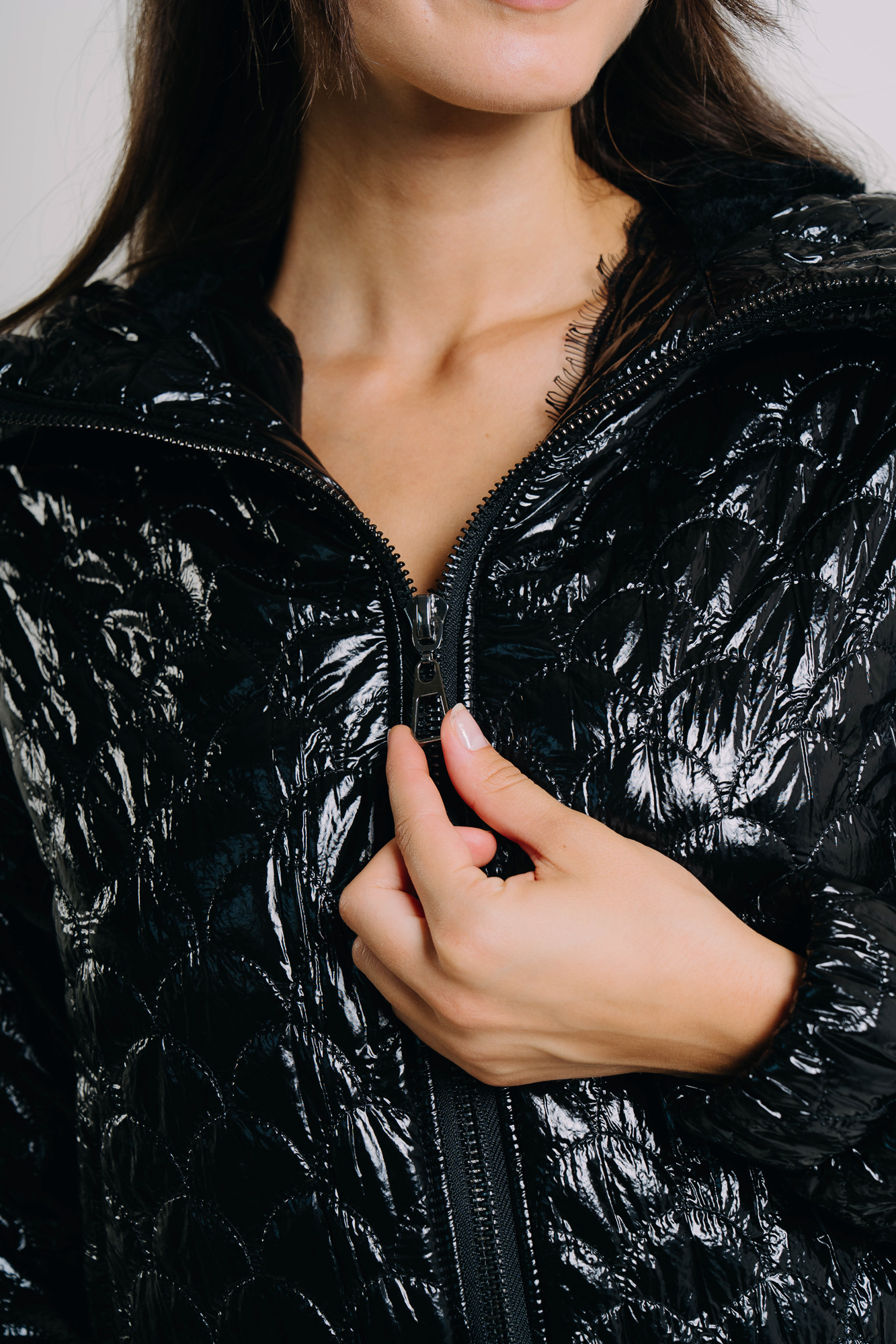 Zvýšený límec a odepínací kapuce poskytují dodatečnou ochranu před chladem.