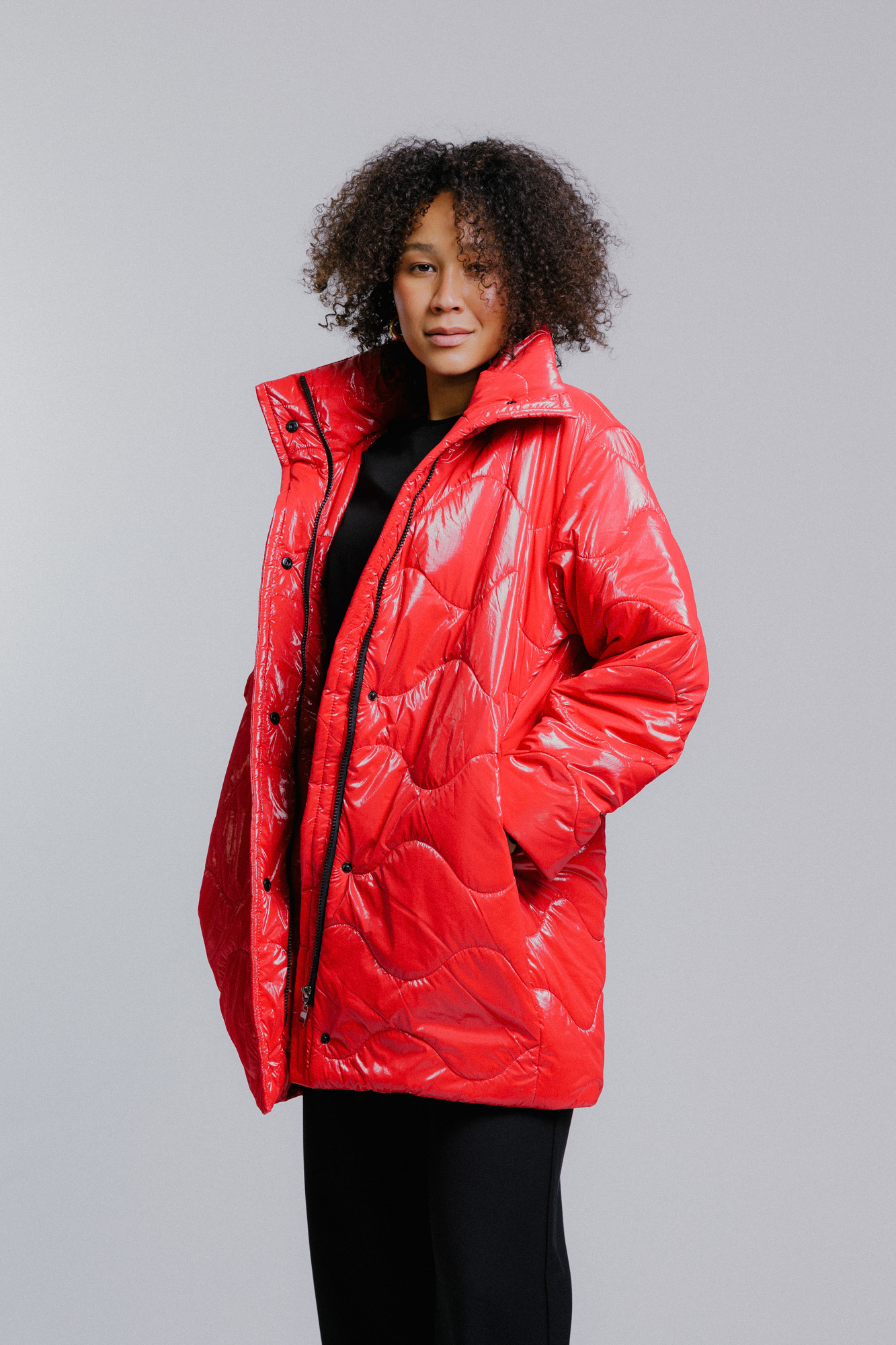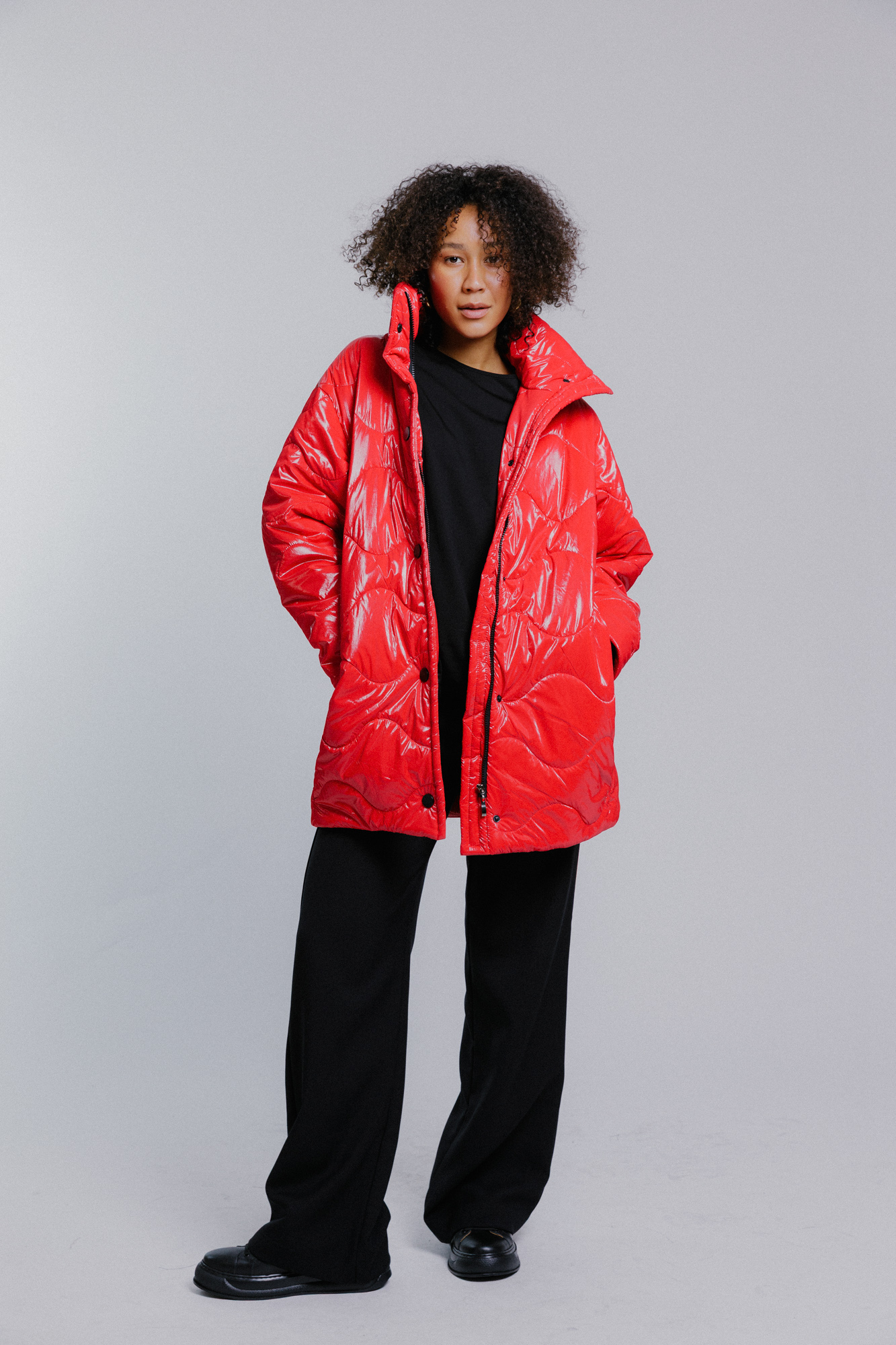 Míry modelky: prsa 89 cm; pas 60 cm; boky 85 cm; výška 175 cm. Modelka má na sobě velikost XS.