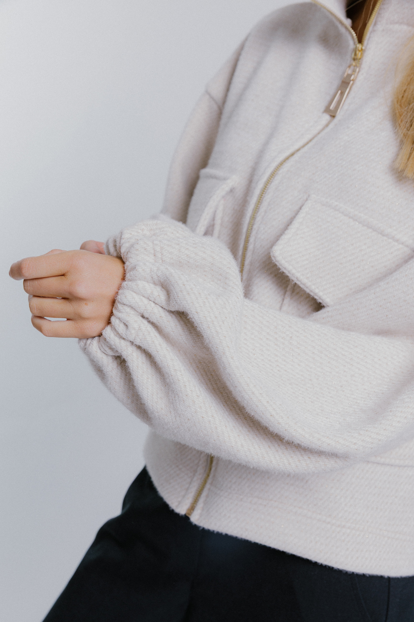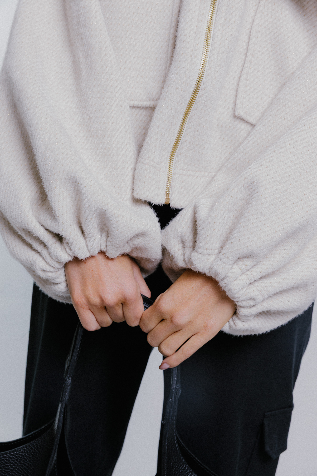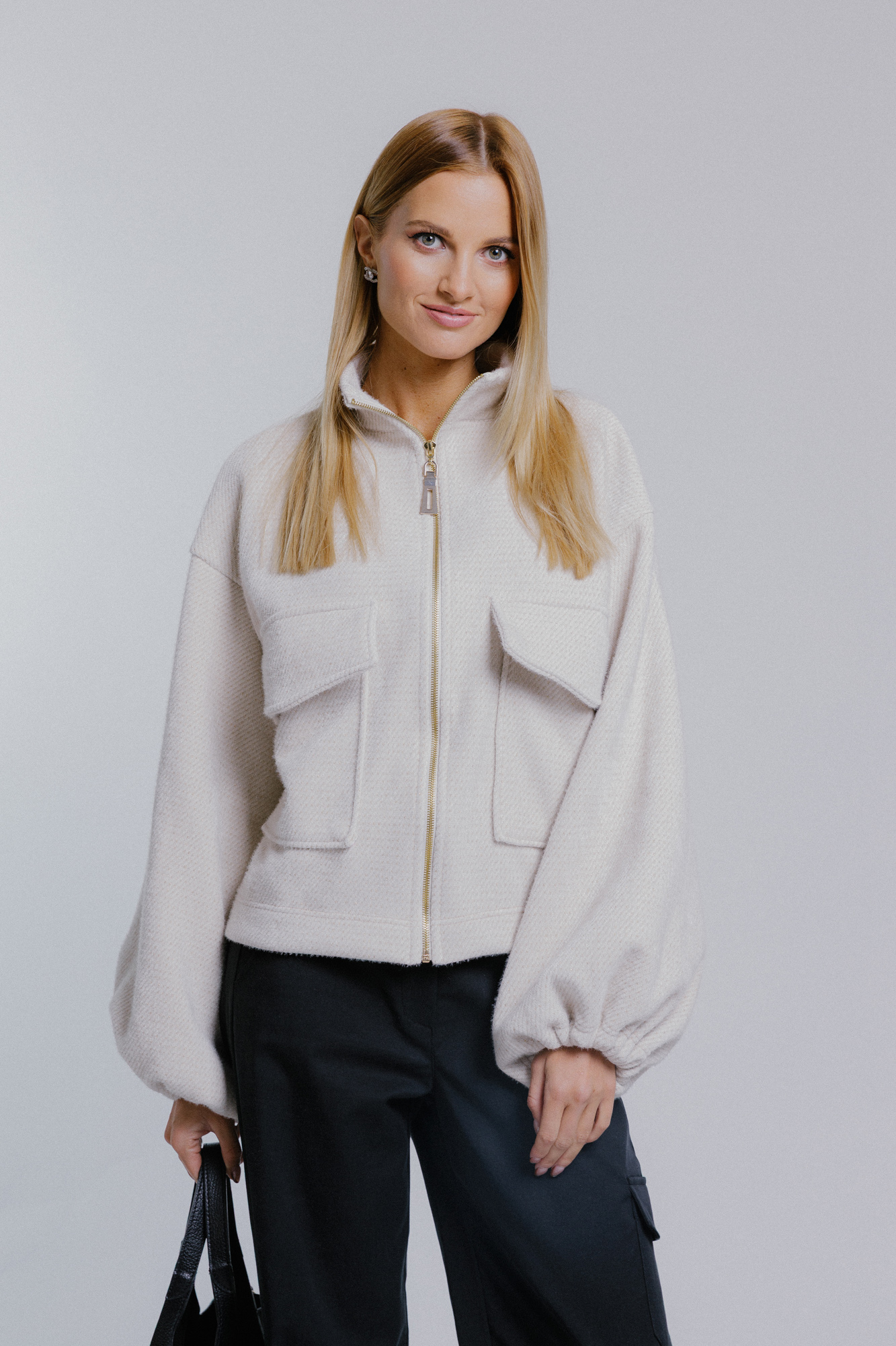 Míry modelky: prsa 89 cm; pas 60 cm; boky 85 cm; výška 175 cm. Modelka má na sobě velikost XS.