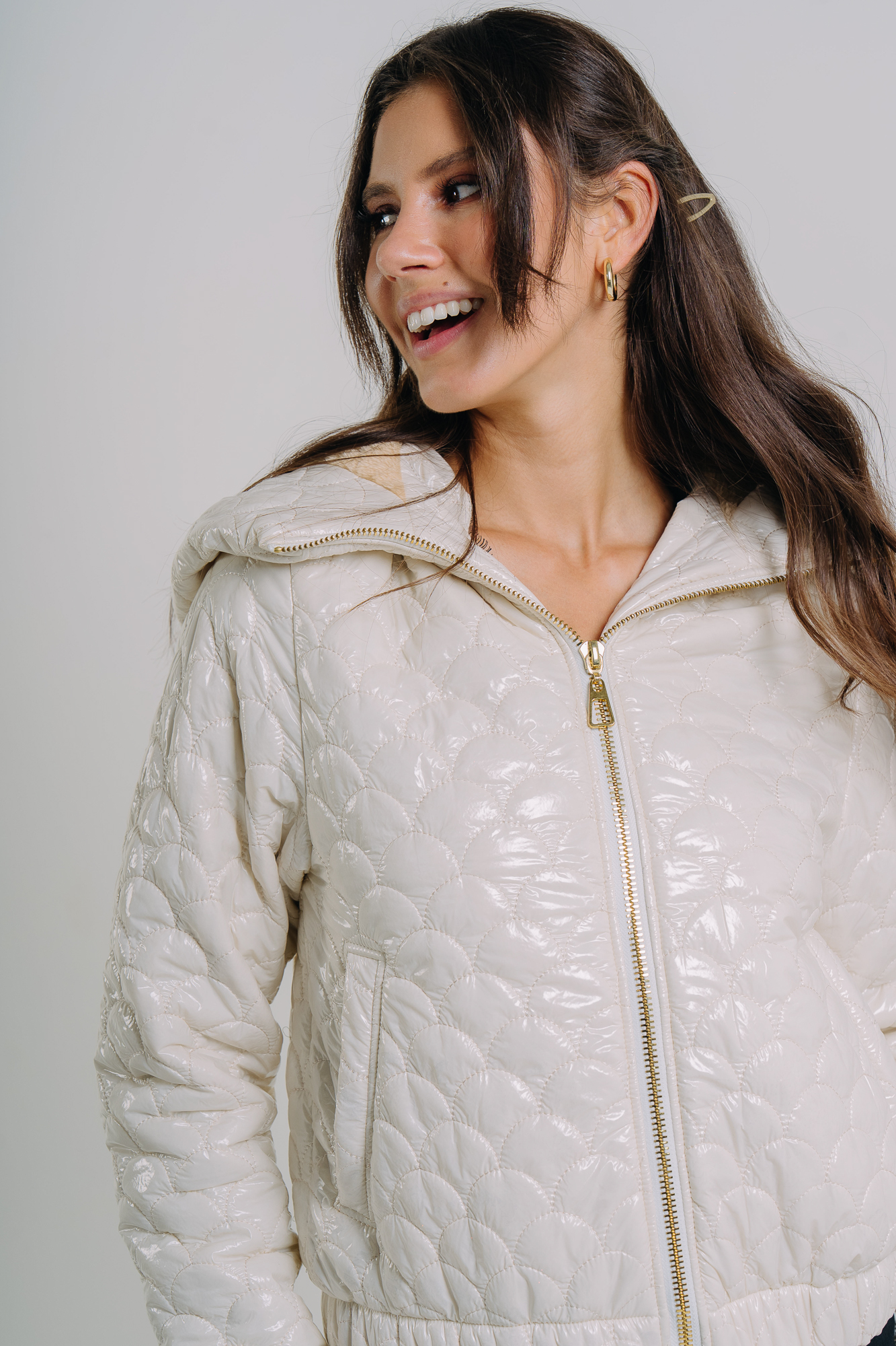 Dámská prošíváná bunda ecru - S