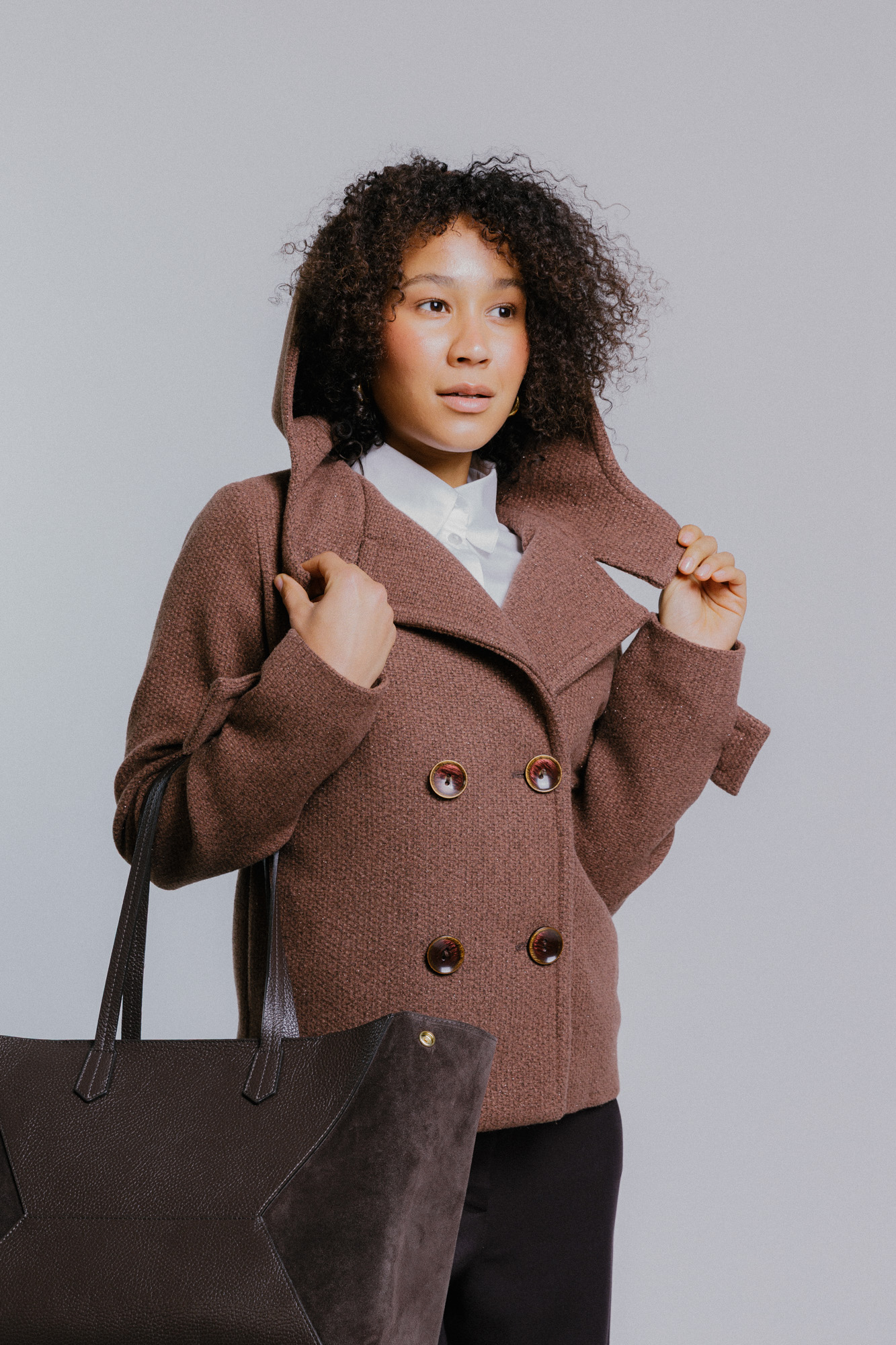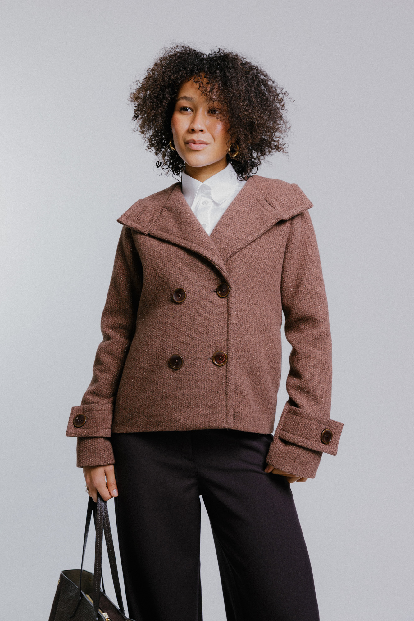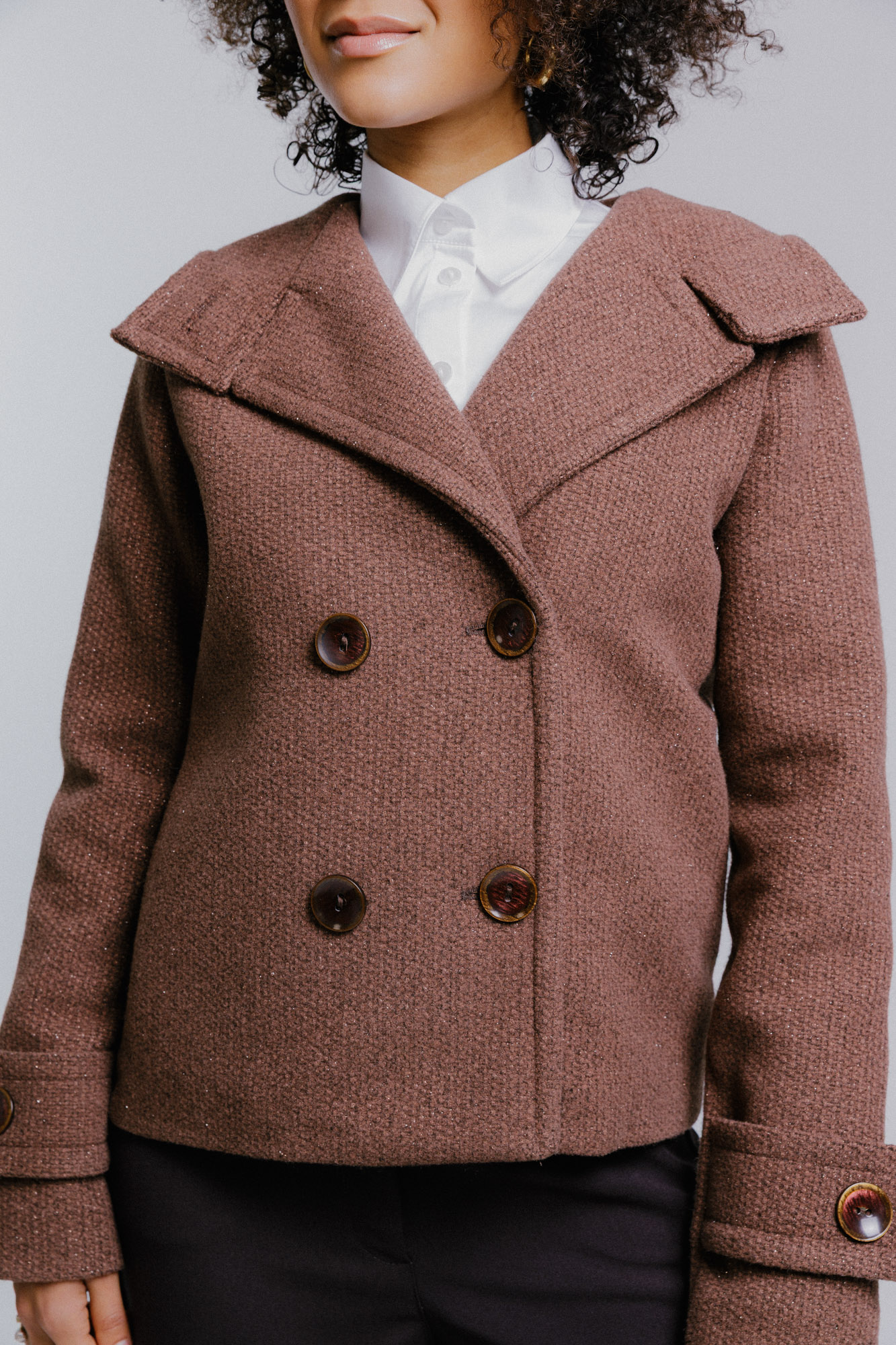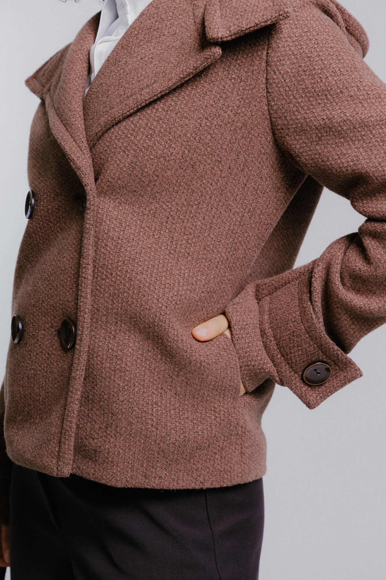 Hnědý dvouřadý kabát