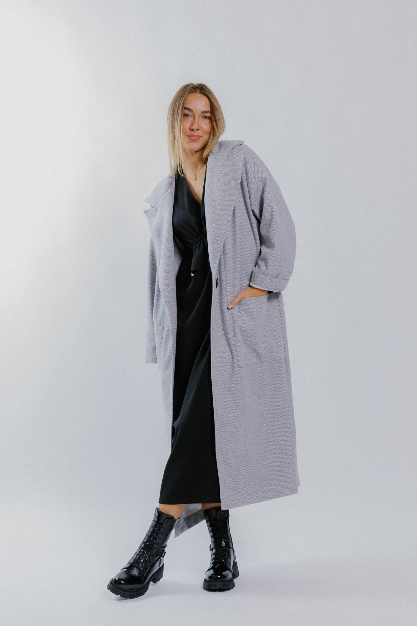 Míry modelky: prsa 85 cm; pas 65 cm; boky 95 cm; výška 177 cm. Modelka má na sobě velikost S.