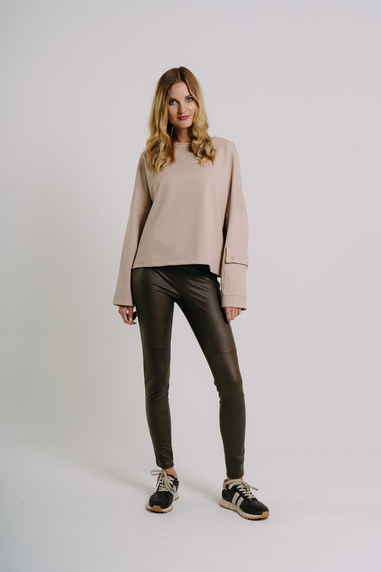 Míry modelky: prsa 85 cm; pas 65 cm; boky 95 cm; výška 177 cm. Modelka má na sobě velikost M.