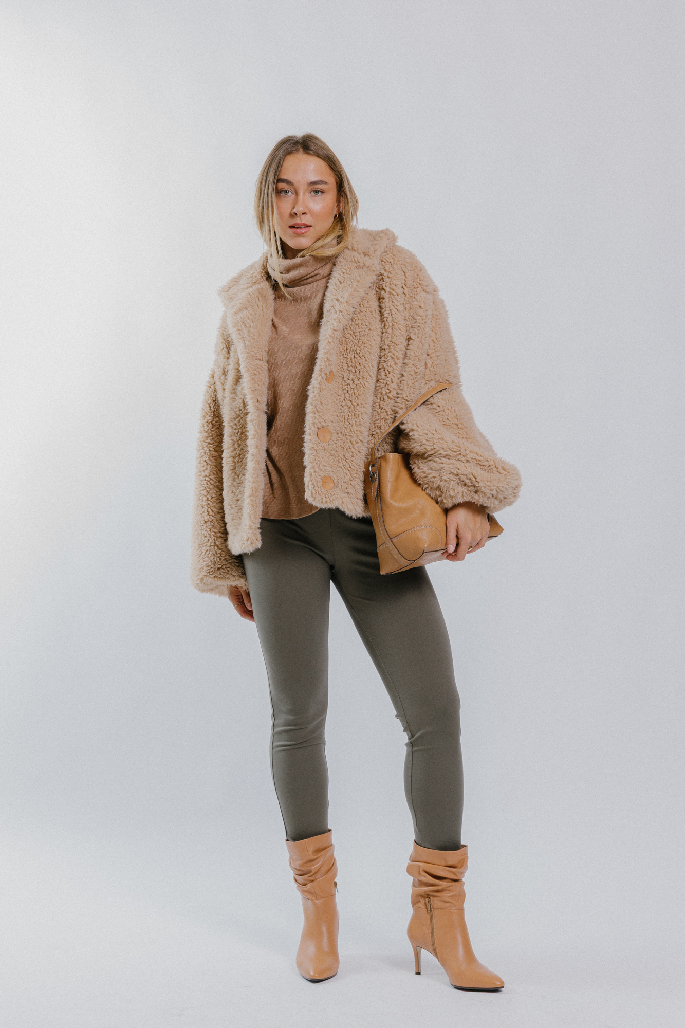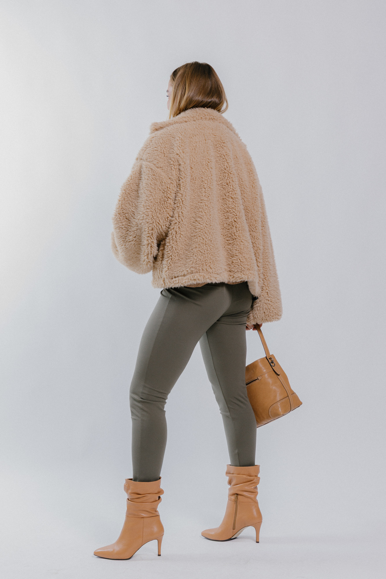 Míry modelky: prsa 85 cm; pas 65 cm; boky 95 cm; výška 177 cm. Modelka má na sobě velikost S.