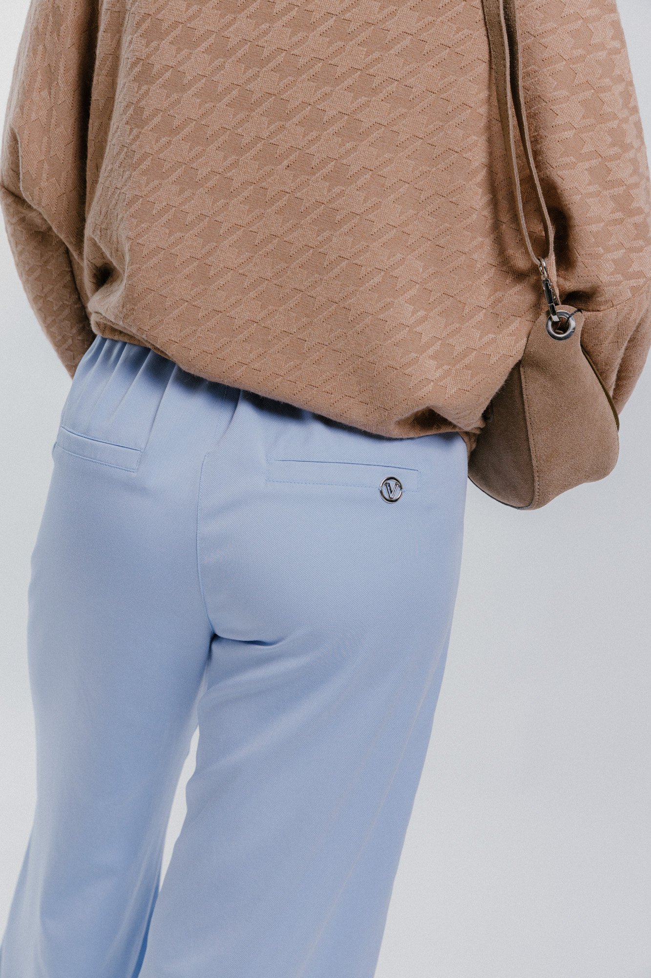 Výpustkové kapsy na zadním díle s kovovým plíškem.